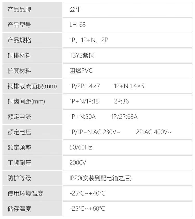 公牛(BULL) 汇流排 空气开关连接铜排 接线排端子 空开断路器汇流排 LH-63/1P 16回路
