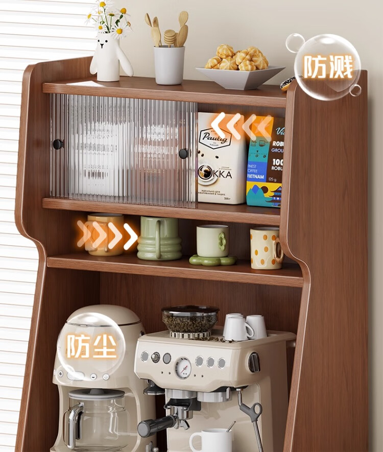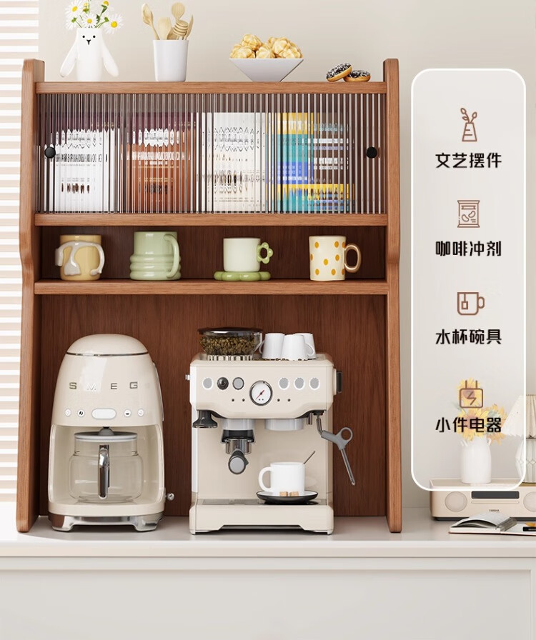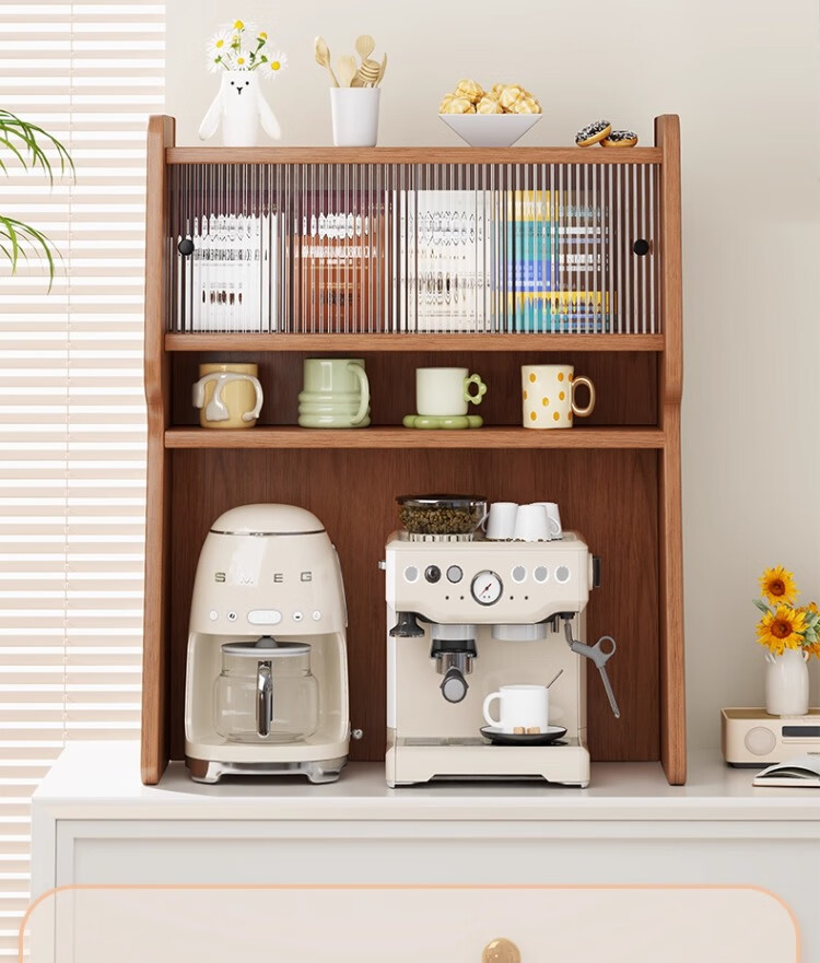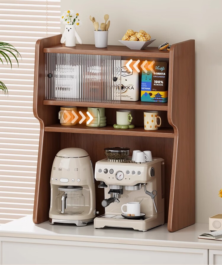 尔思家桌面收纳盒桌面布置水杯咖啡杯收纳柜多层家用餐边柜台面置物架子 胡桃-长虹