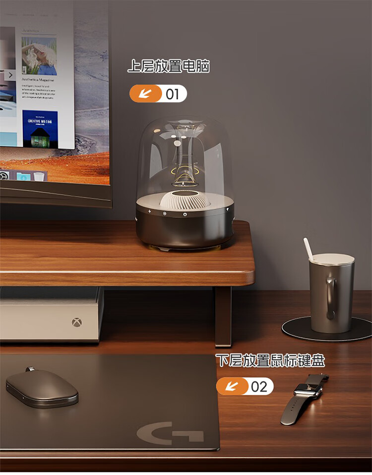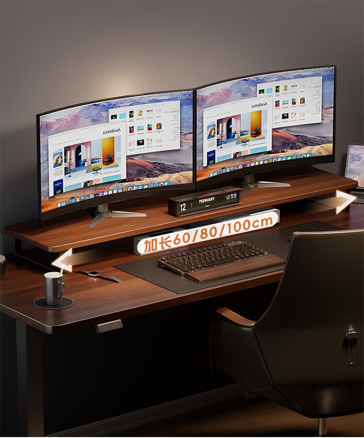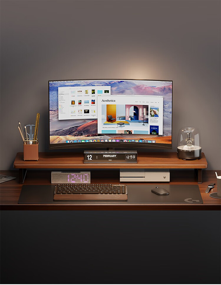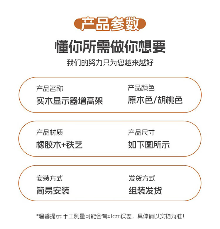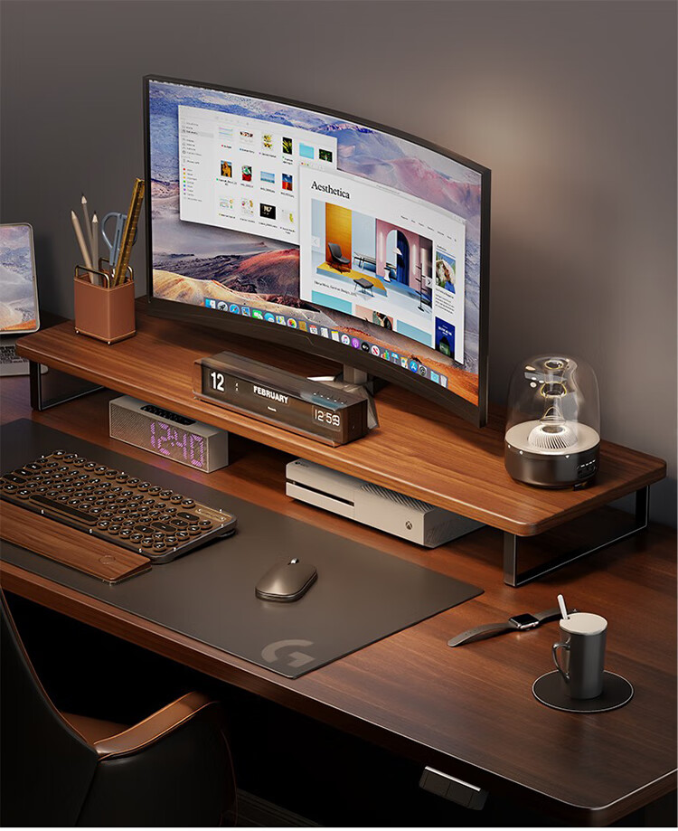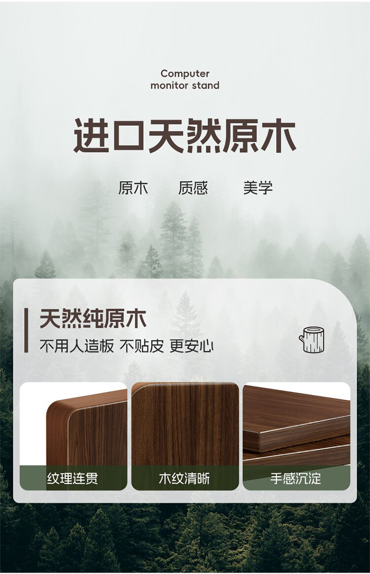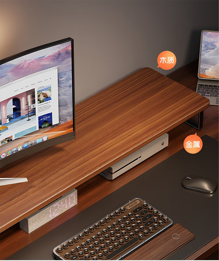 筏芯德国实木显示器增高架台式电脑桌面胡桃色收纳架底座置物架笔记本 胡桃色60cm标准款