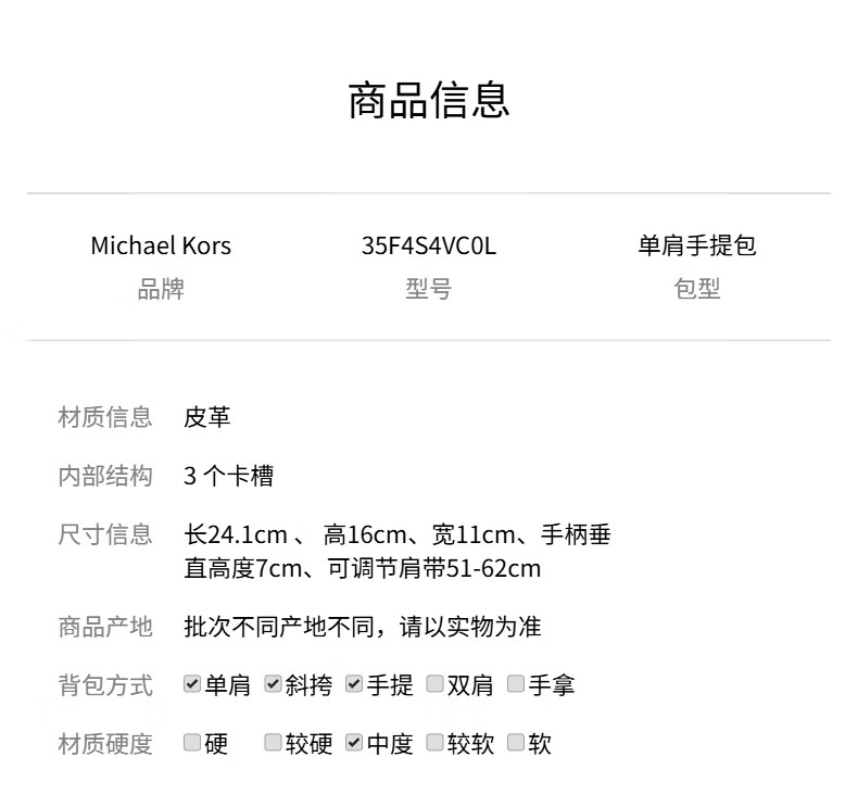 MICHAEL KORSAvril女士单肩斜挎手提包35F4S4VC0L 浮木色