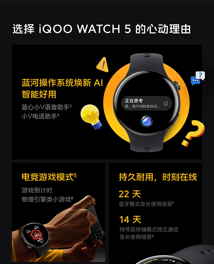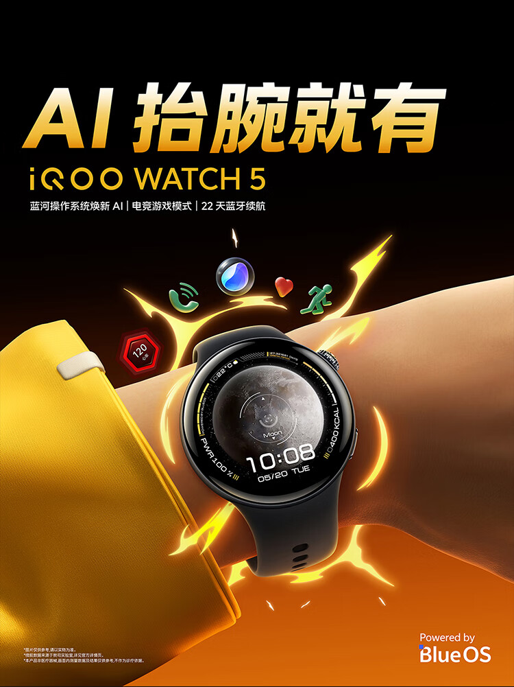 vivoiQOO WATCH 5 蓝牙软胶 浩宇黑 蓝河操作系统换新AI 电竞游戏模式 22天蓝牙续航 智能手表