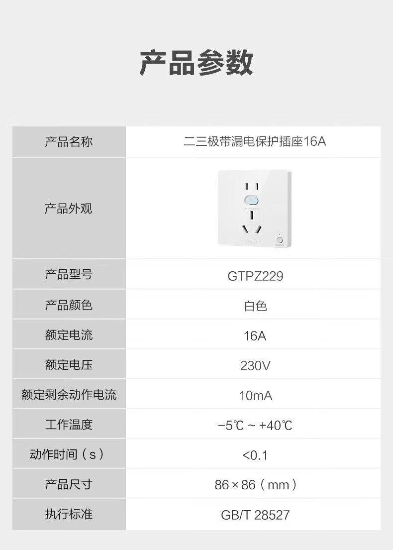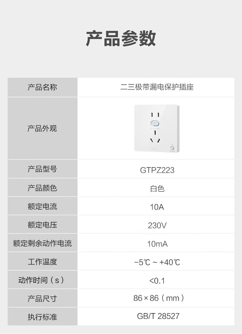 公牛GTP带漏电保护器开关插座面板热水器空调大功率防过载断路器空开 40A安(4P5P匹柜机立式)