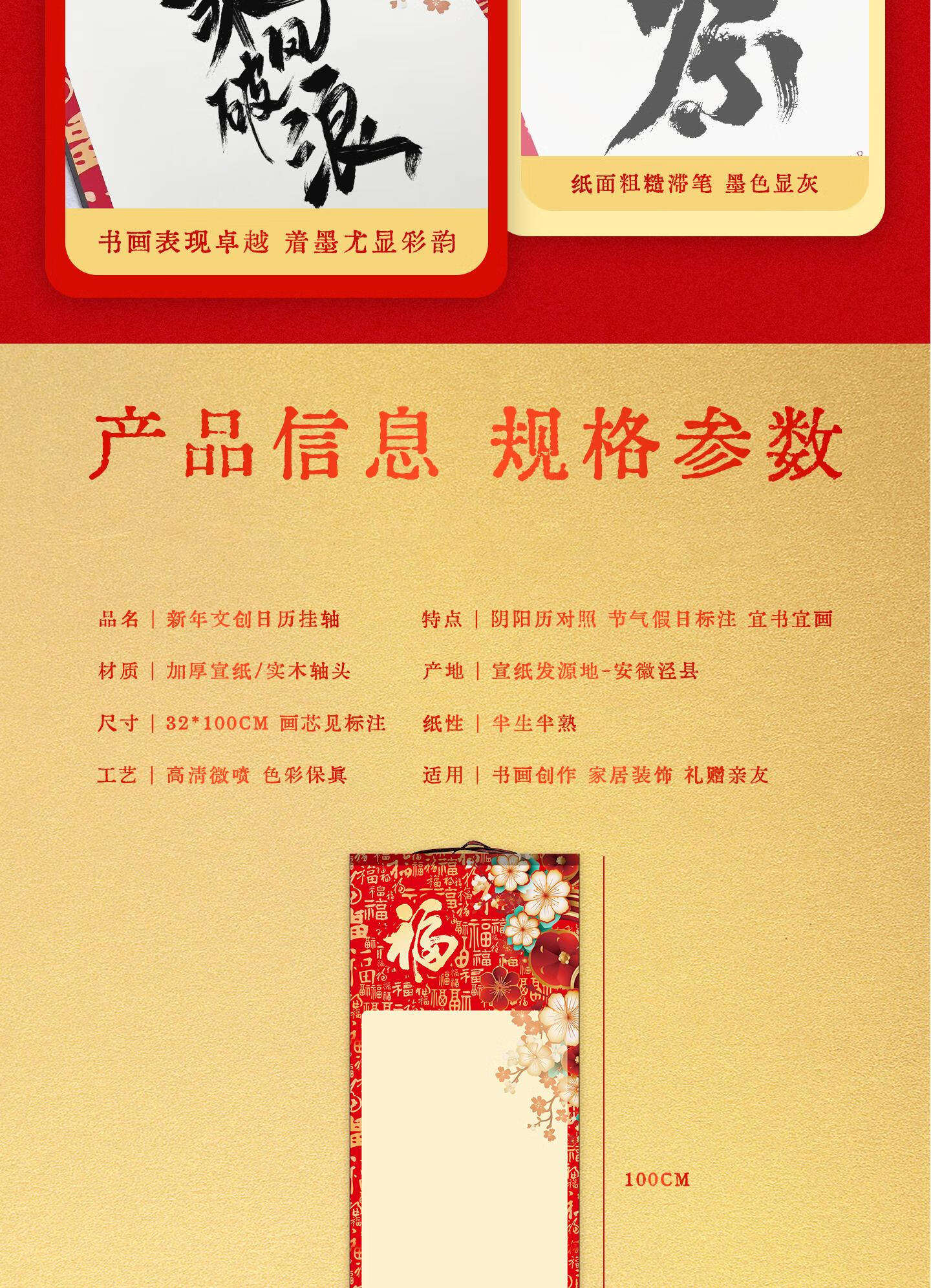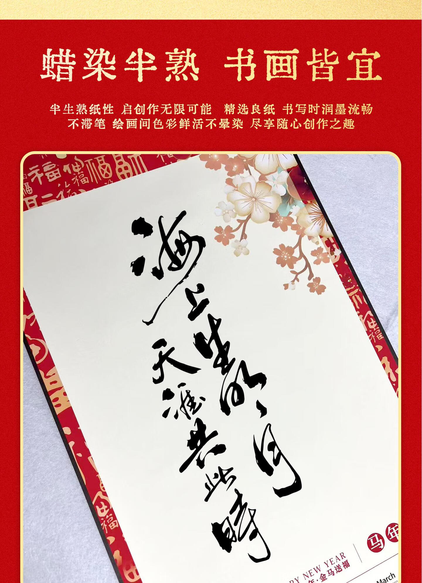 玉水湖马年挂历日历挂轴卷轴蜡染空白宣纸半生熟2026新年中国风写毛笔字春节书法文创定制 5款混装各2卷