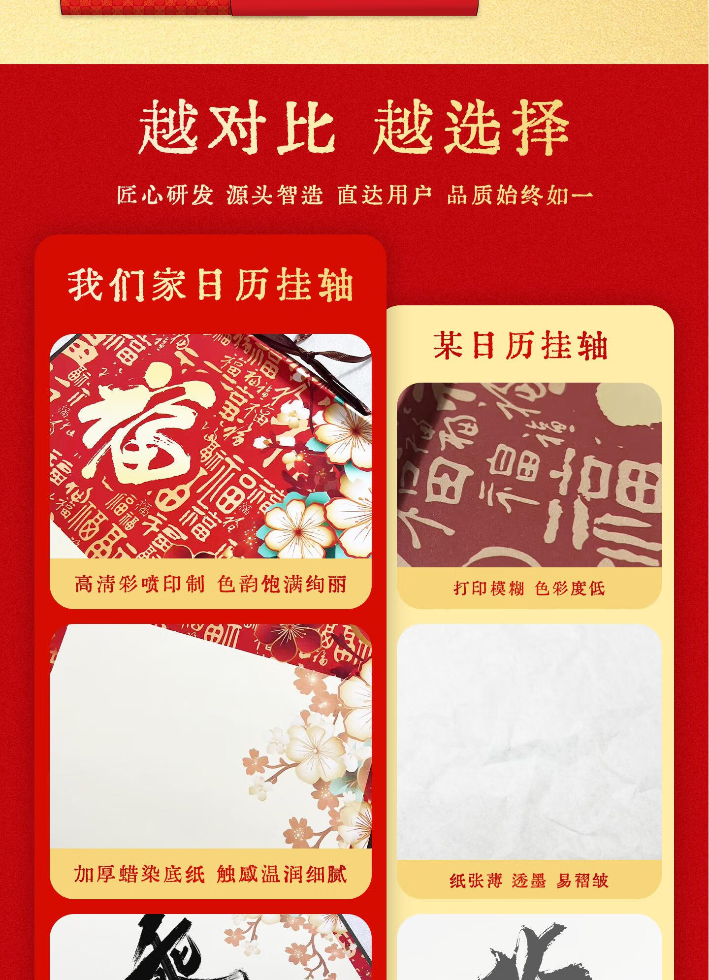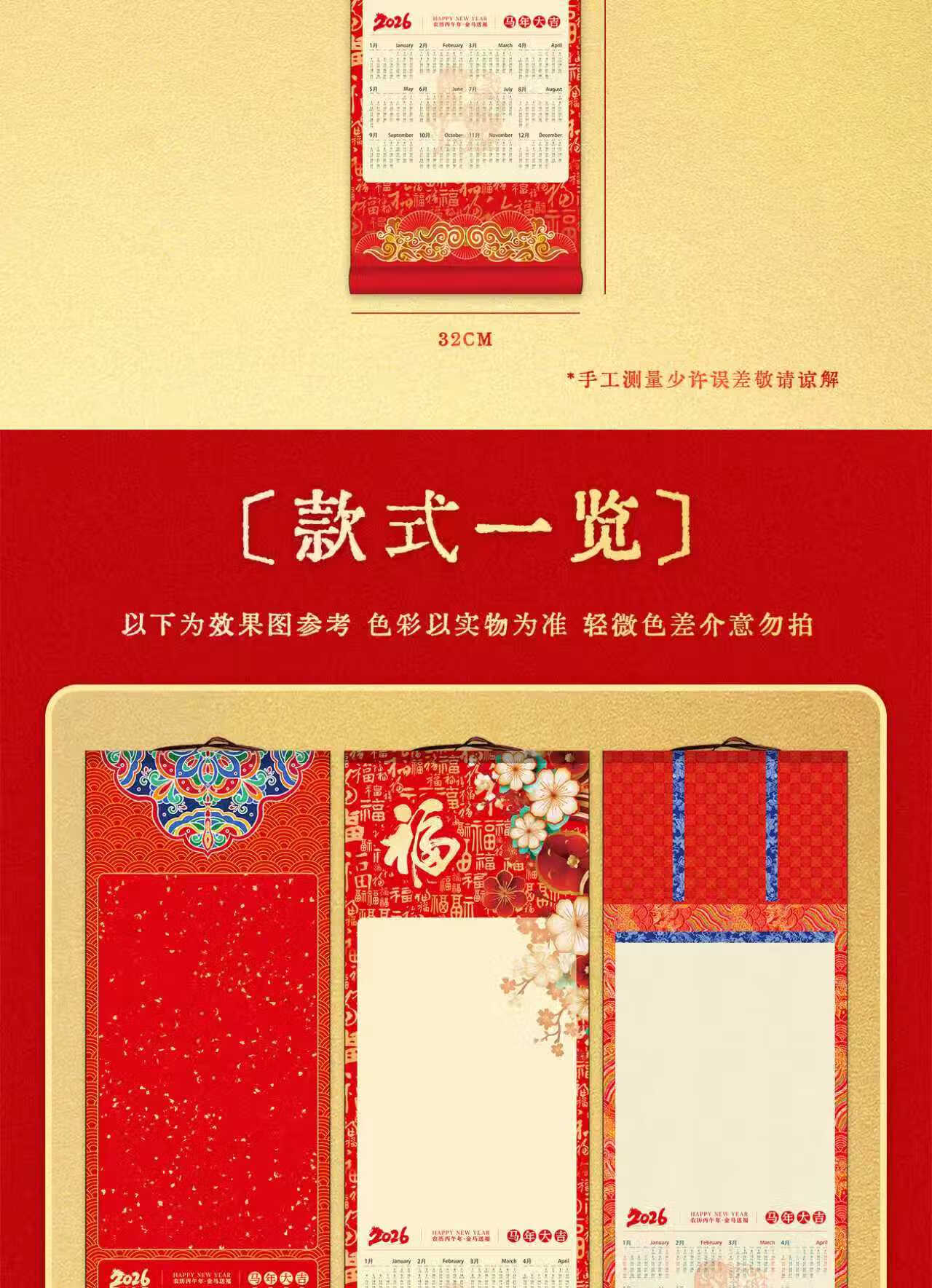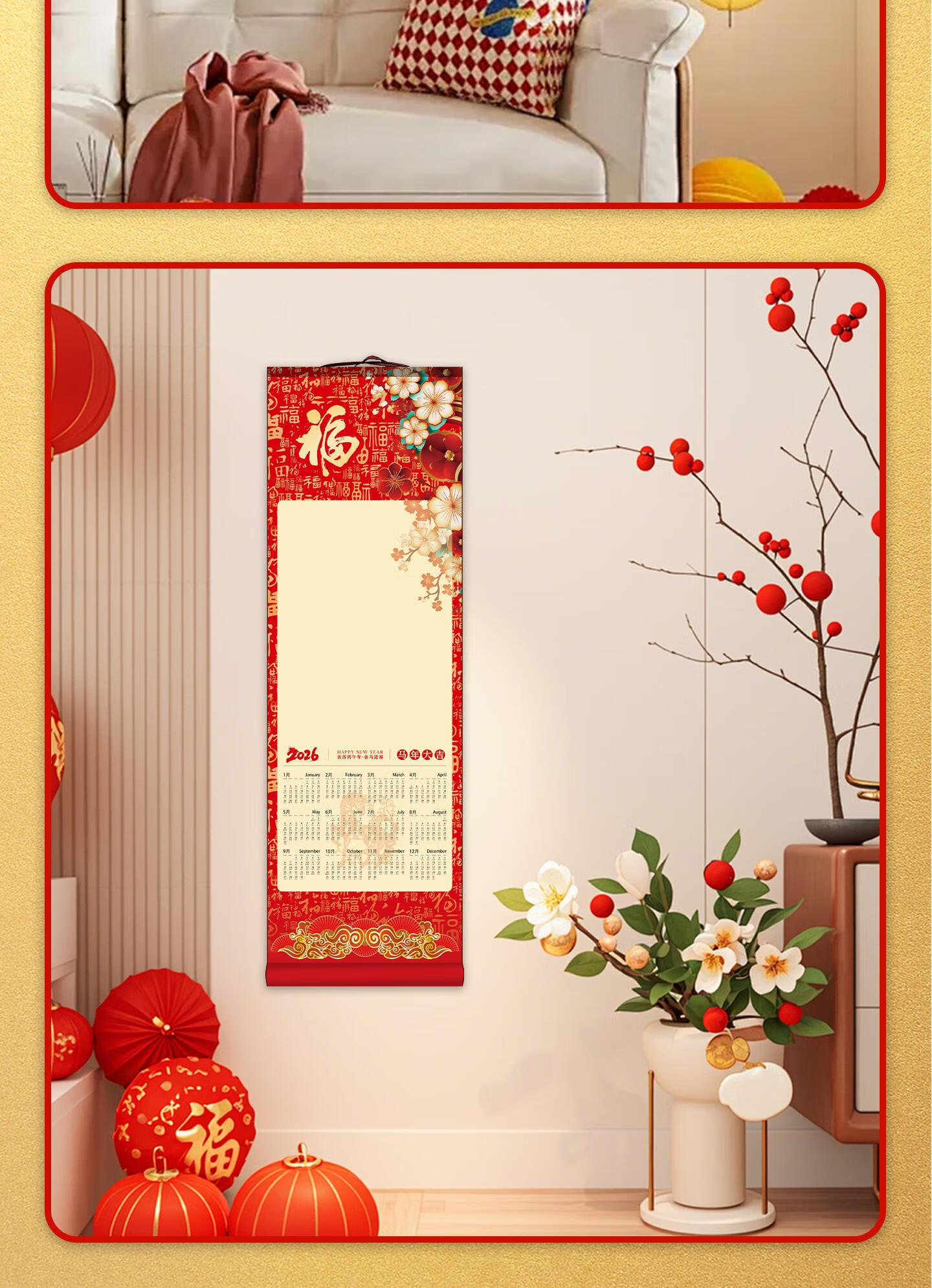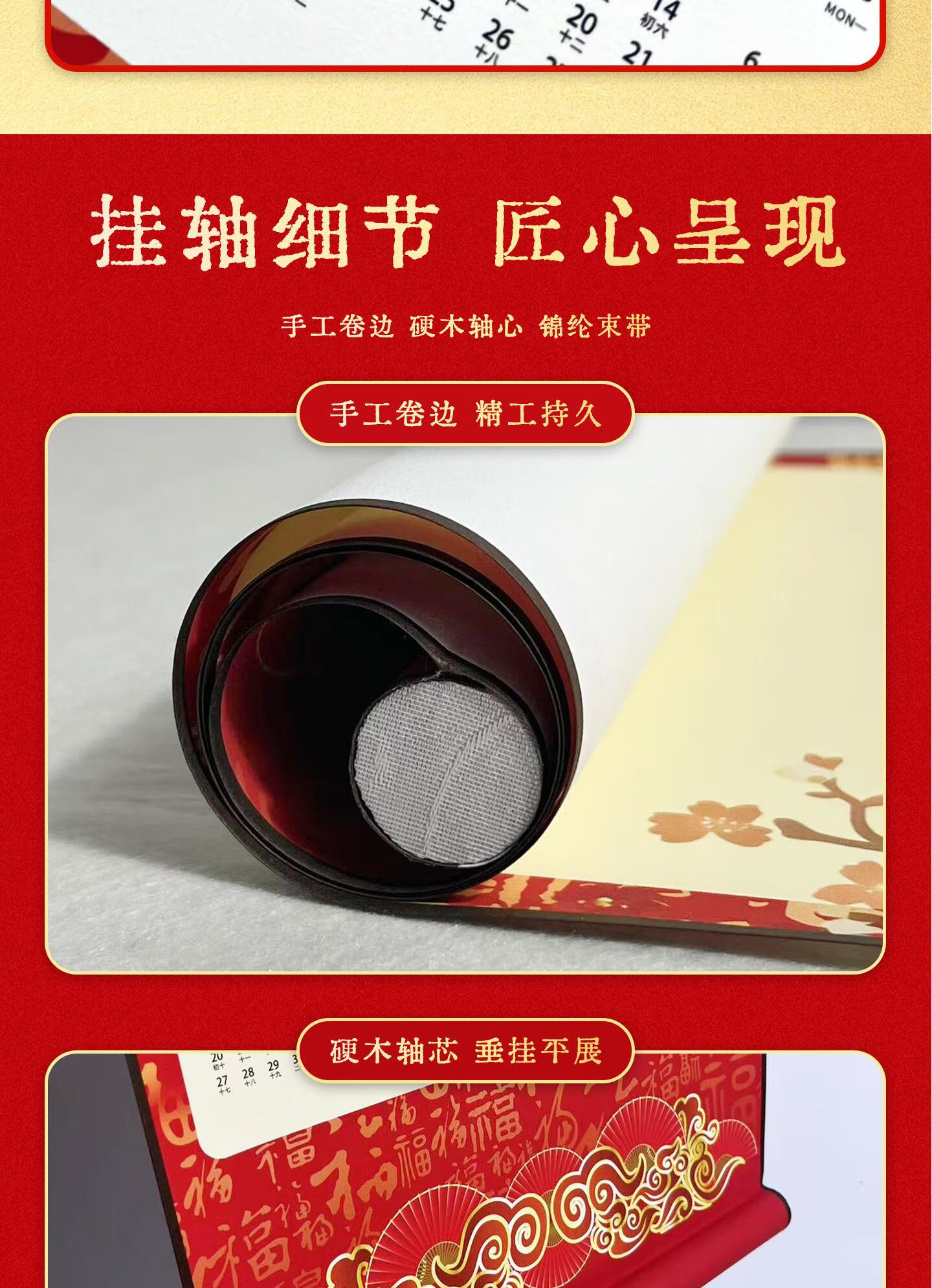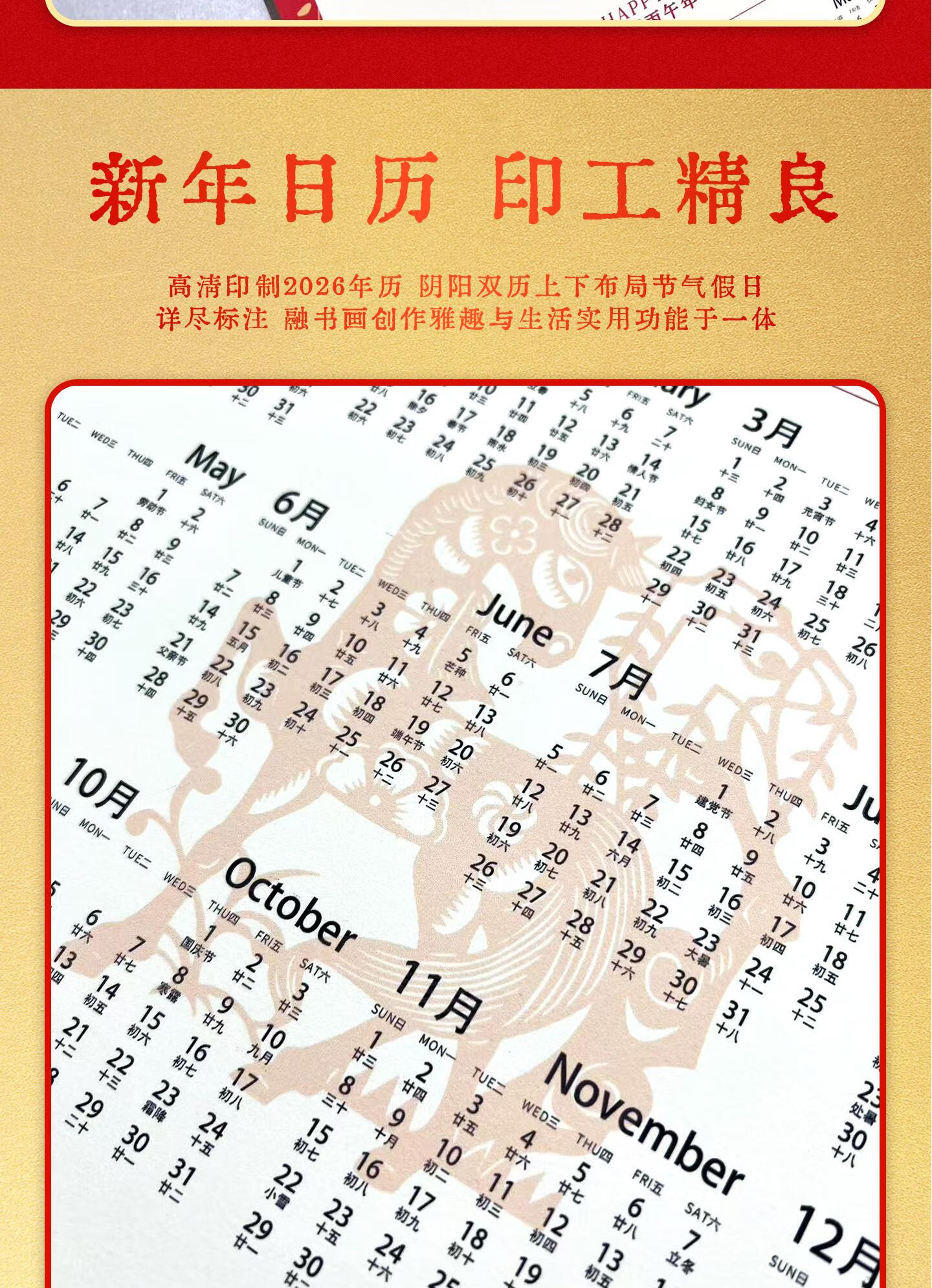 具才挂历2026年挂墙式家用办公高档卷轴日历马年龙马精神水墨风骏马画手撕月历年历竹席款13张筒装厂直