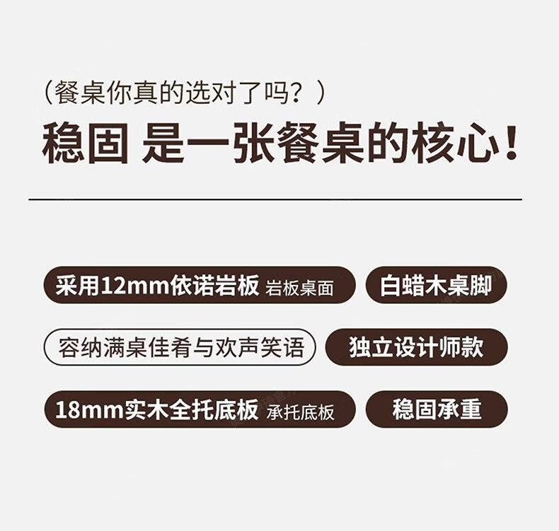奥维伊琦实木岩板餐桌椅餐桌组合饭桌现代长方形简约小户型家用 【加厚白蜡木桌脚+进口岩板】岩板餐桌 120x70x75cm【广东佛山发货/正品保证】