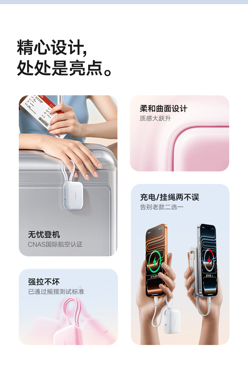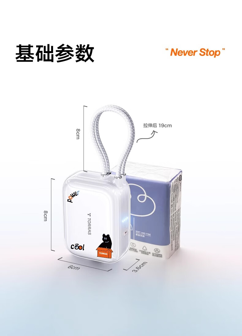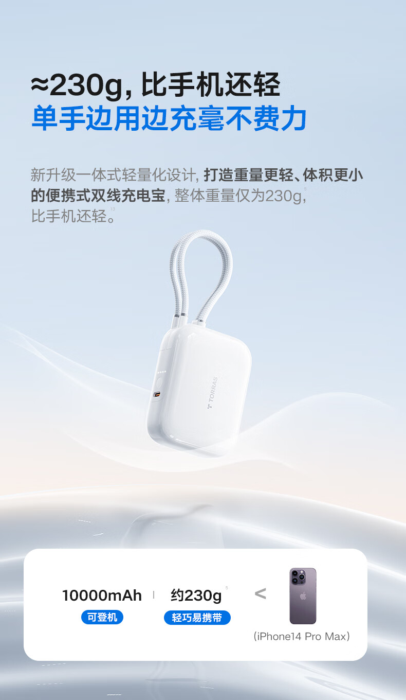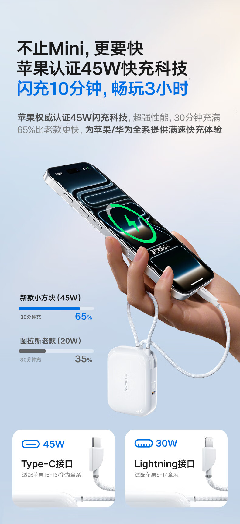 图拉斯充电宝【3C认证丨45W自带双线】20000毫安小方块可上飞机移动电源小巧便携适用苹果17promax华为16 【云朵白|2w毫安】C口+PD双线 新国标3C认证丨超Mini自带双线丨顶配续航王