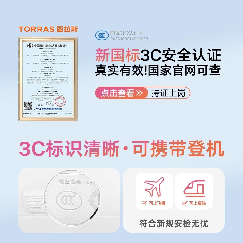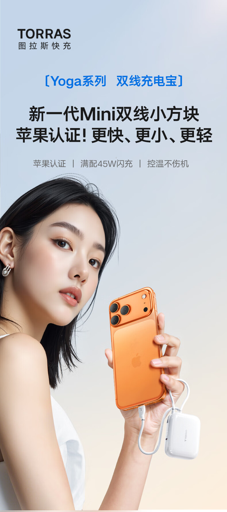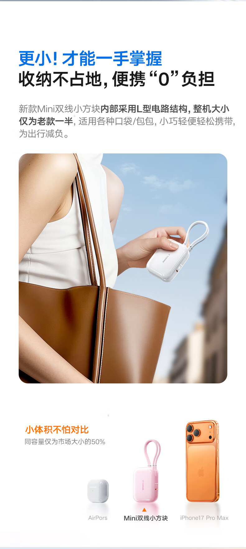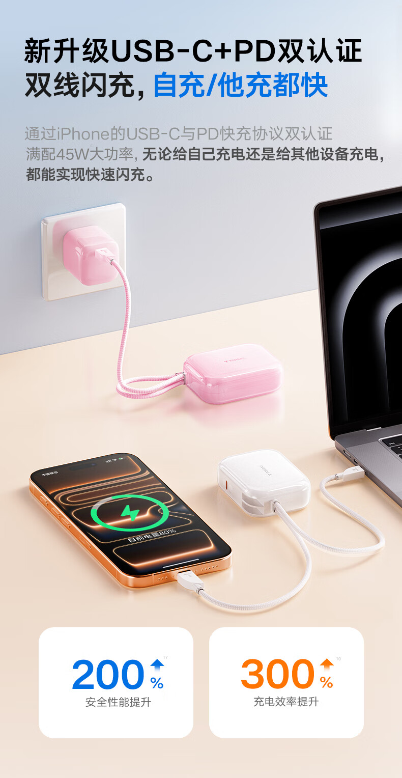 图拉斯充电宝【3C认证丨45W自带双线】20000毫安小方块可上飞机移动电源小巧便携适用苹果17promax华为16 【云朵白|2w毫安】C口+PD双线 新国标3C认证丨超Mini自带双线丨顶配续航王