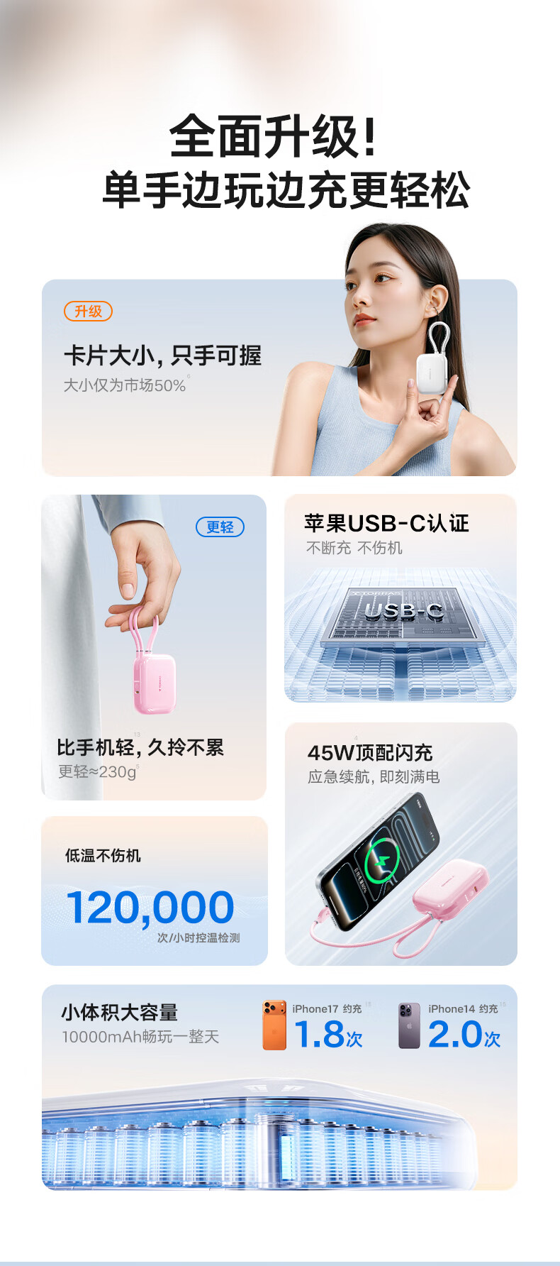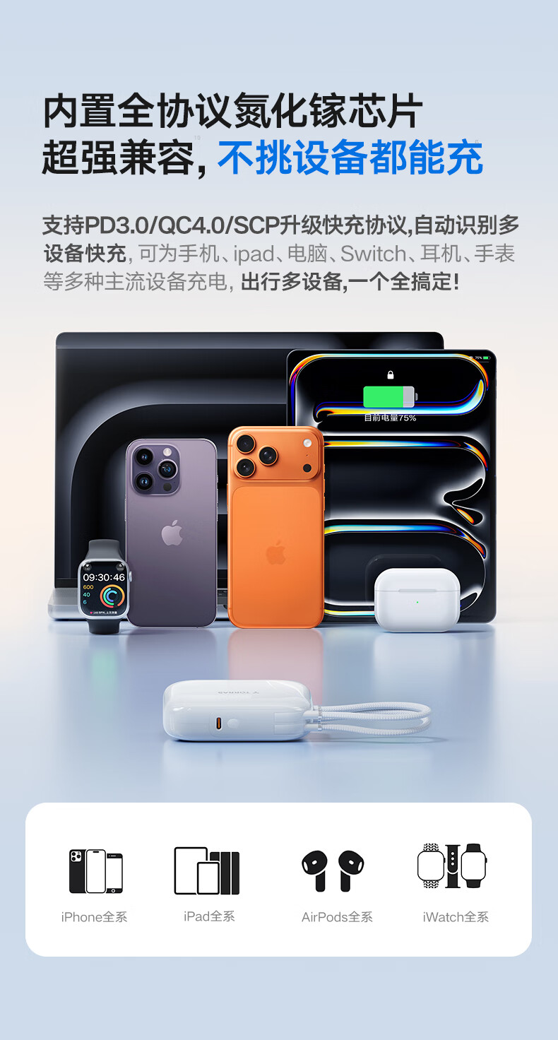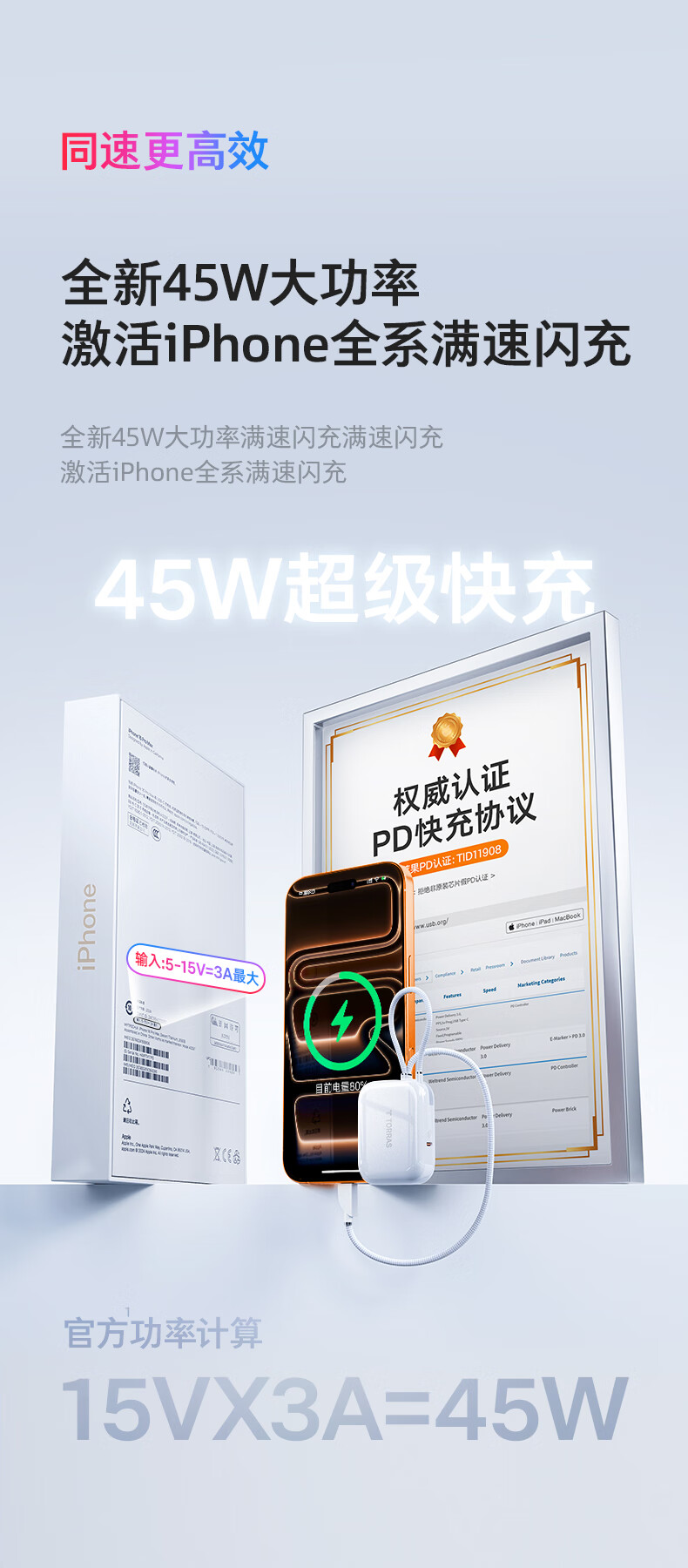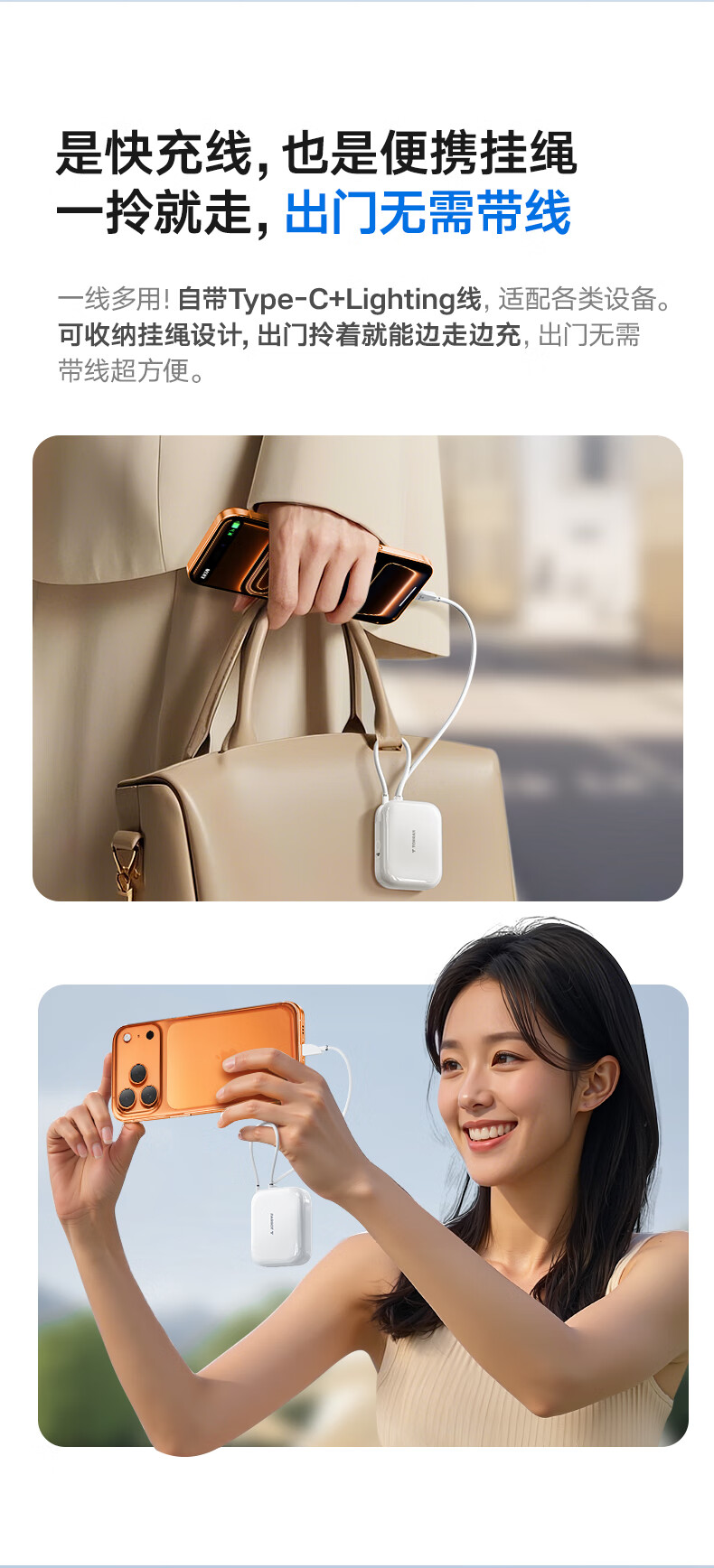 图拉斯充电宝【3C认证丨45W自带双线】20000毫安小方块可上飞机移动电源小巧便携适用苹果17promax华为16 【云朵白|2w毫安】C口+PD双线 新国标3C认证丨超Mini自带双线丨顶配续航王