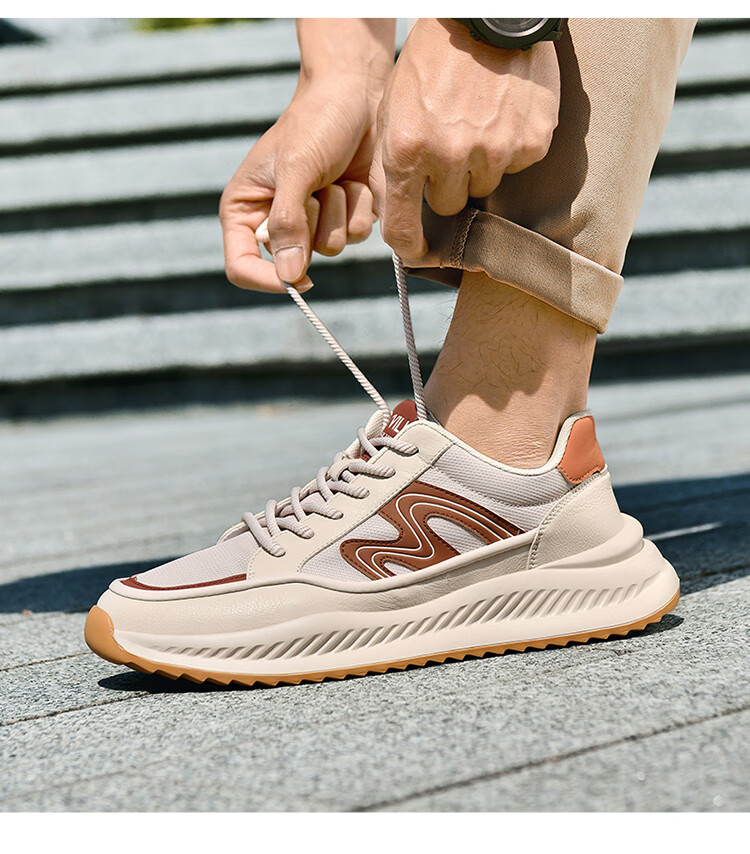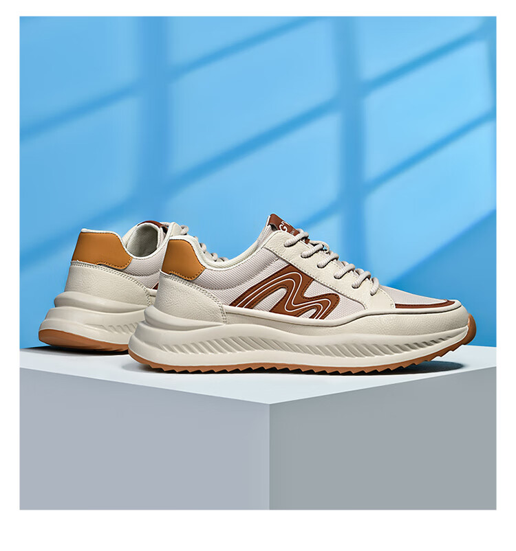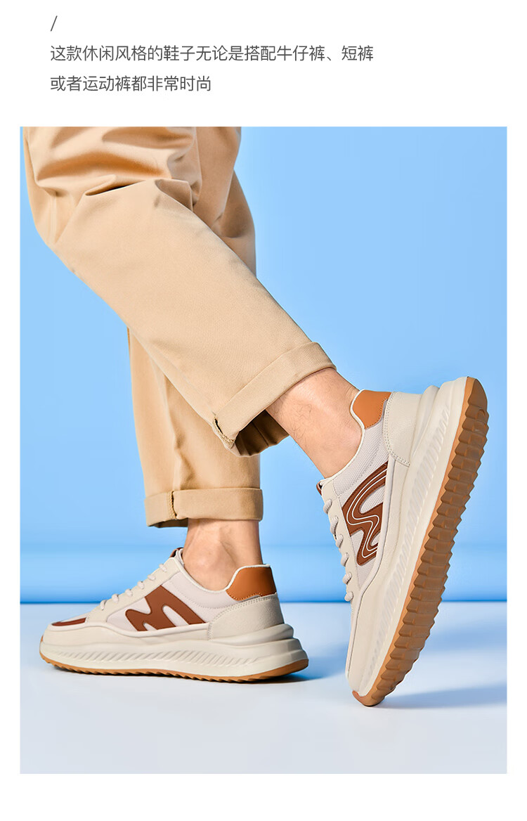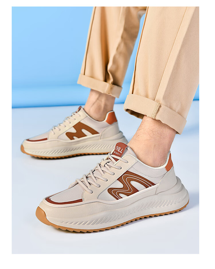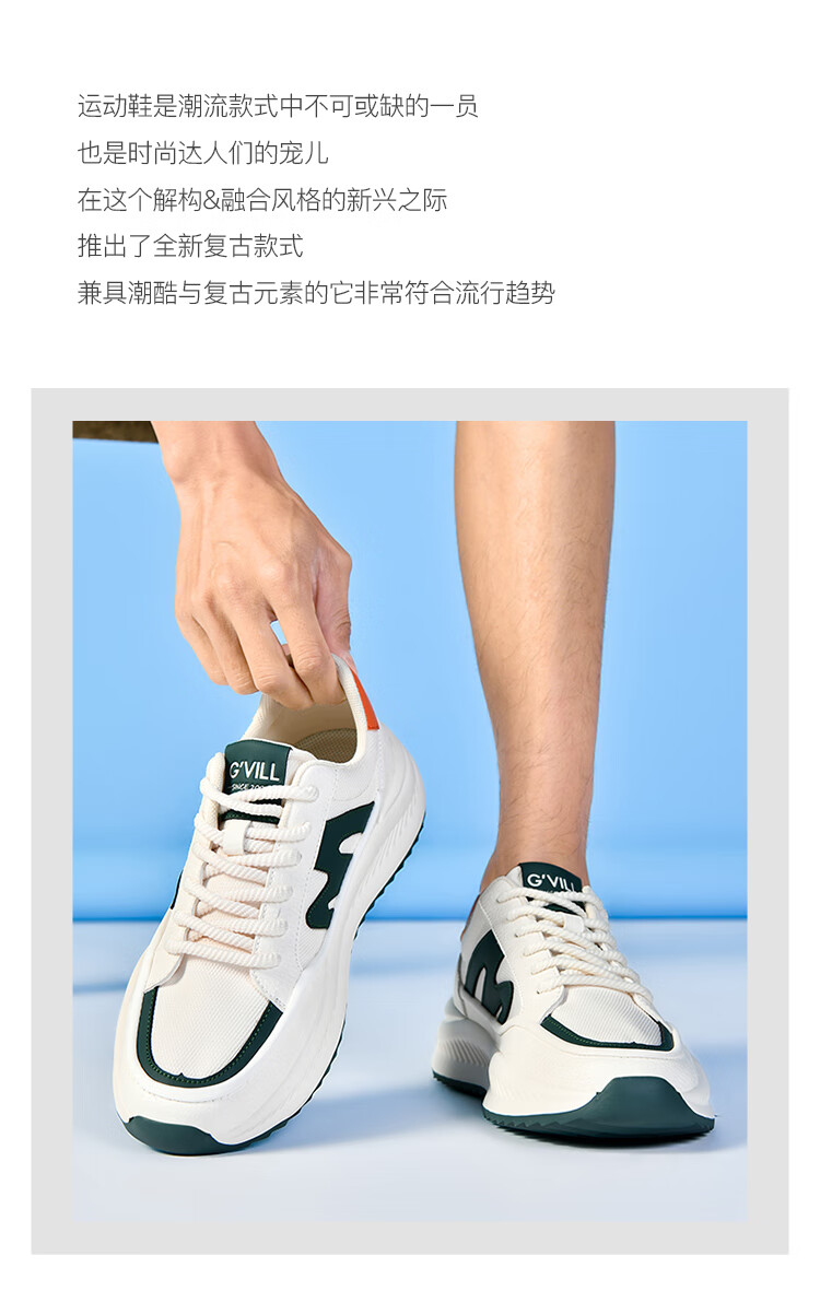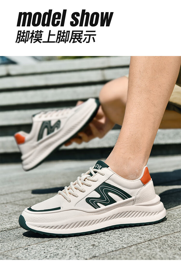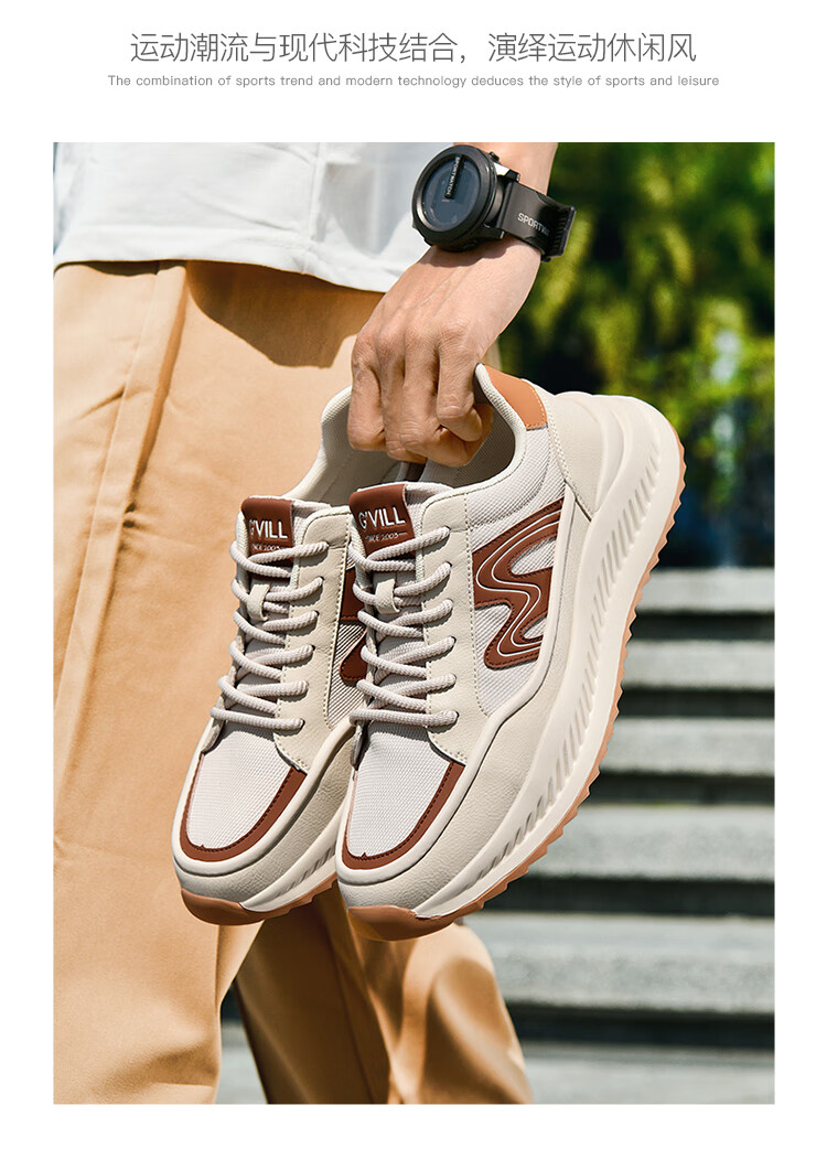 贵之步G'VILL男士潮流休闲鞋夏季新款网面透气户外运动鞋厚底软弹跑步鞋 沙色 (G1601) 42 (运动鞋码)
