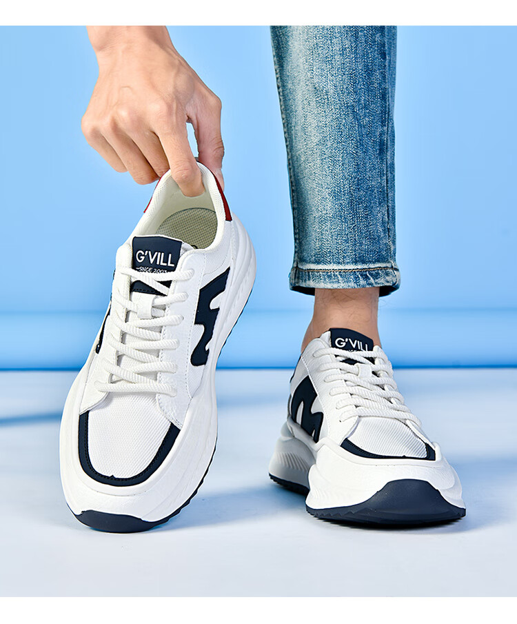 贵之步G'VILL夏季新款网面透气休闲鞋男士厚底软弹户外运动鞋潮流跑步鞋 黑色 (G1703) 42 (皮鞋码)