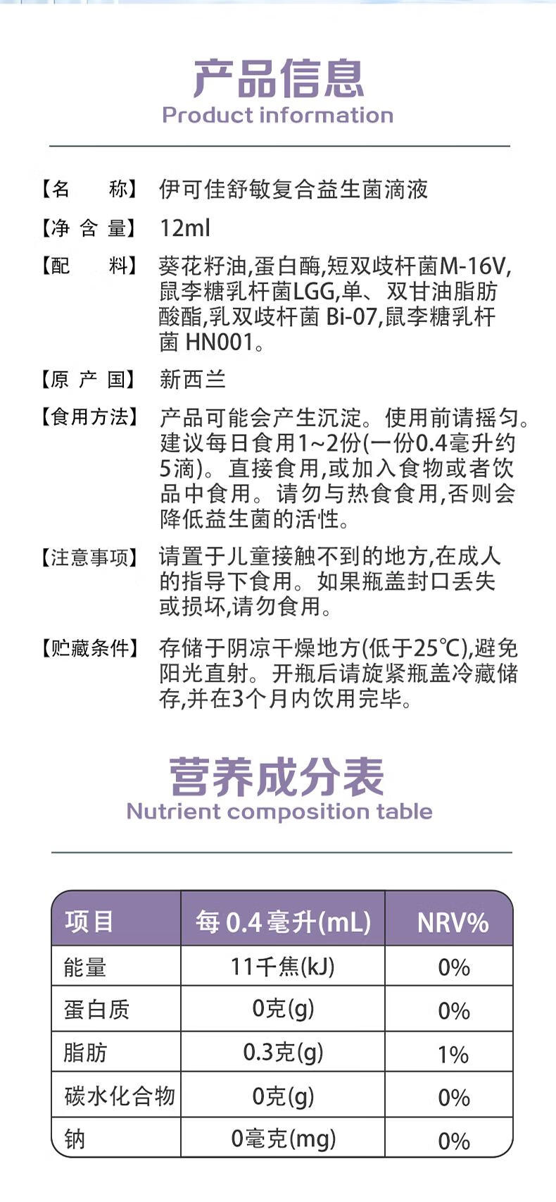 EkeJa伊可佳舒敏M-16V复合益生菌滴剂儿童宝宝 新西兰原装进口 12ml*1瓶