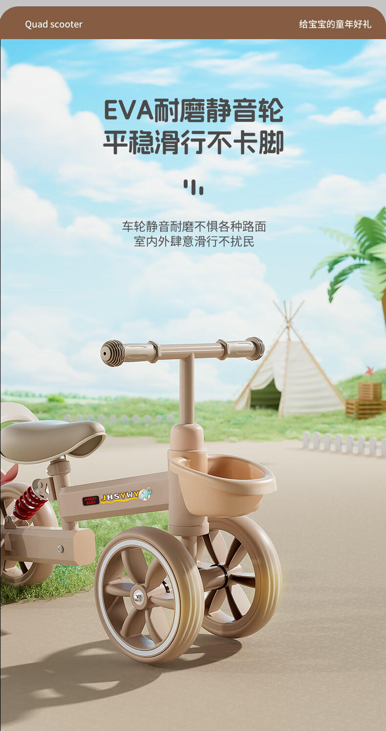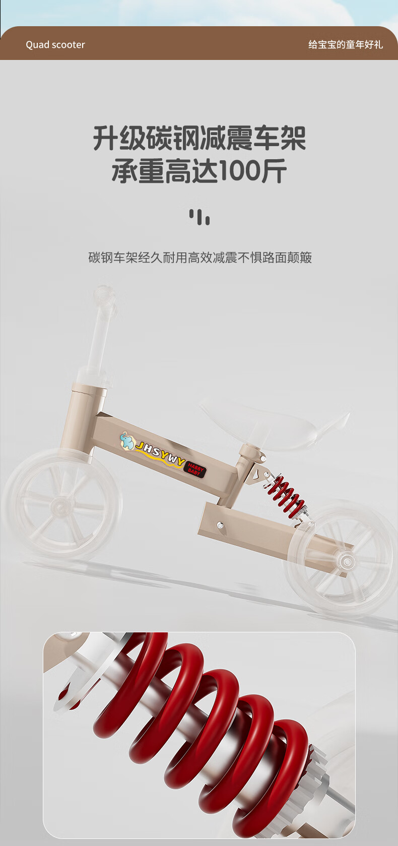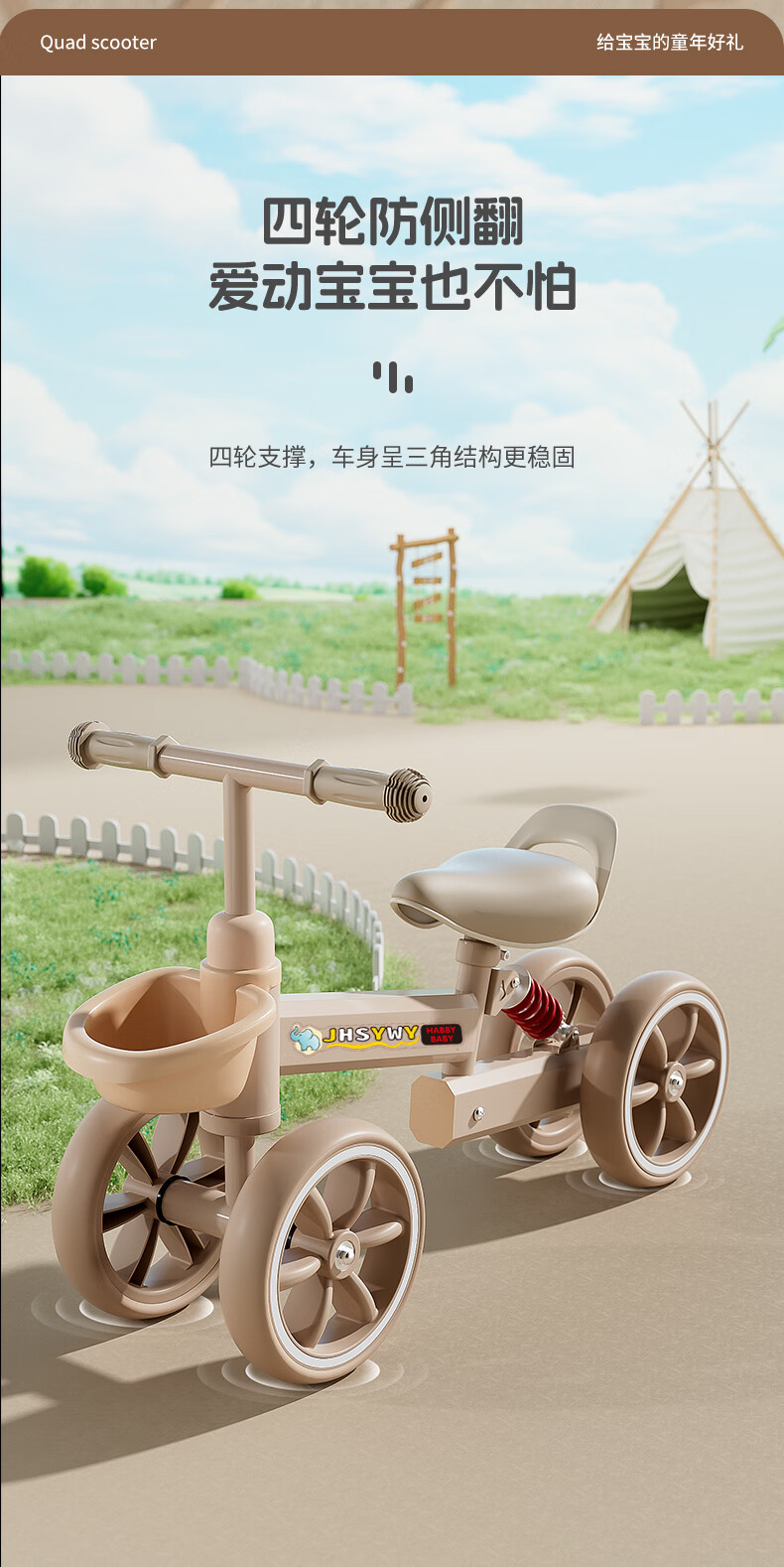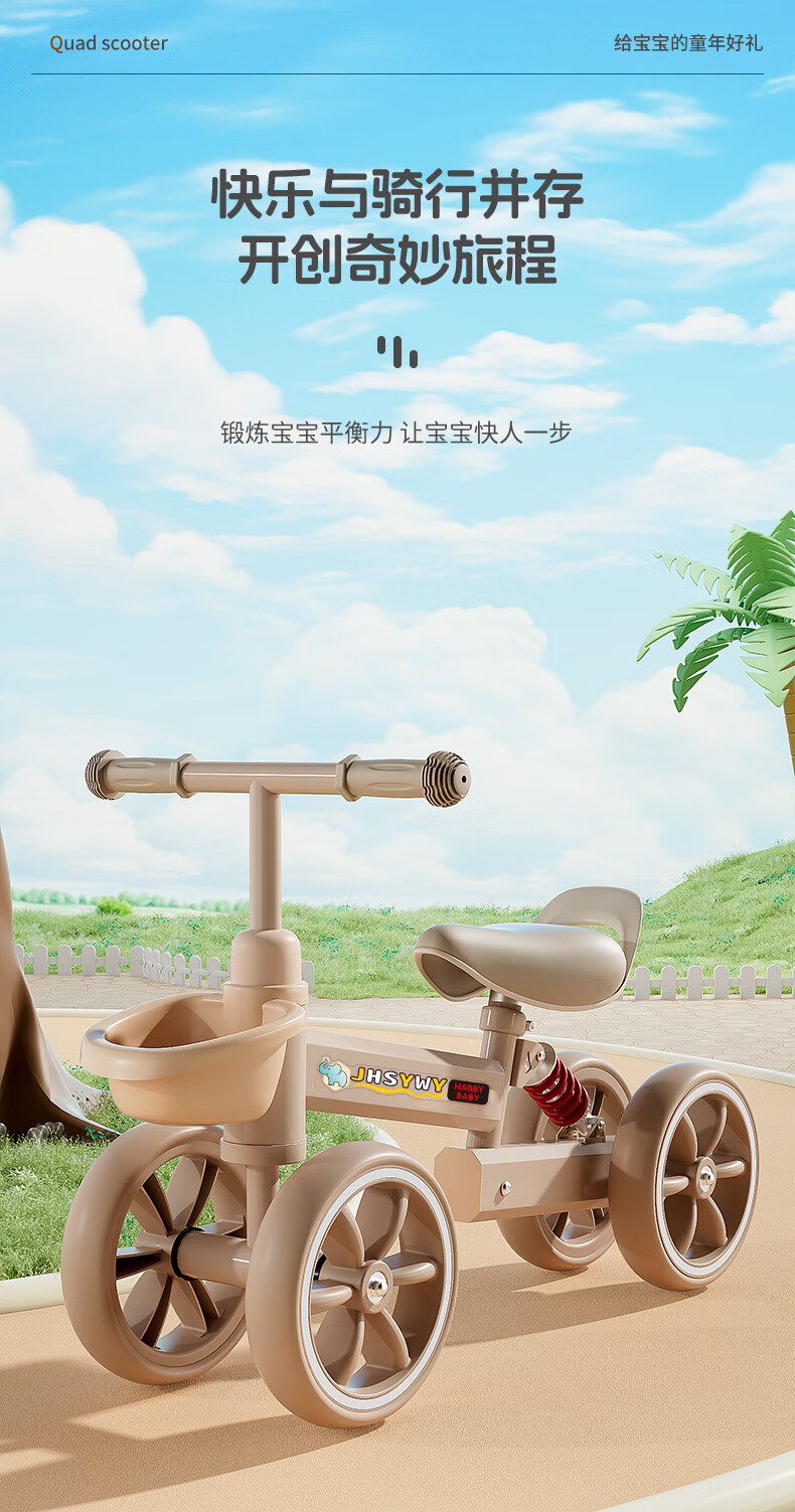 JHSYWY儿童平衡车学步车带减震宝宝滑行车四轮防侧翻滑行溜溜车 【升级减震大轮款】 卡其色