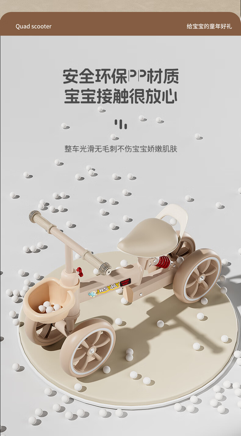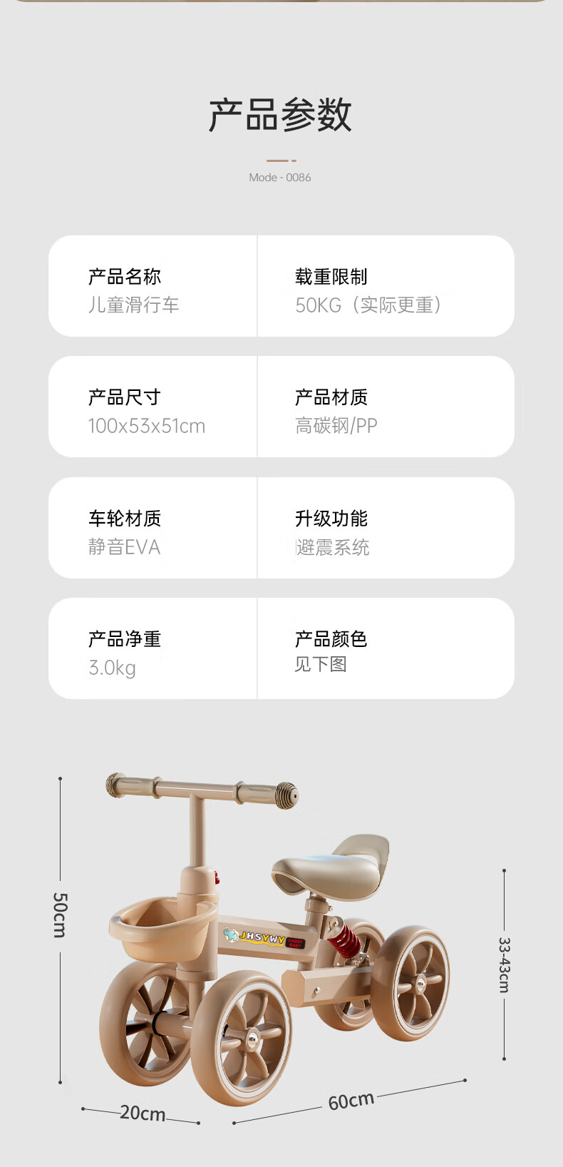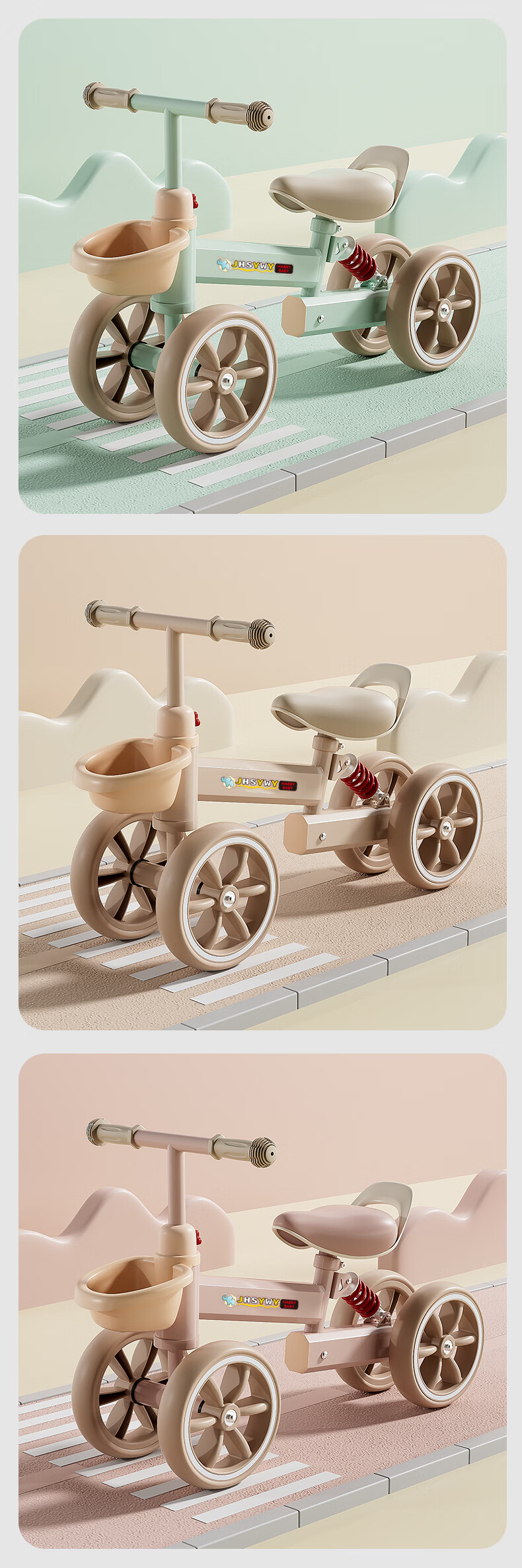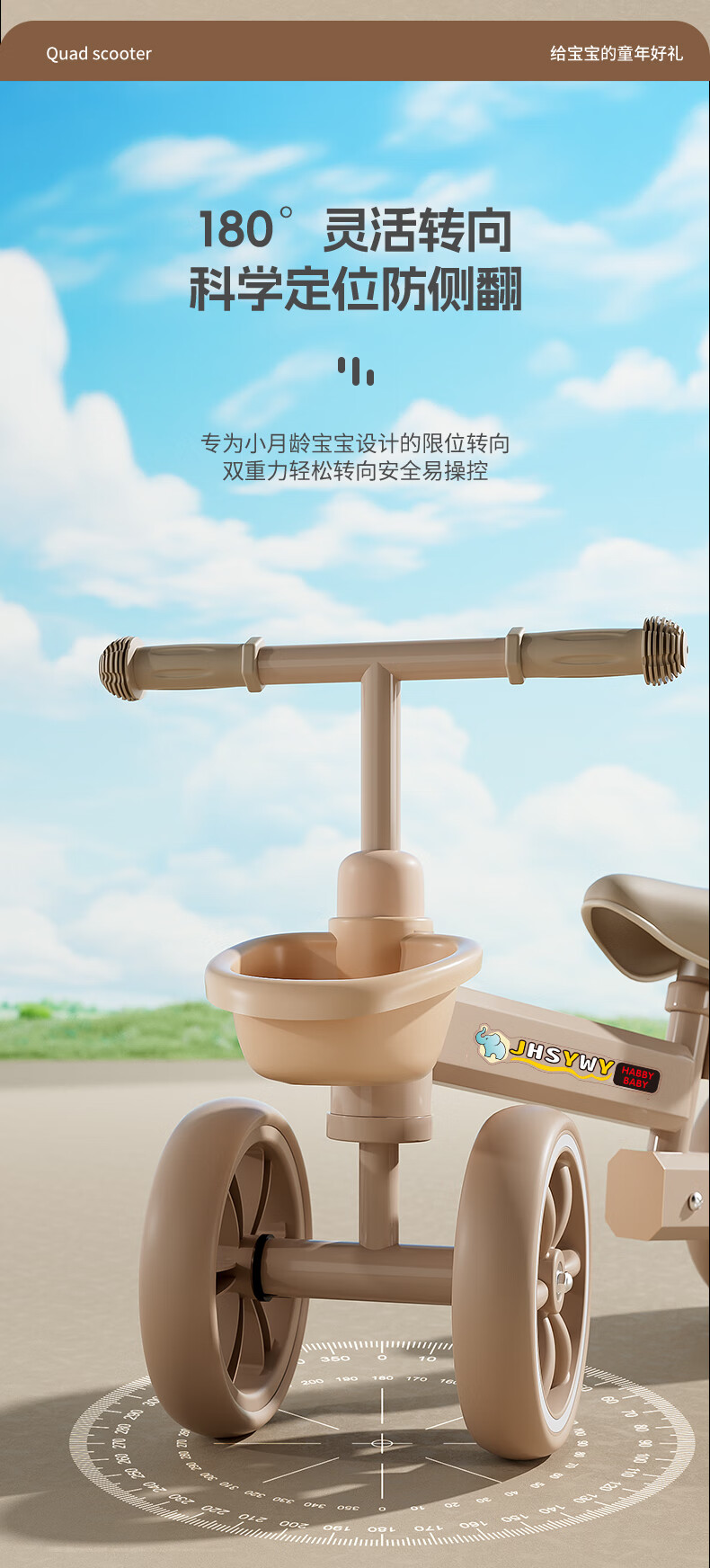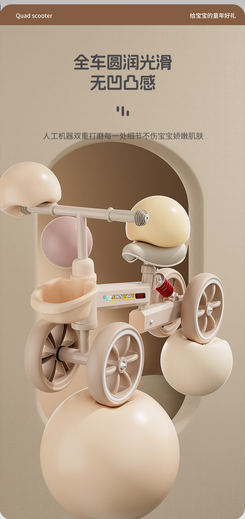 JHSYWY儿童平衡车学步车带减震宝宝滑行车四轮防侧翻滑行溜溜车 【升级减震大轮款】 卡其色