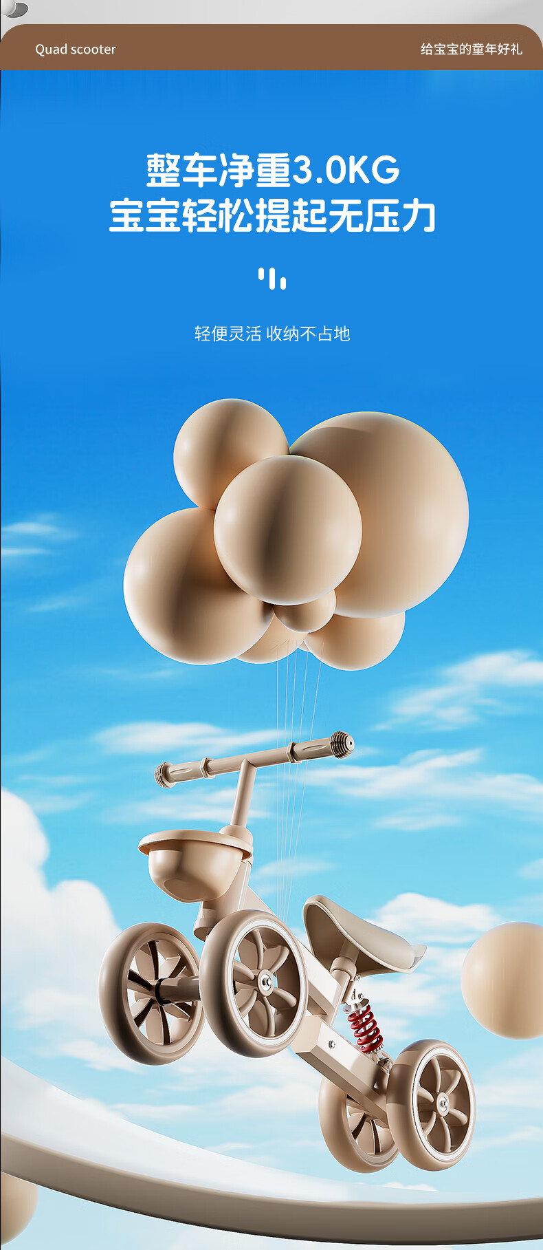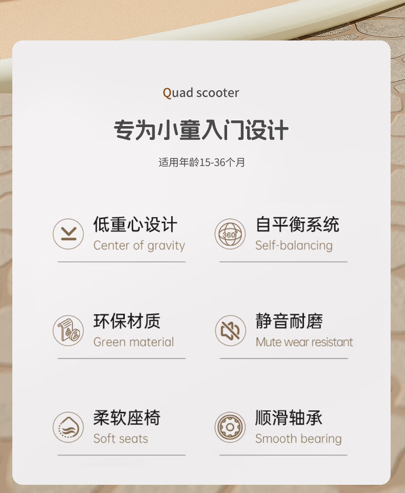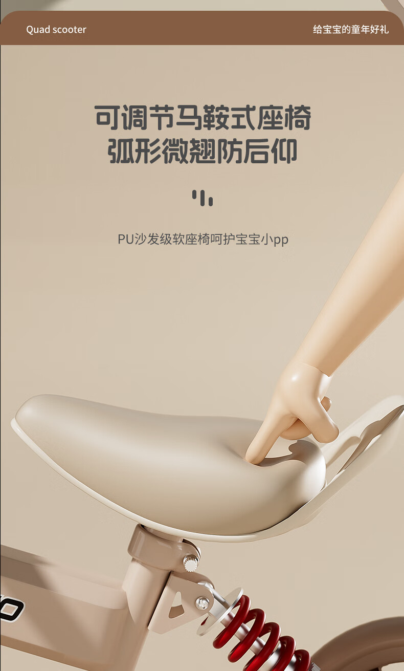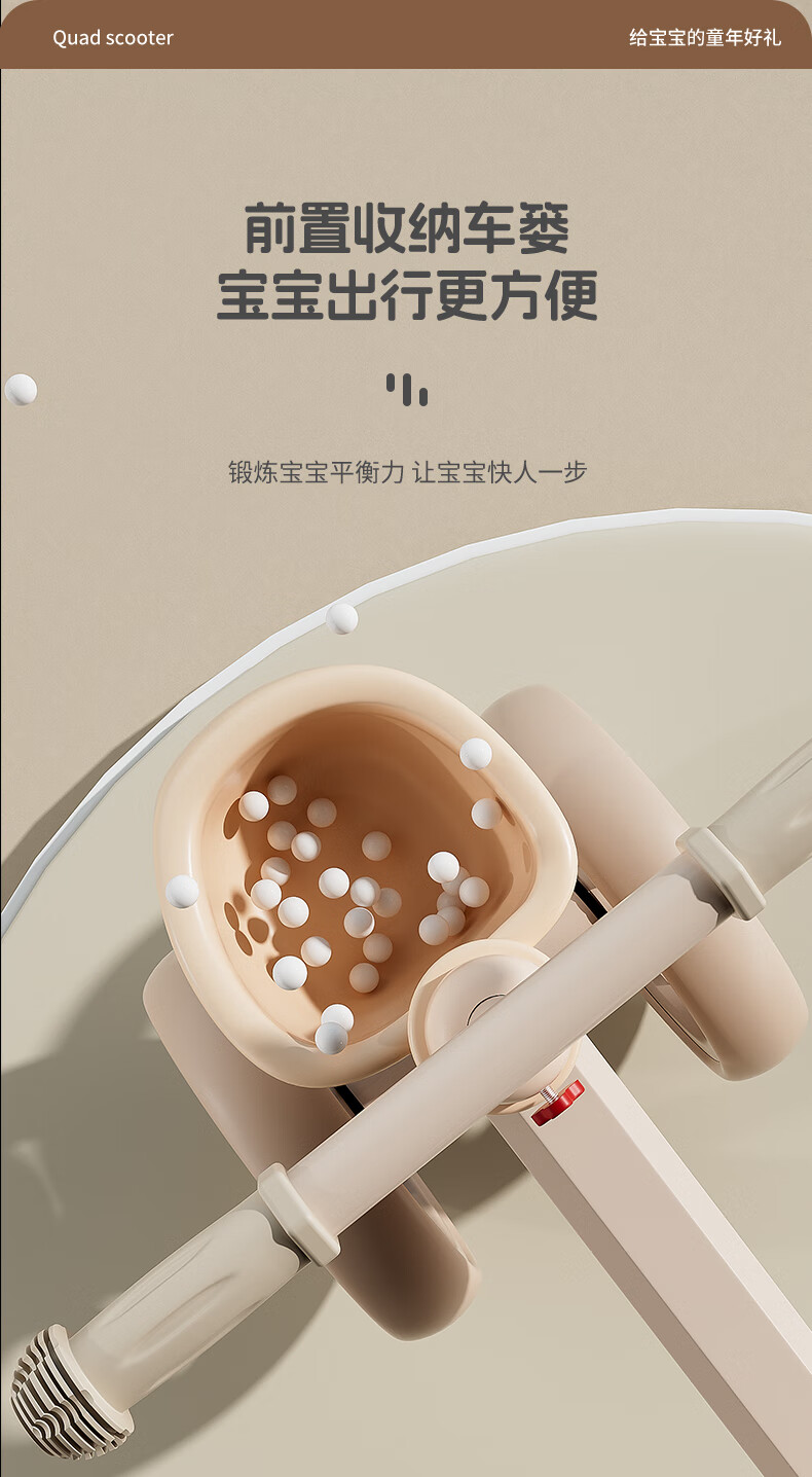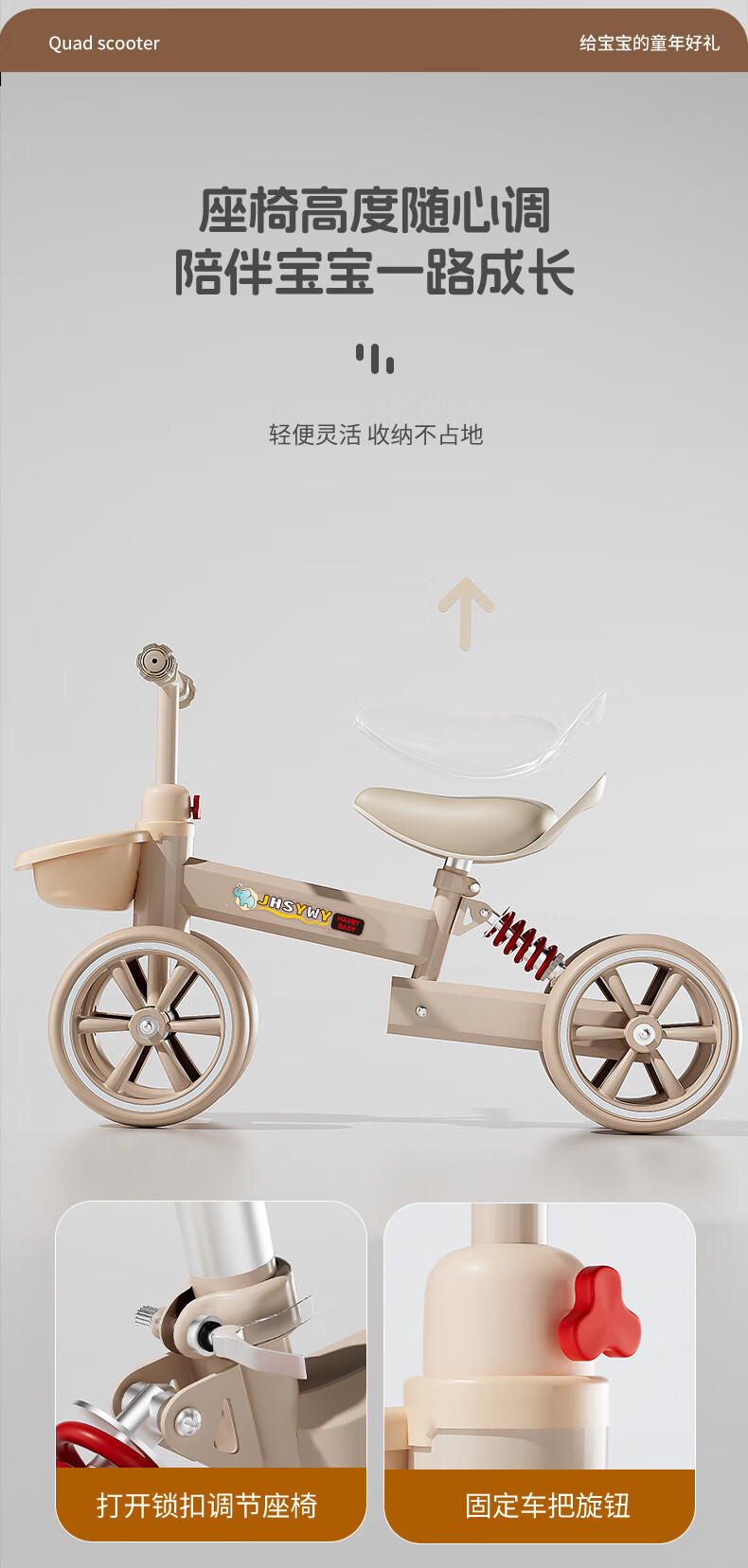 JHSYWY儿童平衡车学步车带减震宝宝滑行车四轮防侧翻滑行溜溜车 【升级减震大轮款】 卡其色
