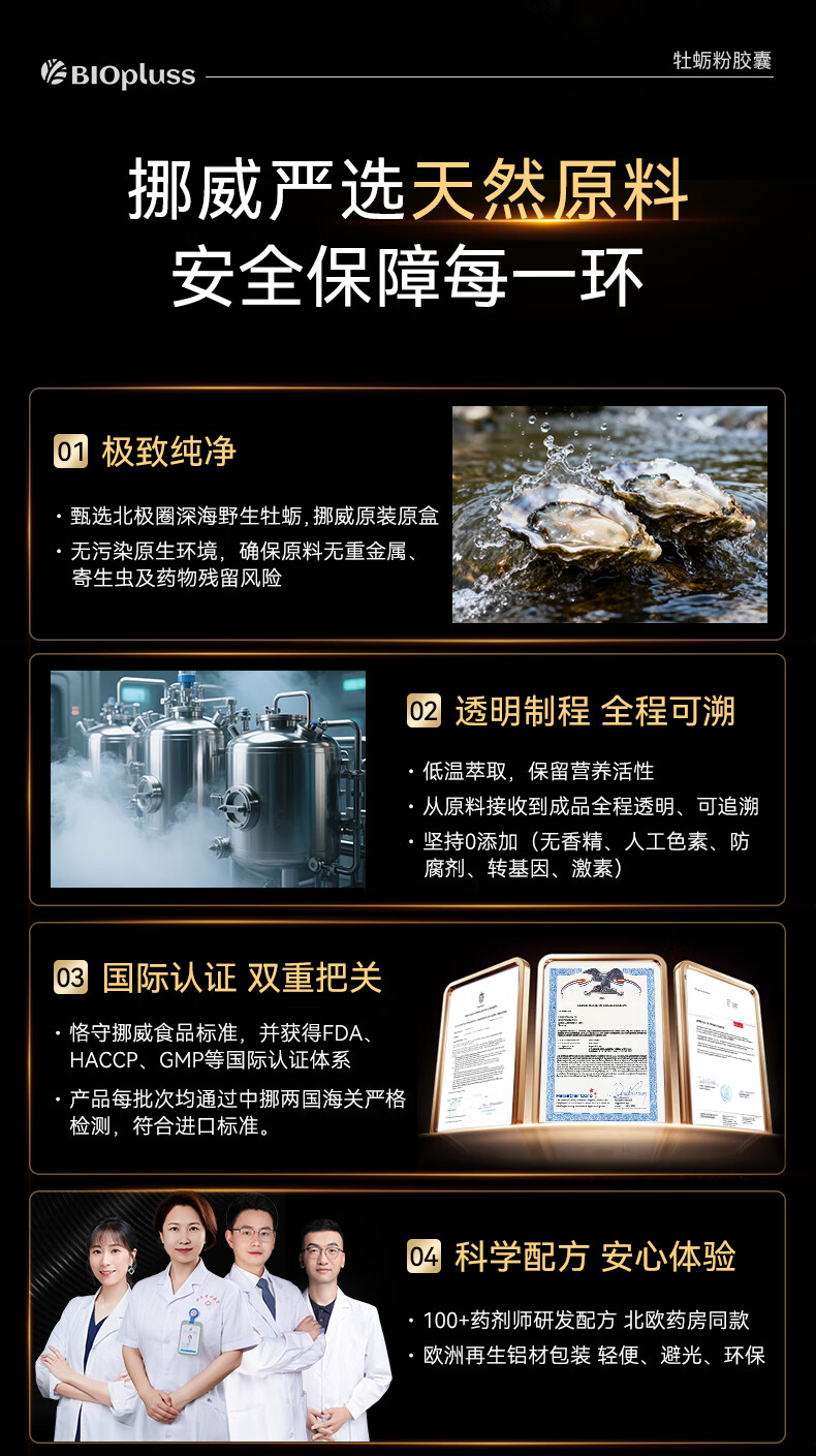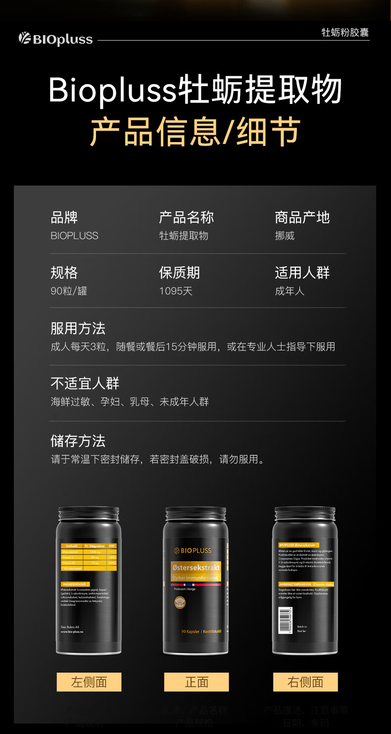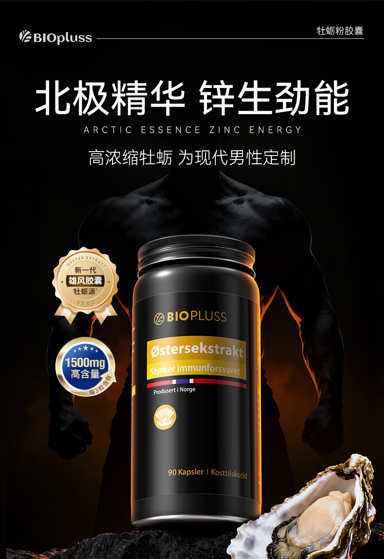 Biopluss倍路斯小黑罐牡蛎精华挪威进口精氨酸补锌生蚝精高纯持久精力提振 【挪威进口】北极牡蛎(90粒/瓶)