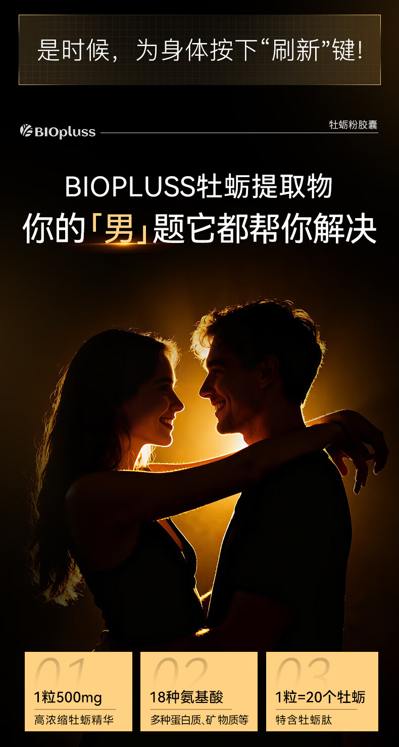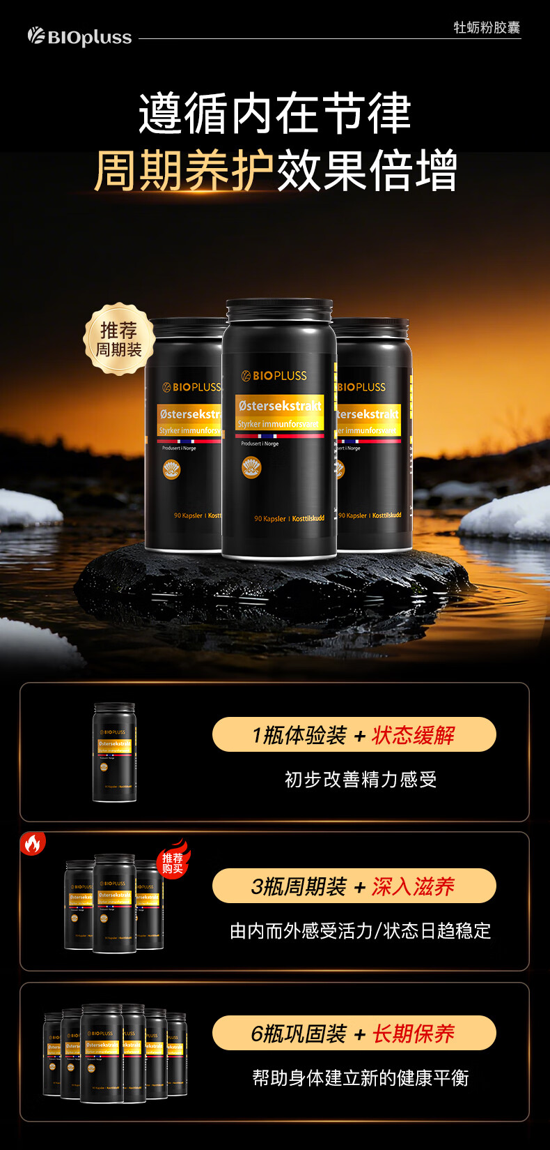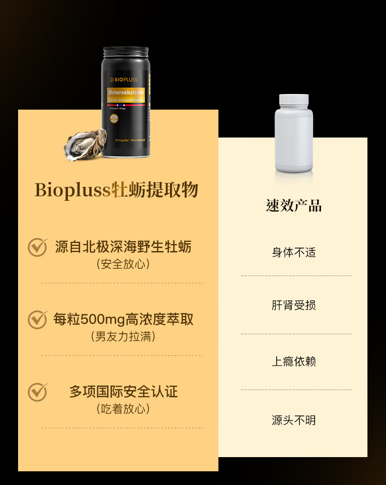 Biopluss倍路斯小黑罐牡蛎精华挪威进口精氨酸补锌生蚝精高纯持久精力提振 【挪威进口】北极牡蛎(90粒/瓶)