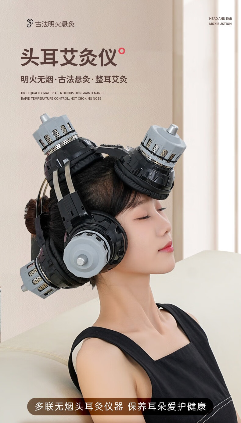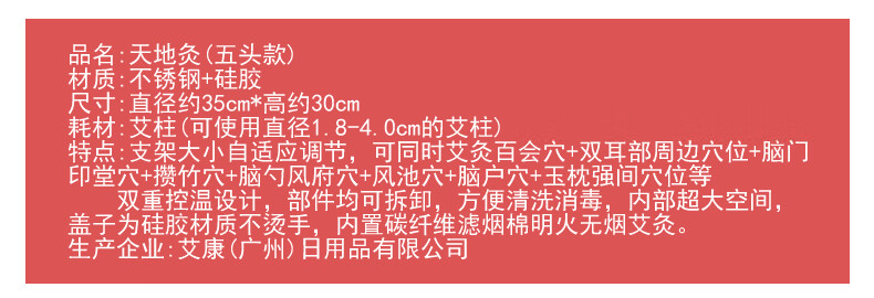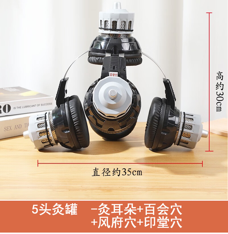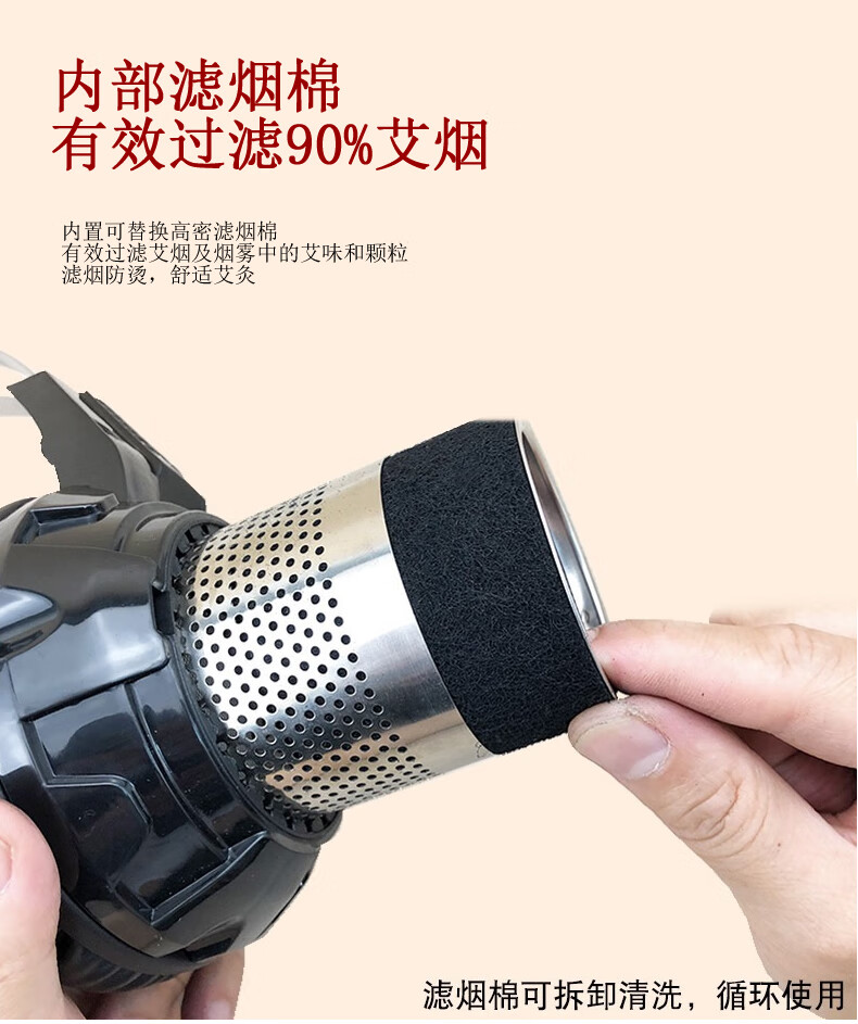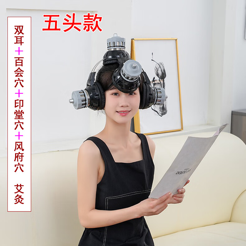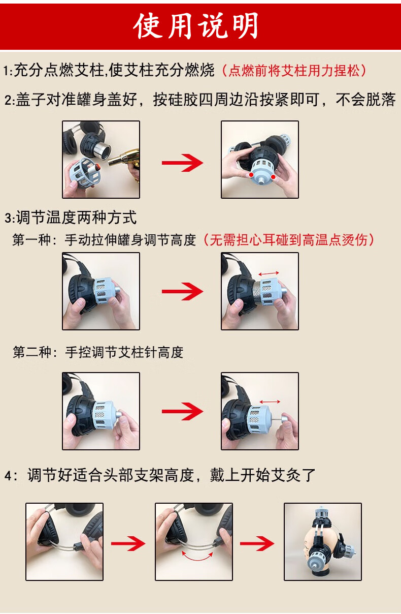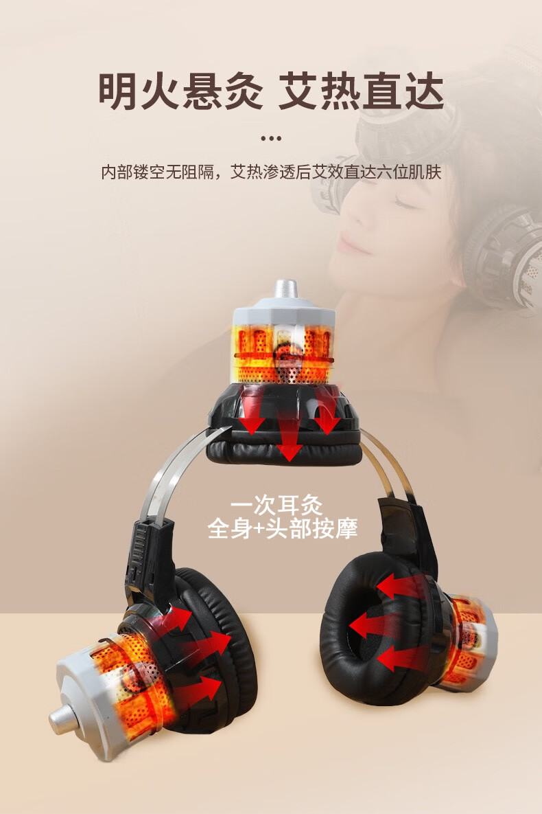 创安名品新款滤烟家用头耳部艾灸仪器颈灸朵理疗工具盒条神器无净百会穴罐 五头款+金艾柱(108柱)