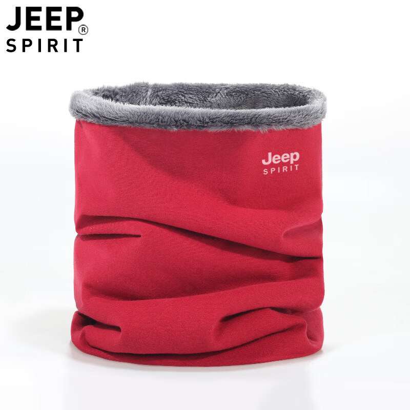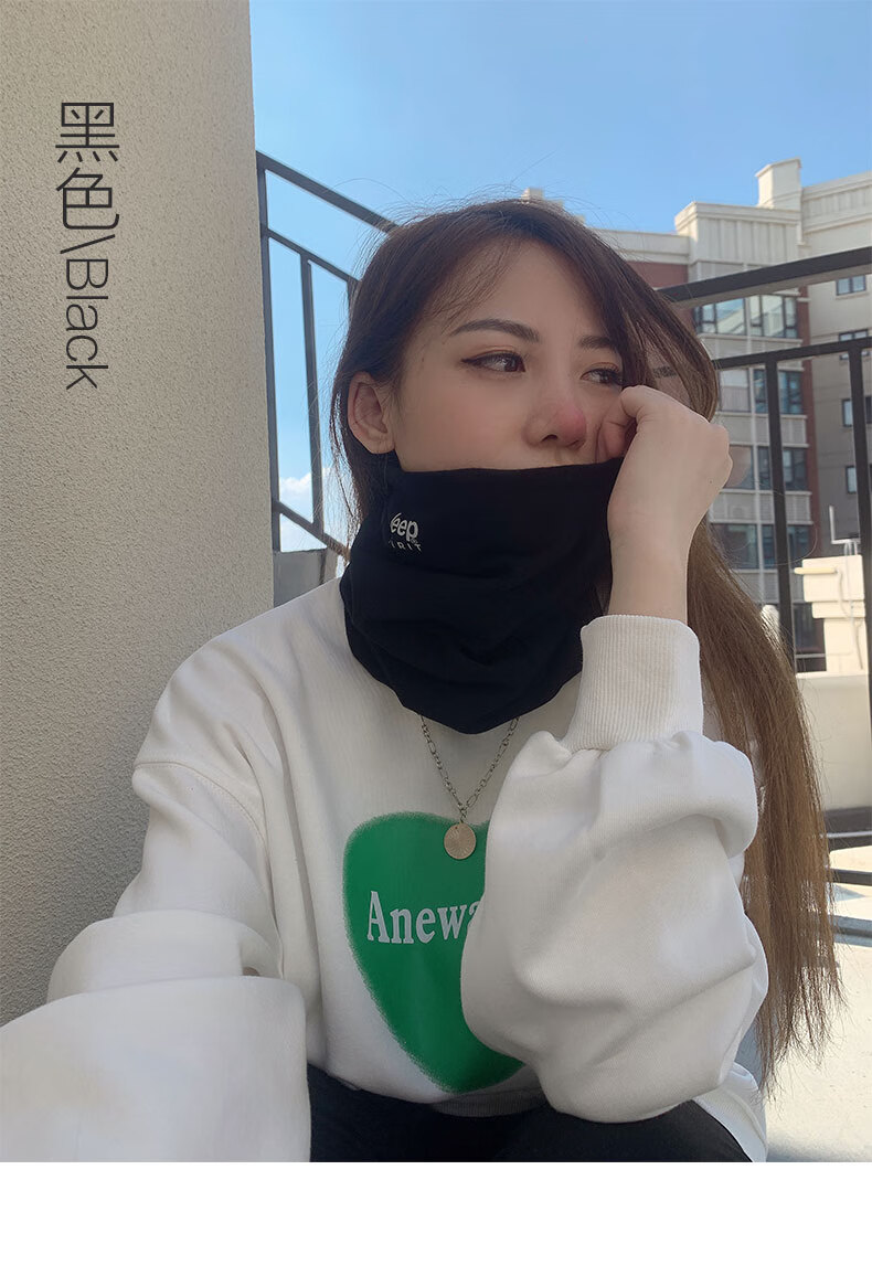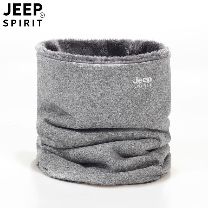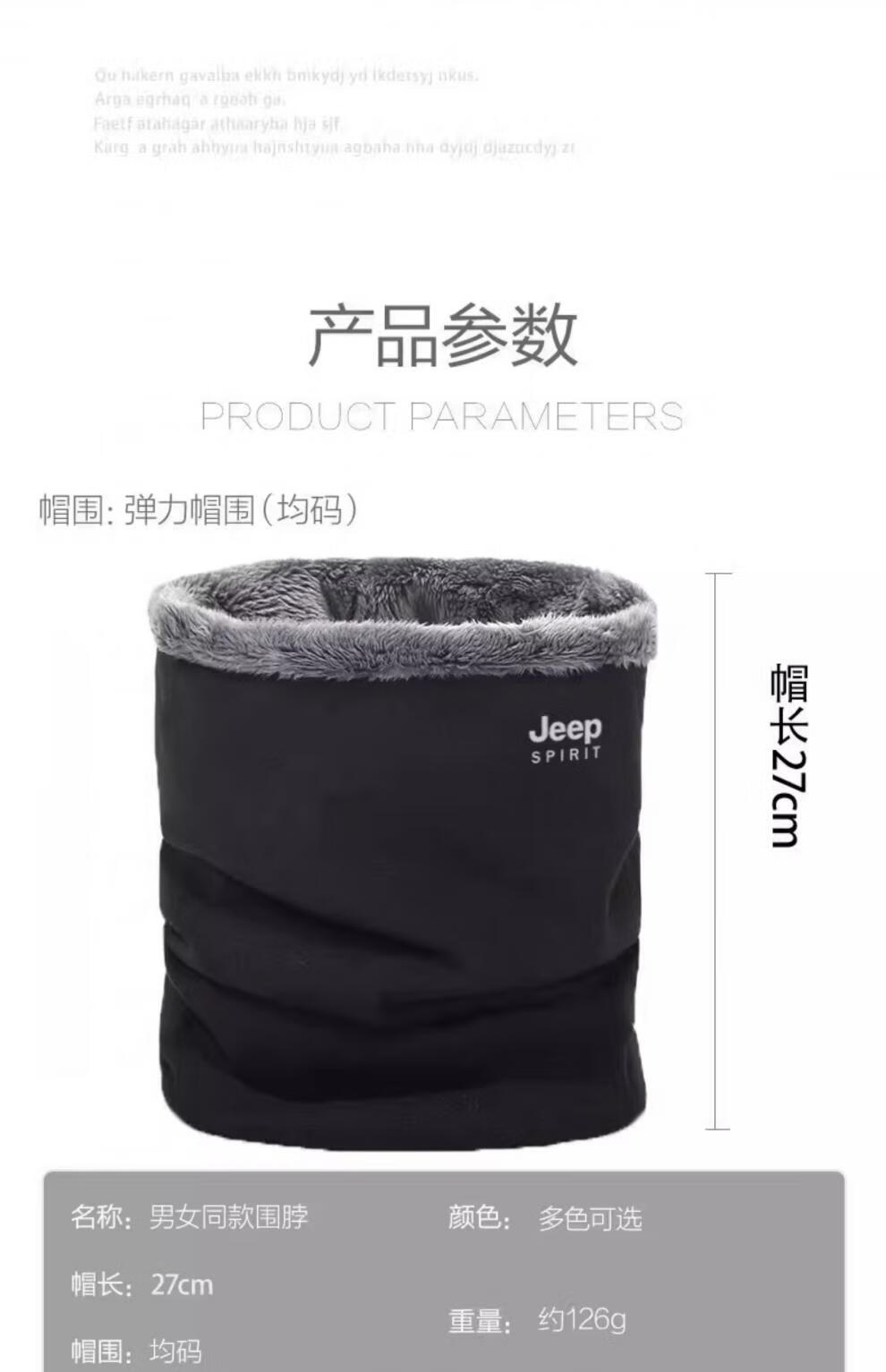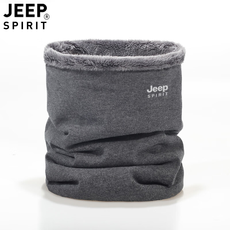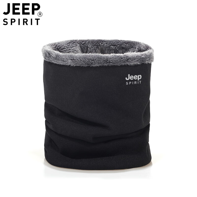 JEEP SPIRIT美式高端JEEP纯棉加绒脖套男女款保暖护颈小围脖骑行户外防寒围巾 黑色 (加绒-纯棉直筒款)