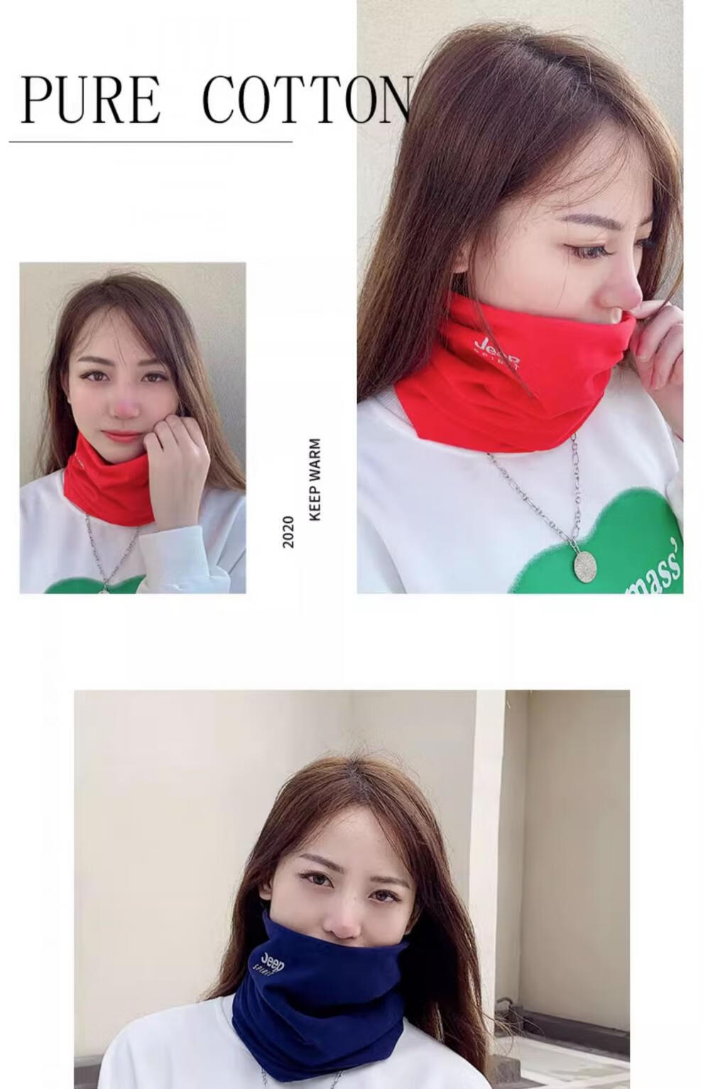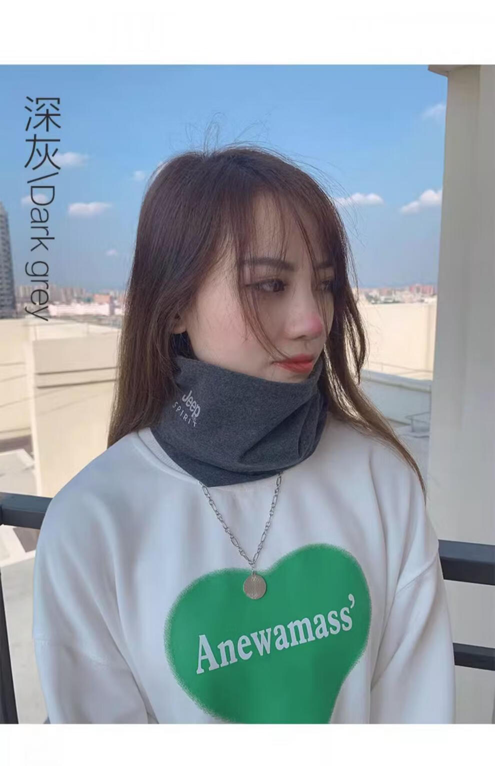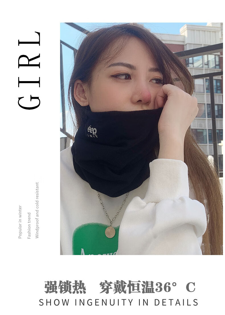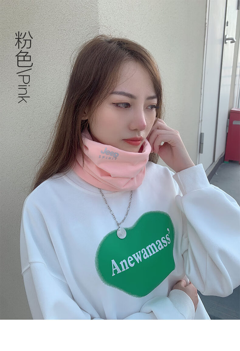 JEEP SPIRIT美式高端JEEP纯棉加绒脖套男女款保暖护颈小围脖骑行户外防寒围巾 黑色 (加绒-纯棉直筒款)