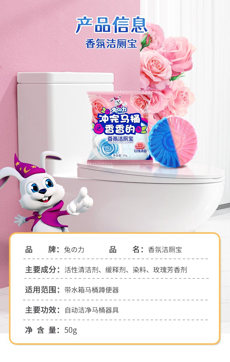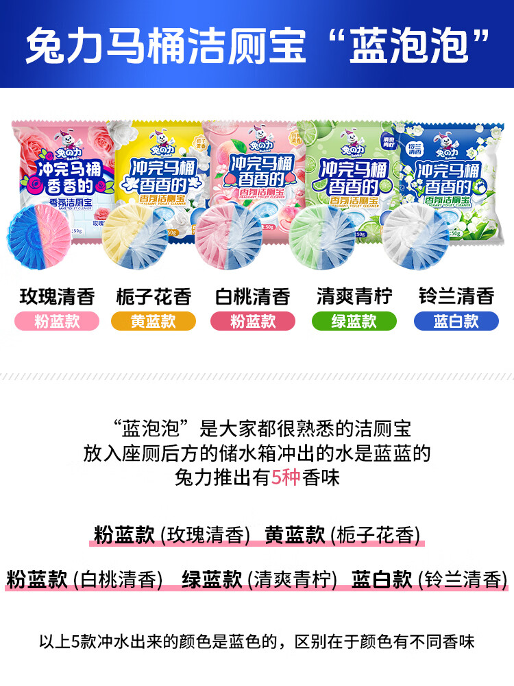 兔力洁厕宝 马桶清洁剂 厕所除臭神器除臭去味蓝泡泡 香氛洁厕宝 50g 20个 【5种香味】