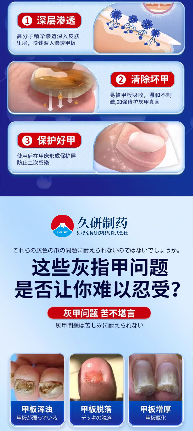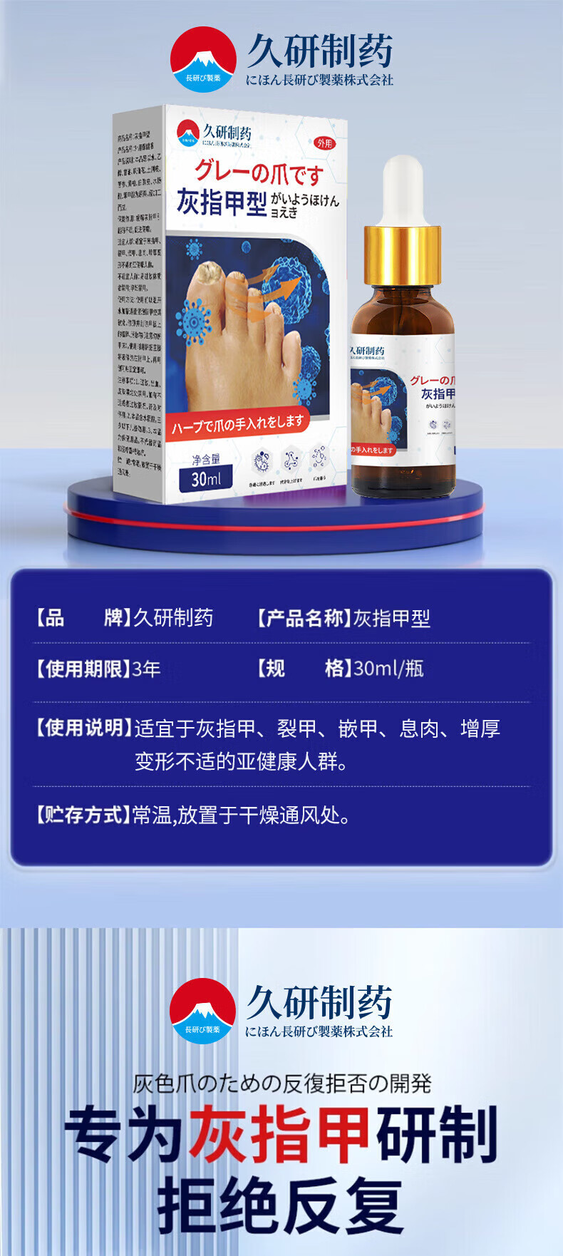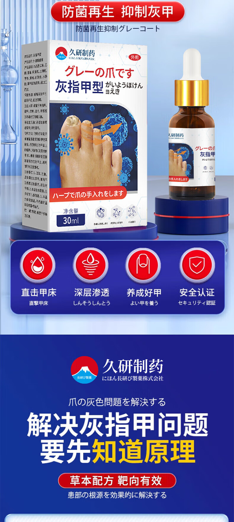 久研制药日本灰指甲特傚效药第1名正品增厚发黄变空中沟草炎药进口抑菌液 一瓶【体验装】