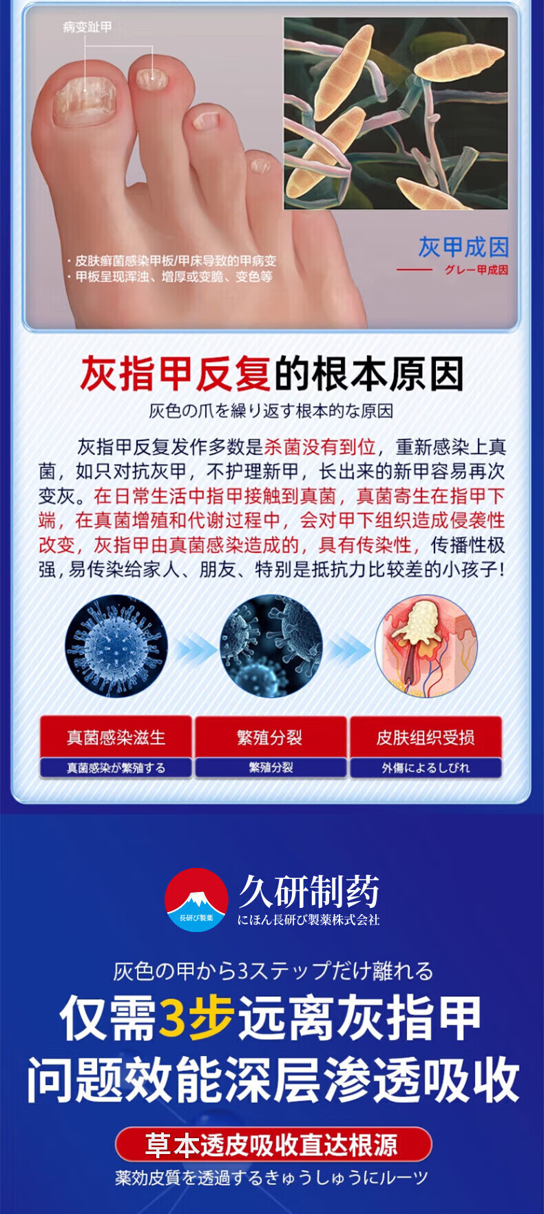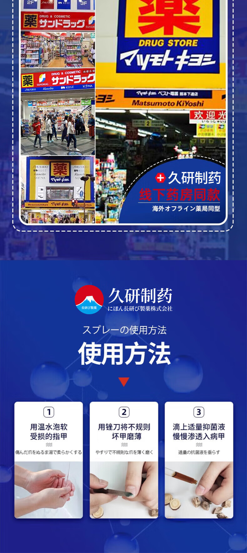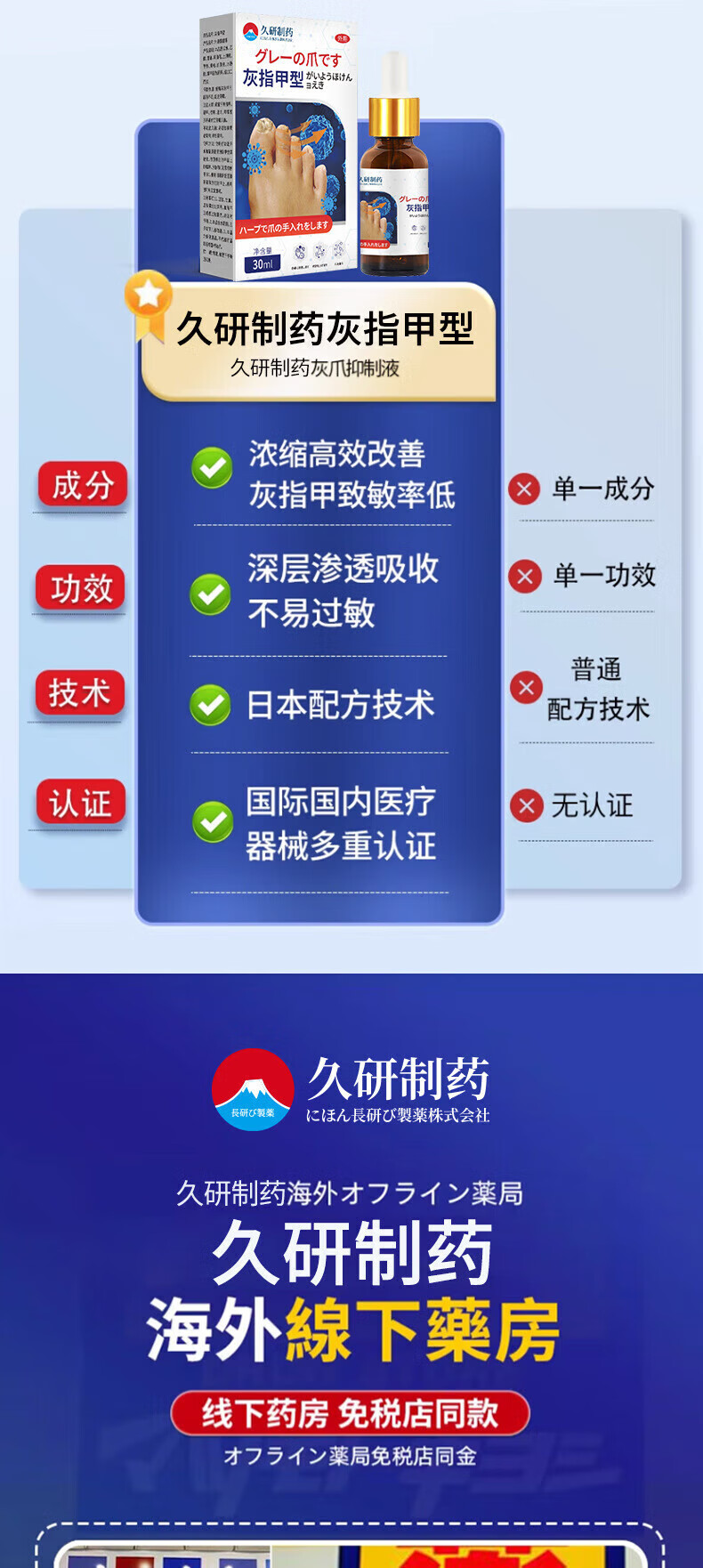 久研制药日本灰指甲特傚效药第1名正品增厚发黄变空中沟草炎药进口抑菌液 一瓶【体验装】