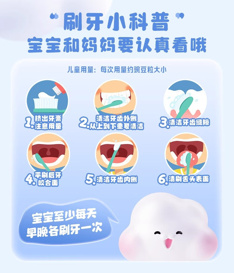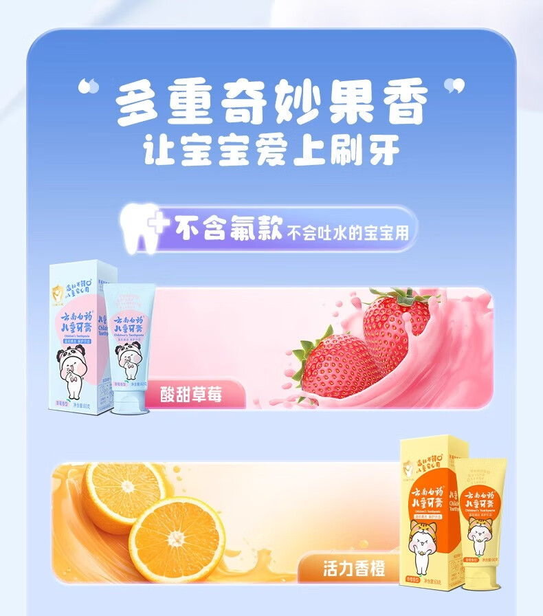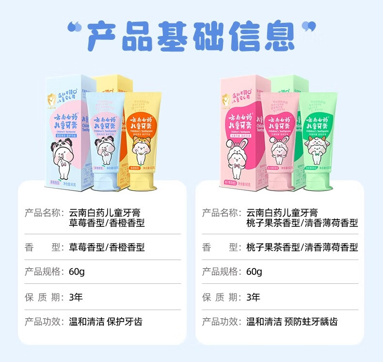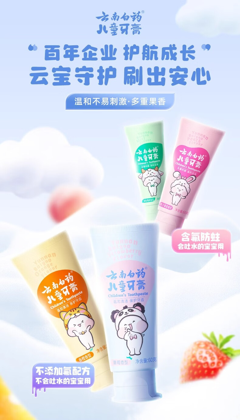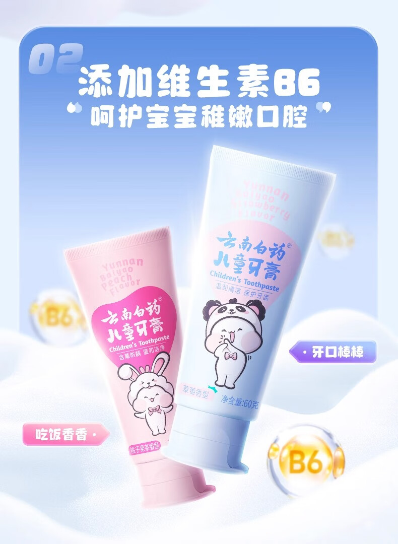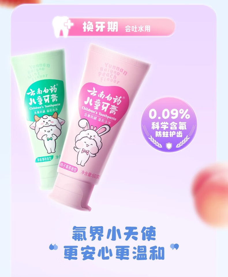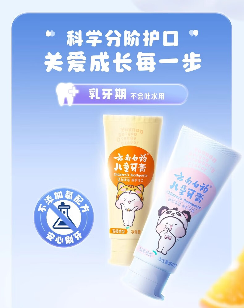 云南白药儿童牙膏洁齿护口含氟可防蛀牙放龋换牙期6-12岁宝宝 云宝【清香薄荷】 60g 1支