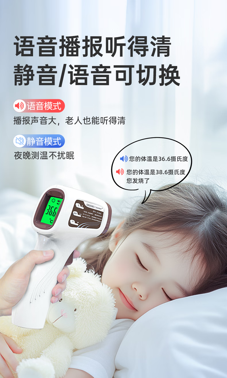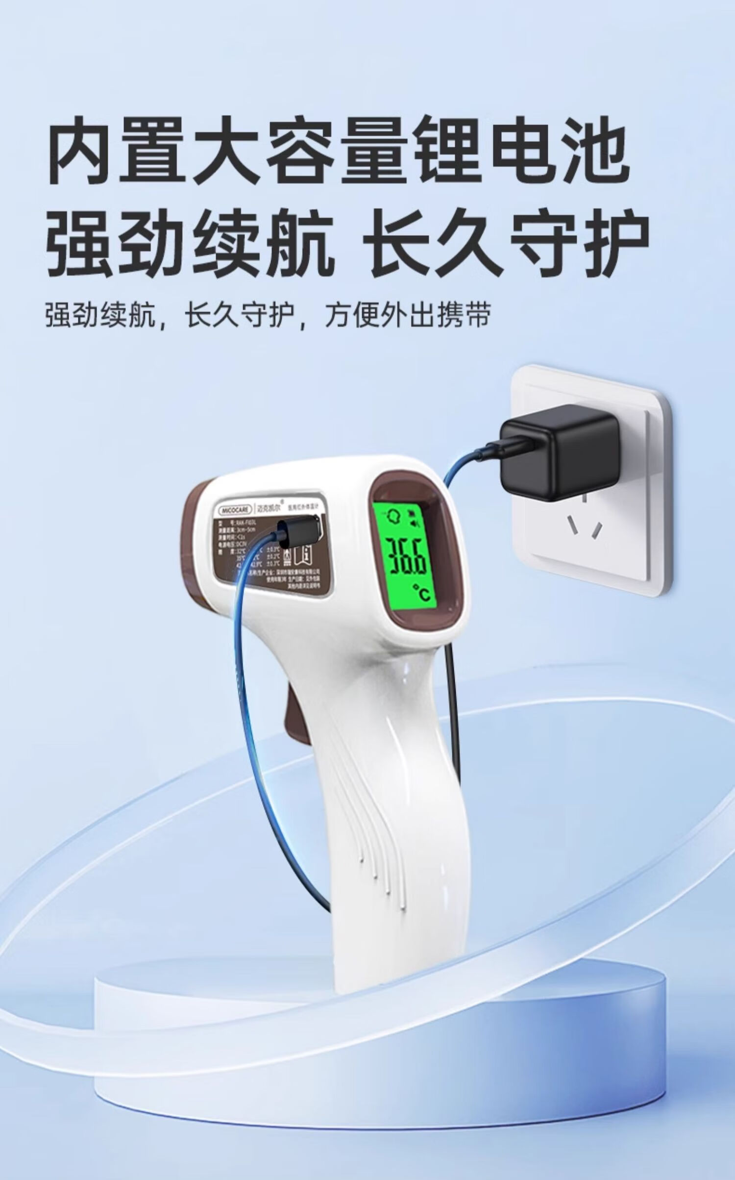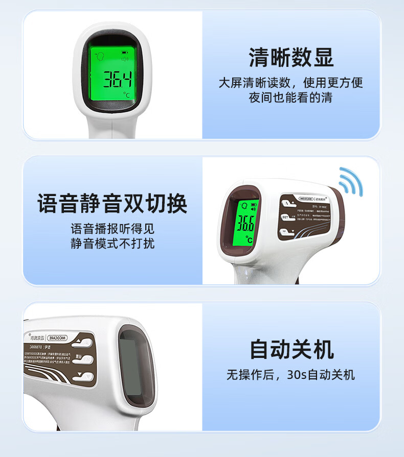迈克凯尔医专用高精准电子体温度计人体婴幼儿童充电额温枪宝医院同款家用 【顶配充电款】精密探头+语音播报+三色背光