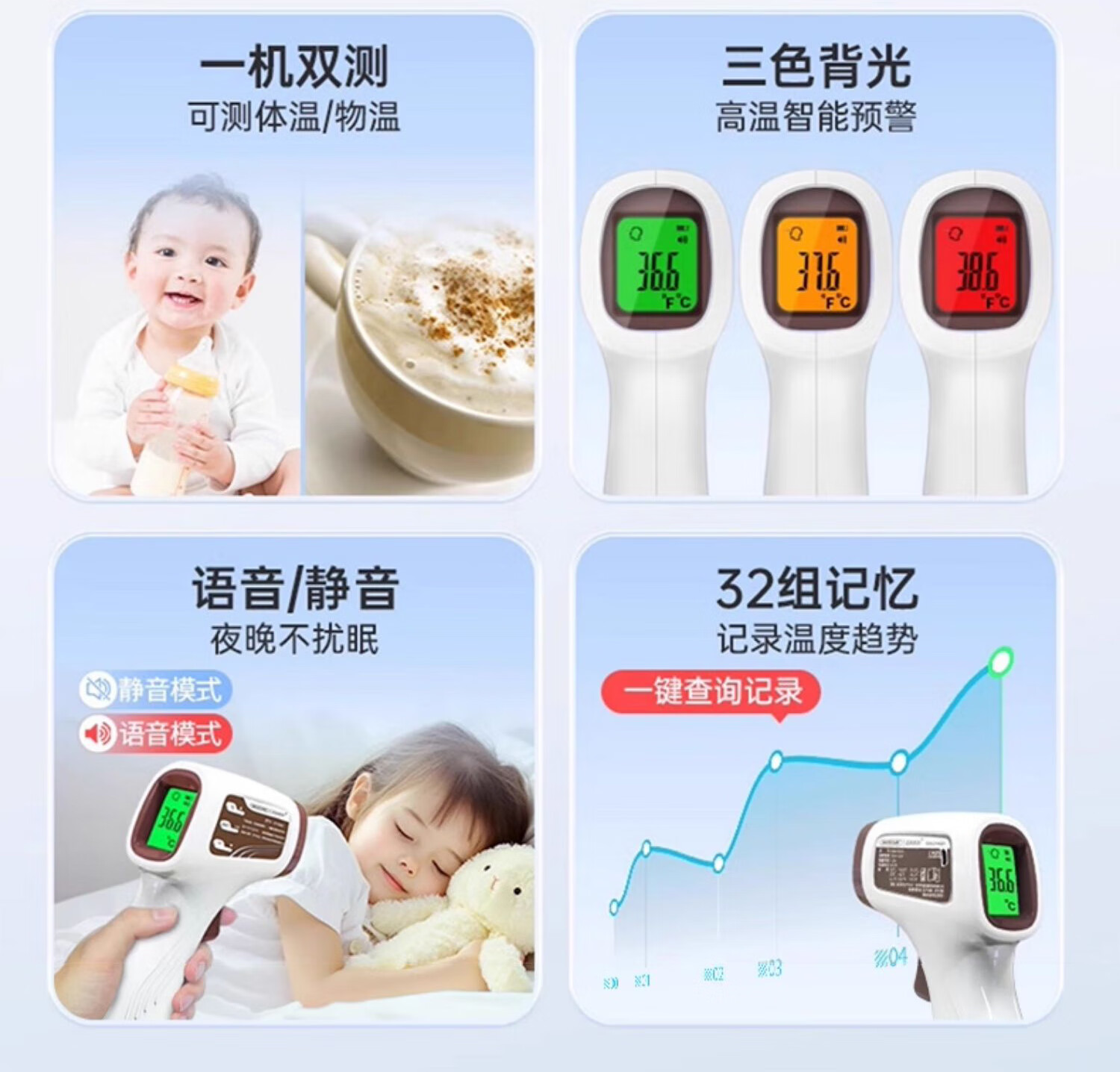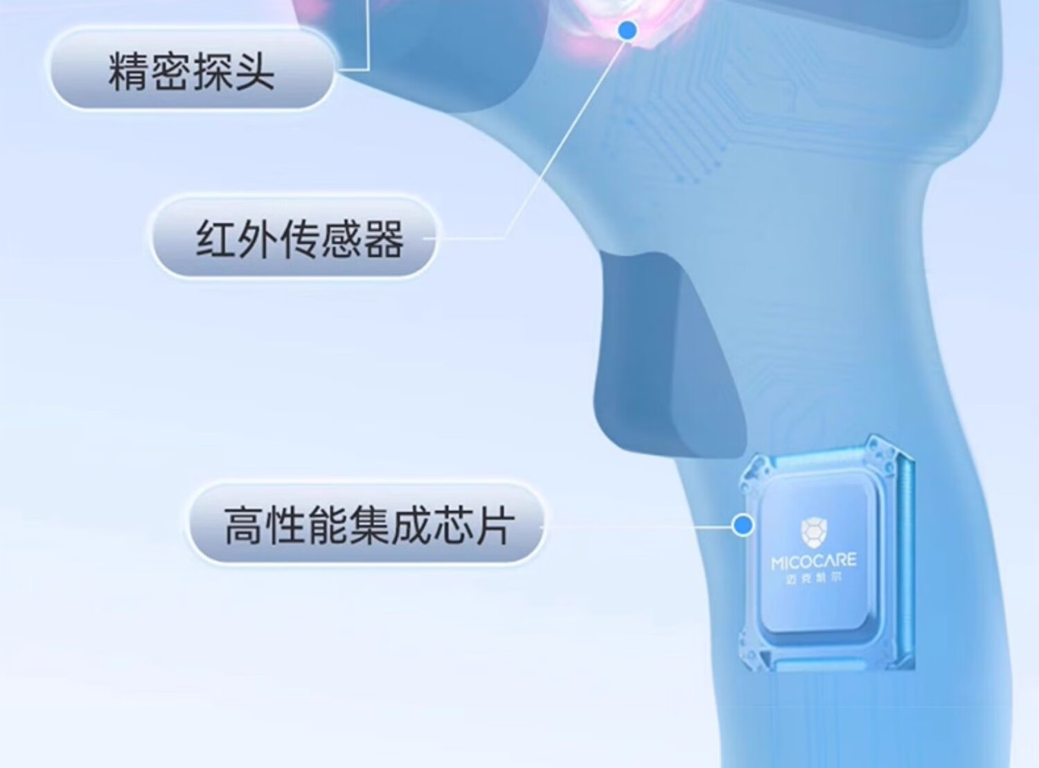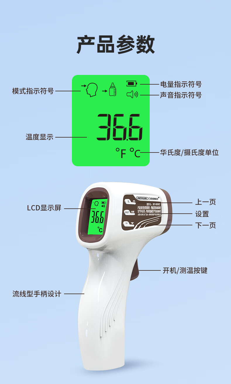 迈克凯尔医专用高精准电子体温度计人体婴幼儿童充电额温枪宝医院同款家用 【顶配充电款】精密探头+语音播报+三色背光