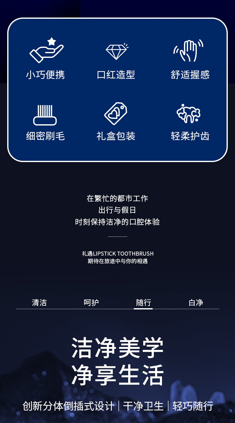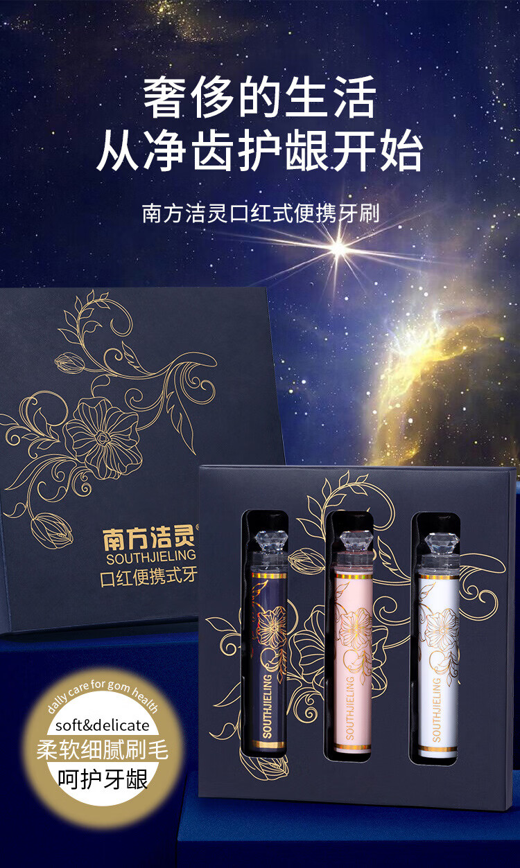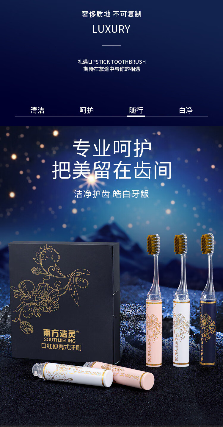 南方洁灵【优选直发】便携式口红牙刷软毛成人可拆卸出差旅行情侣家庭装家 口红牙刷礼盒装9支