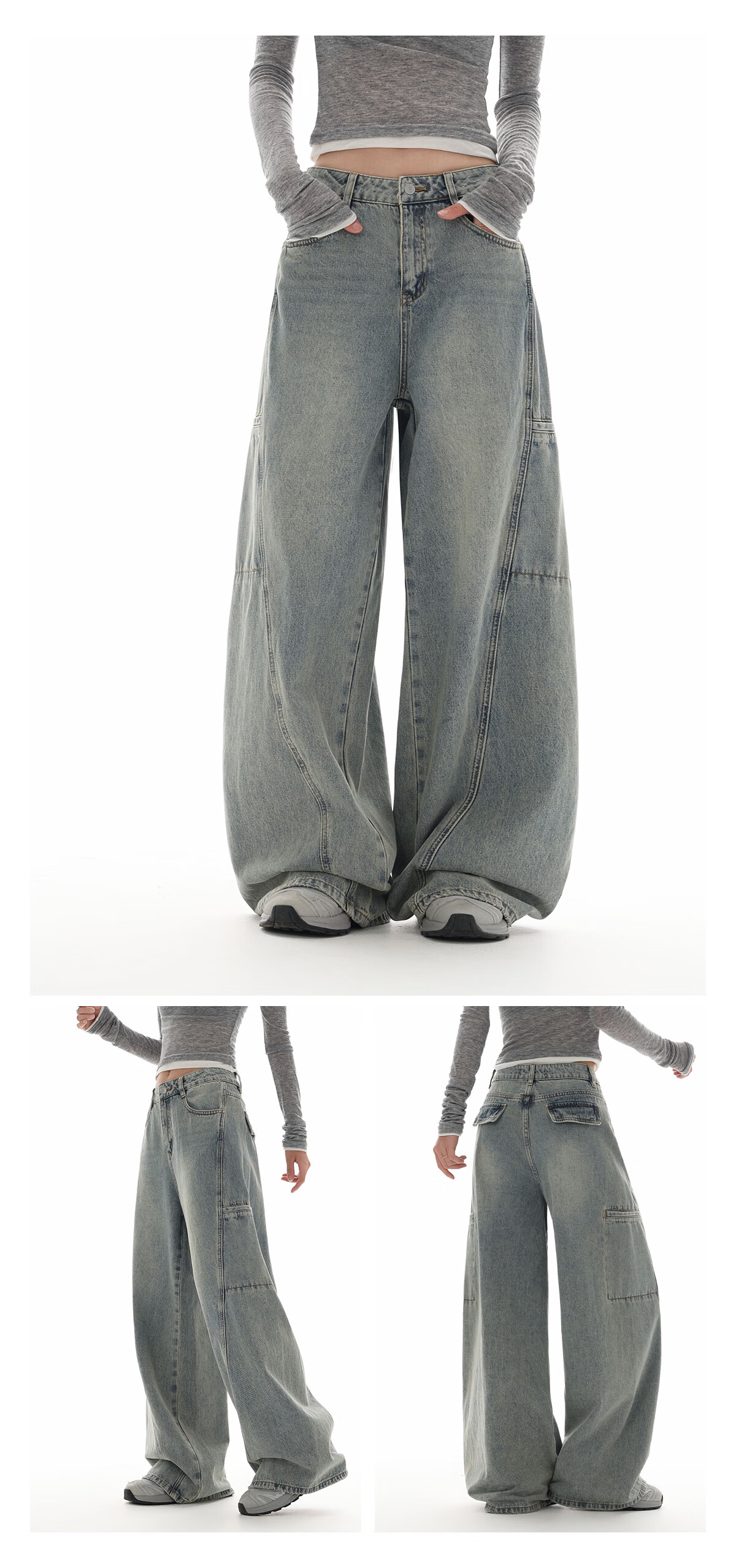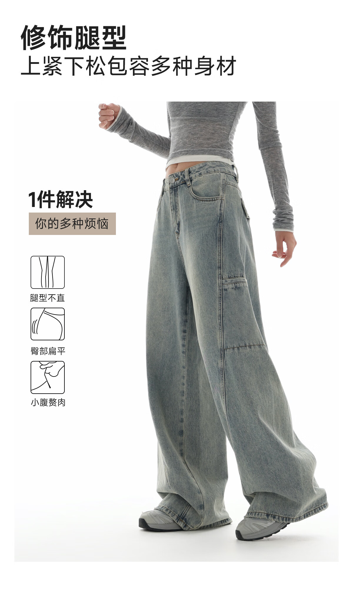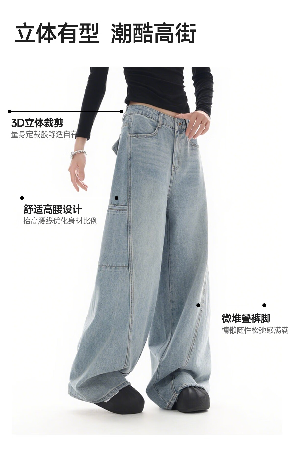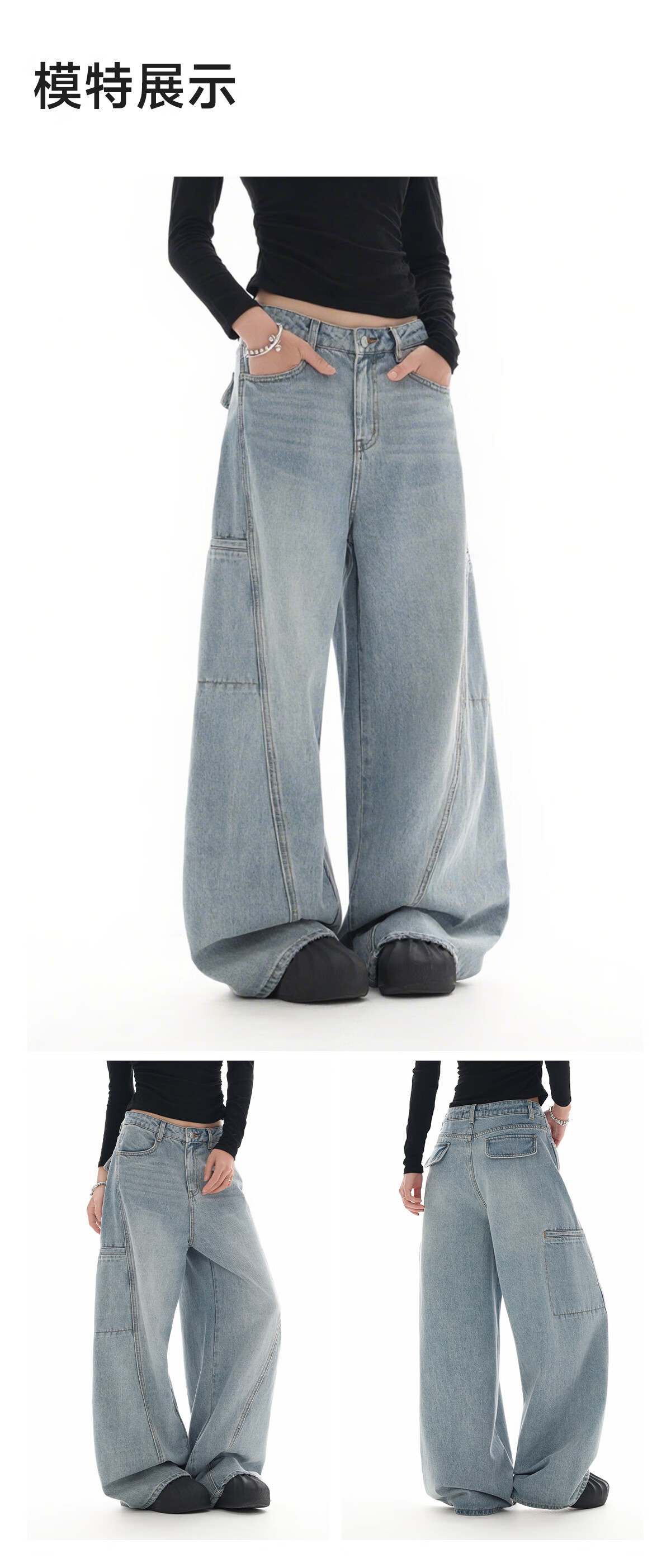 美特斯邦威[商场同款]牛仔裤女25秋冬新宽松直筒工装阔腿裤 浅蓝 L 165 68A