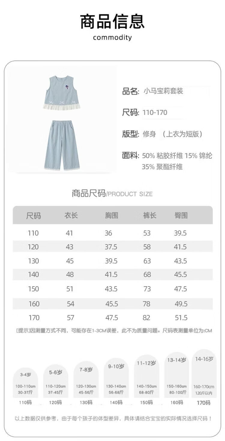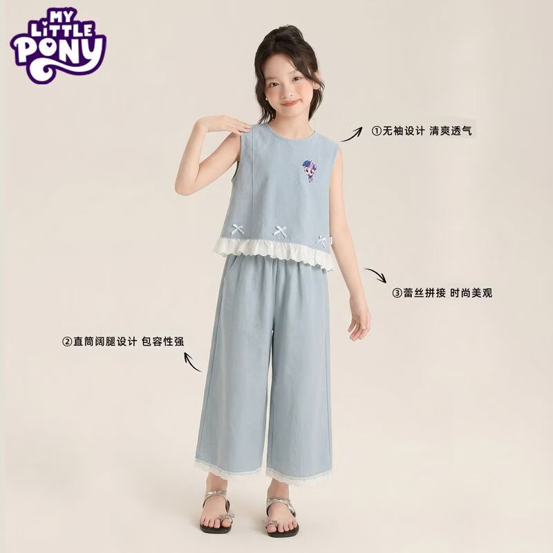 小马宝莉(MY LITTLE PONY)女童套装2026夏季新款天丝牛仔儿童中大童无袖阔腿裤两件套洋气 牛仔兰 160
