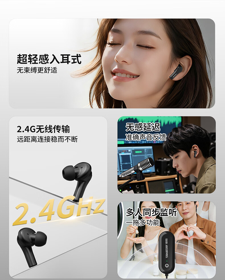 得胜(TAKSTAR)新品上市:WPM-420无线监听耳机 直播耳返|2.4G真无线耳机|一拖N声卡伴侣|超低延迟|轻便入耳式 WPM-420(一托三) 发射器+三副耳机