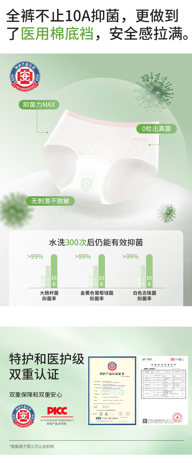 草本初色优选草本初色发育期少女特护级内裤10A抗菌植物零染全包臀贴合透气 八条装【全裤10a抑菌】 8条 3XL 130-150斤