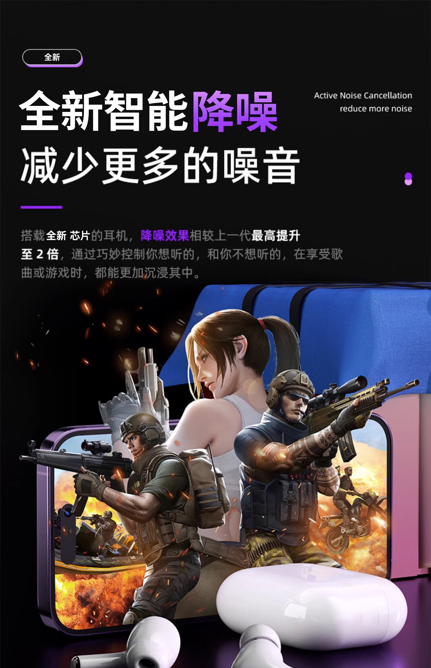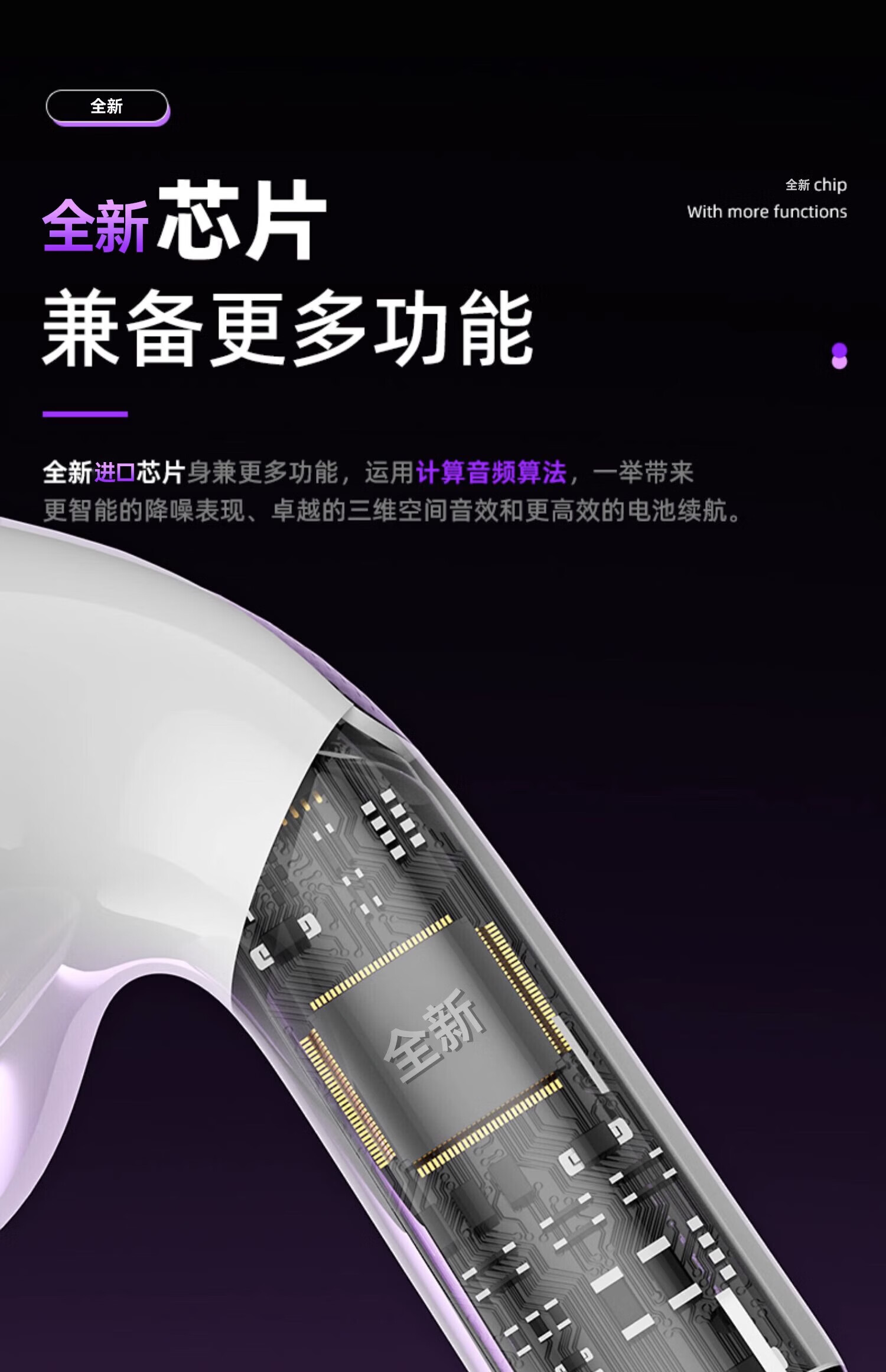 AI降噪 适用蓝牙耳机真无线半入耳式主动降噪低音 雪白5.4立体全景音效+降噪佩戴更