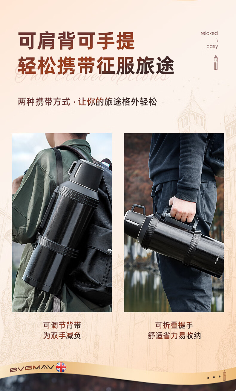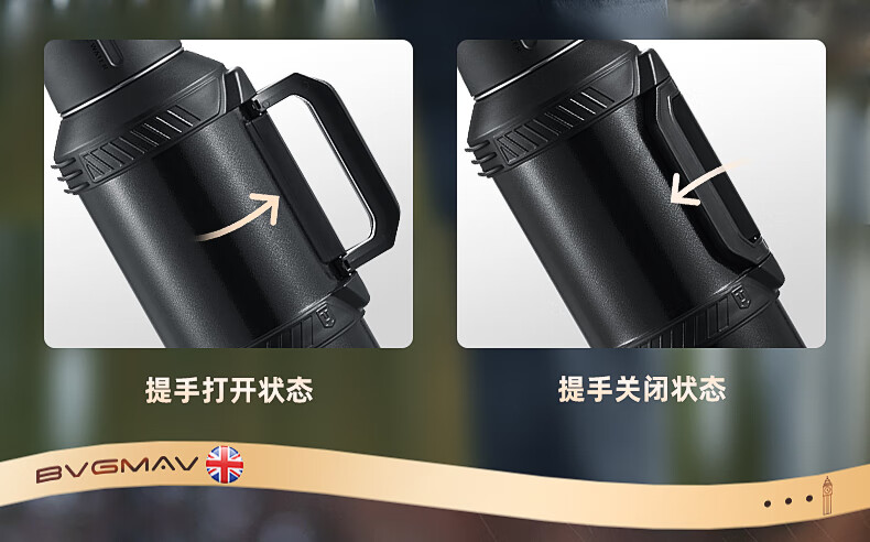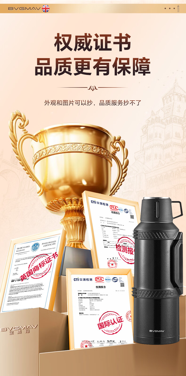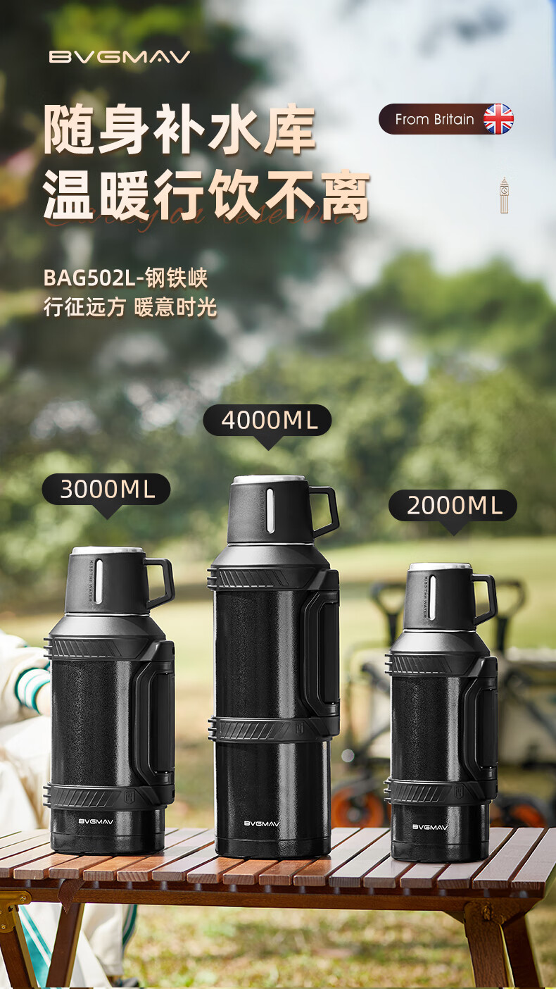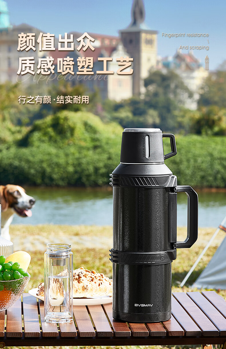 宝威玛(BVGMAV)保温壶英国 高档大容量车载旅行壶保冷 316L不锈钢暖水壶户外保 骑士黑【越野神器】 2L