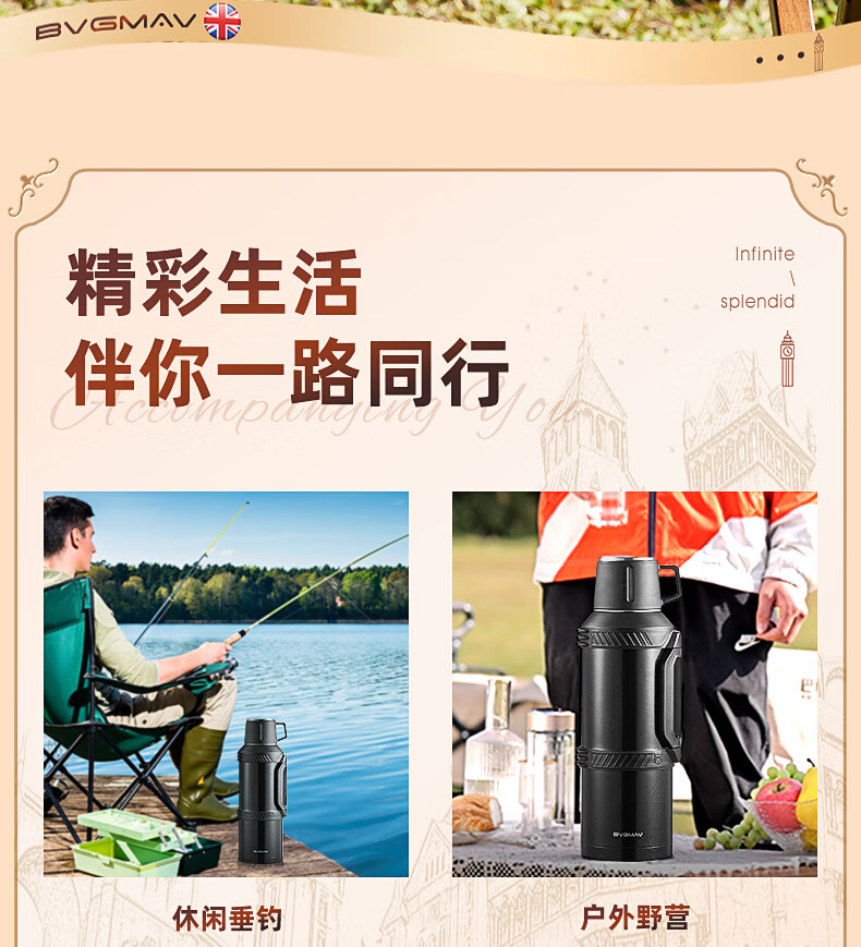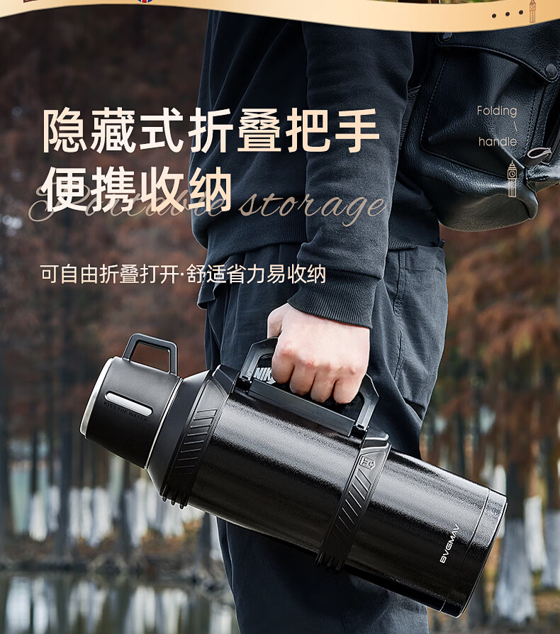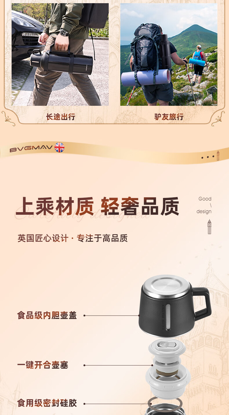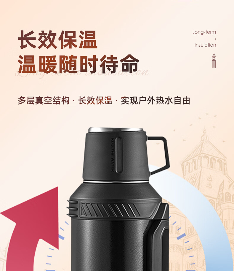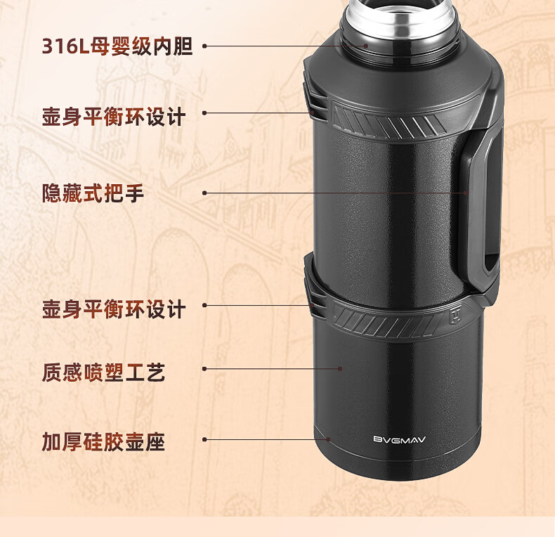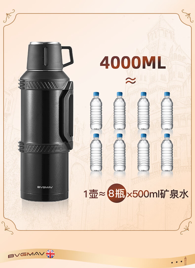 宝威玛(BVGMAV)保温壶英国 高档大容量车载旅行壶保冷 316L不锈钢暖水壶户外保 骑士黑【越野神器】 2L