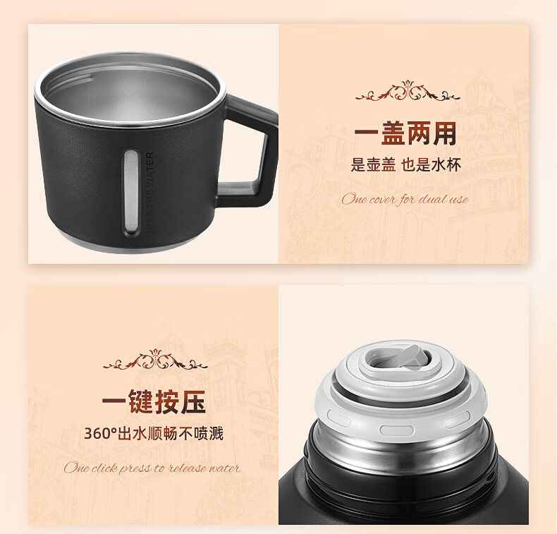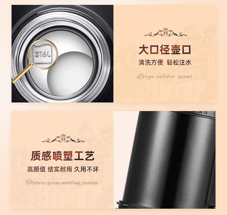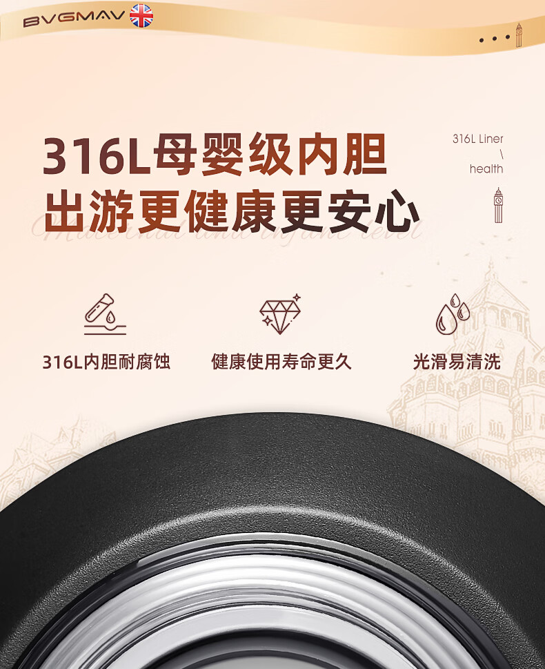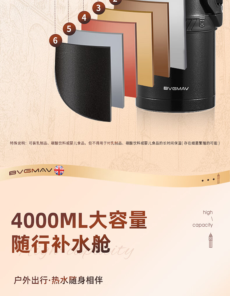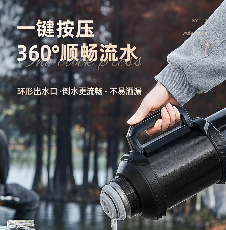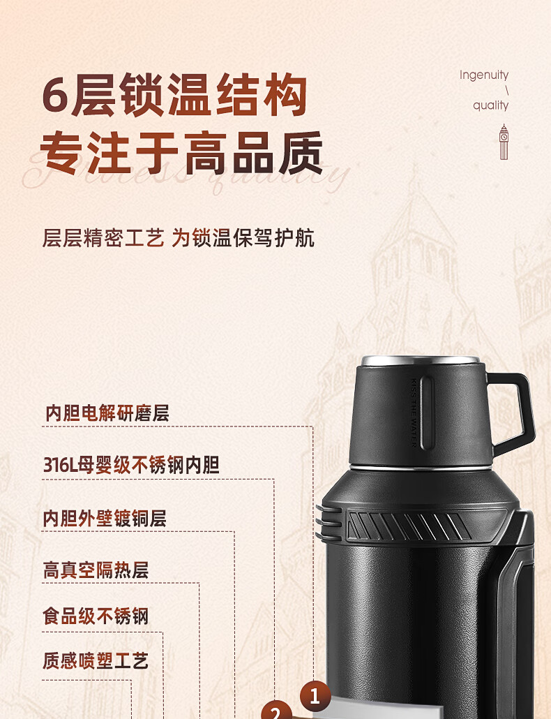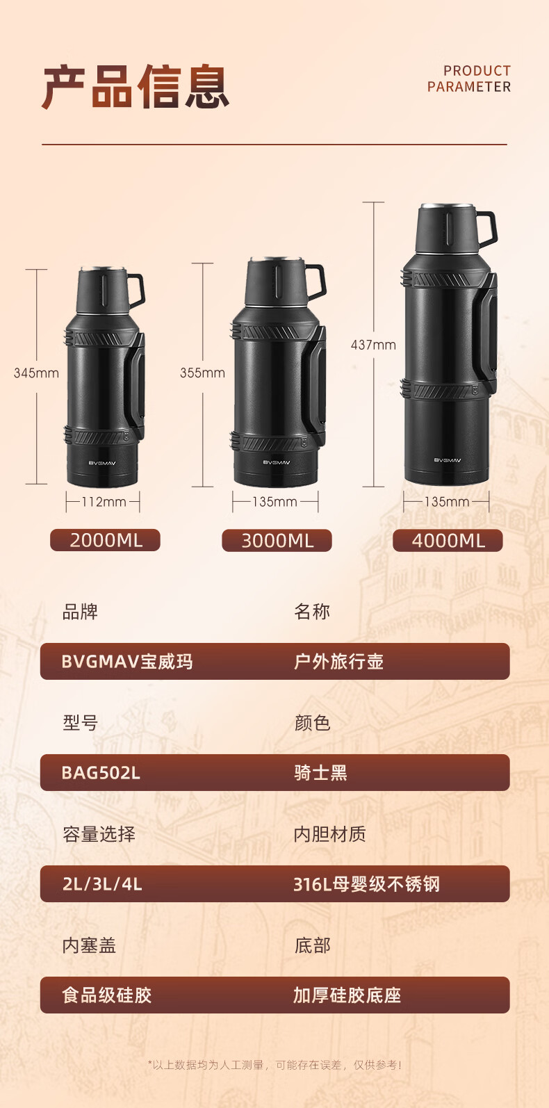 宝威玛(BVGMAV)保温壶英国 高档大容量车载旅行壶保冷 316L不锈钢暖水壶户外保 骑士黑【越野神器】 2L