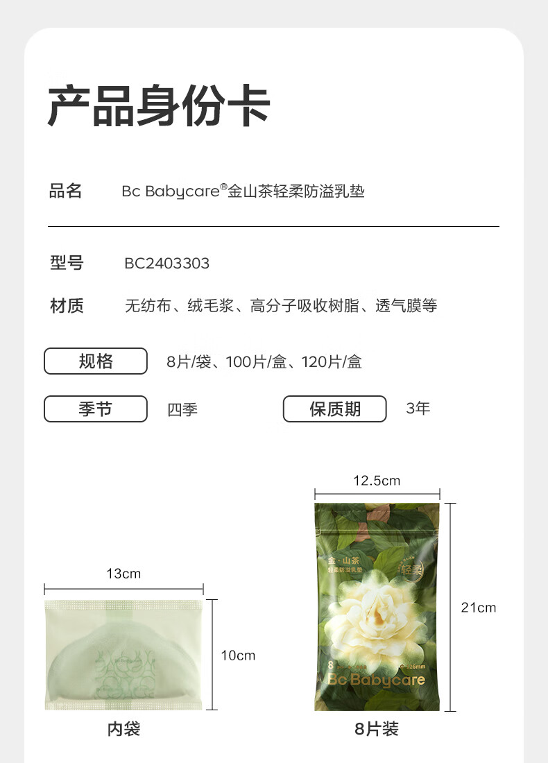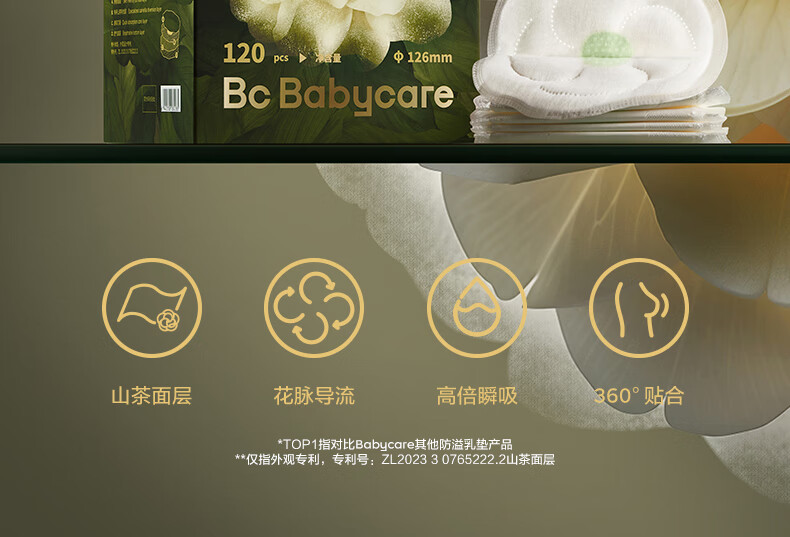 babycare防溢乳垫孕妇产后一次性防溢乳贴3D贴合超薄透气哺乳期隔奶垫 120片装 山茶花防溢乳垫