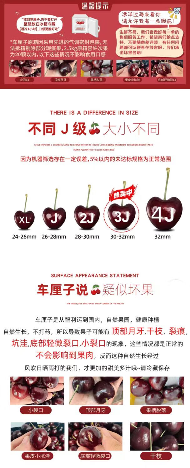 集南鲜 智利车厘子进口大樱桃【JD速运-多地次日达】水果年货礼盒 5斤(净重) 特级原箱礼盒 JJJ级