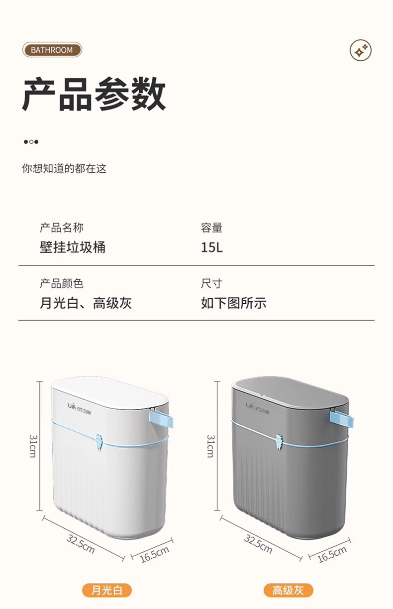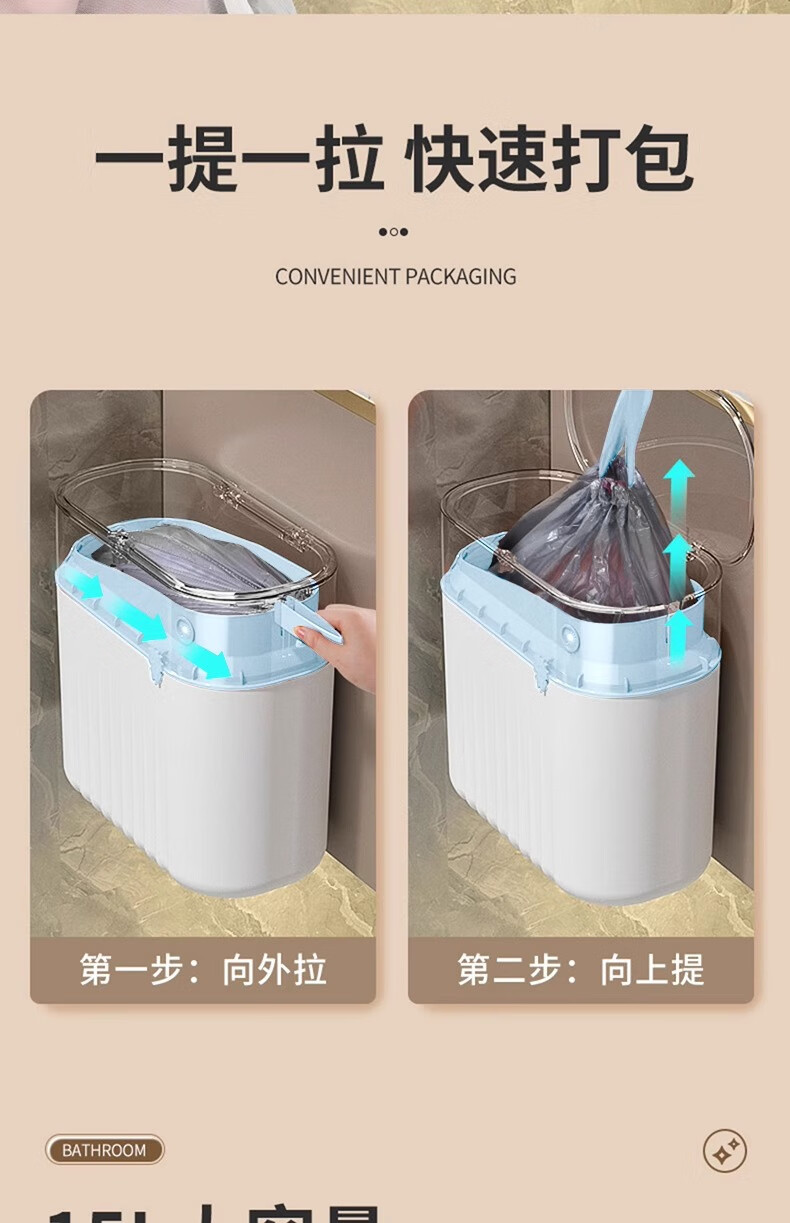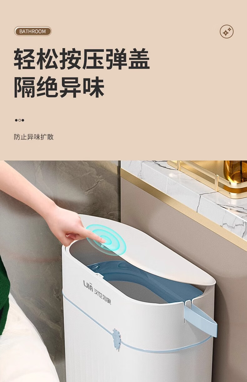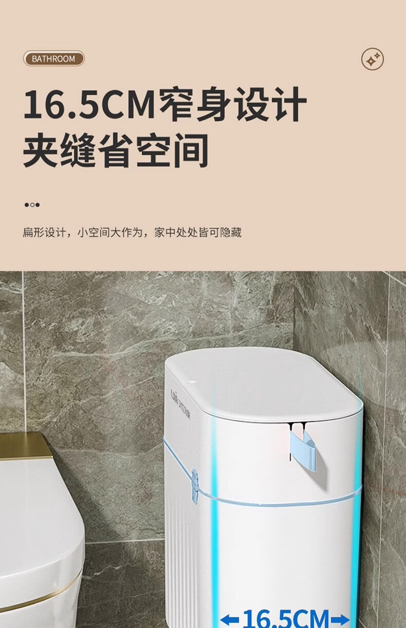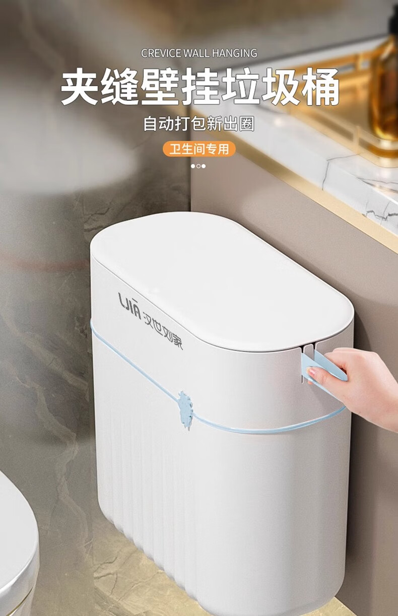 汉世刘家汉世刘家垃圾桶家用卫生间厕所厨房专用夹缝大号自动打包放纸桶 灰【自动打包】落地+89只专用袋