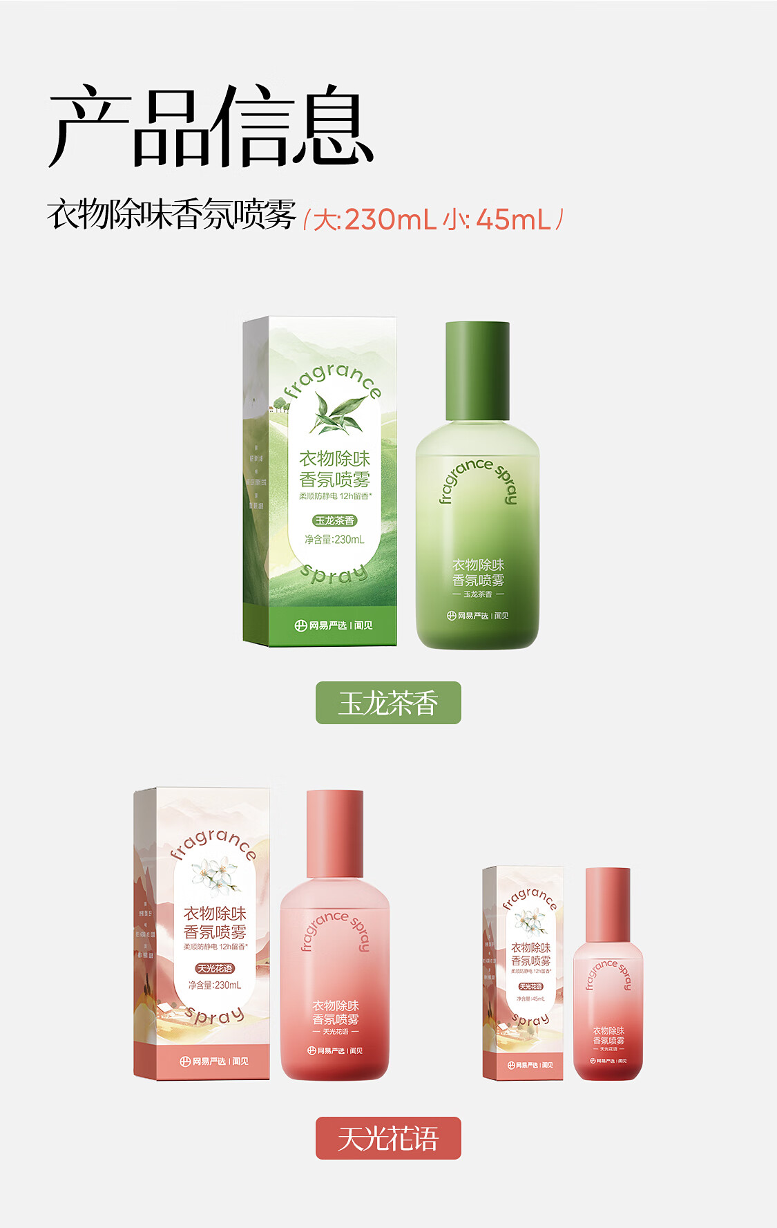 网易严选衣服除味喷雾衣物香氛去味防静电喷雾羽绒服除味剂去烟味神器 230ml 1瓶 【新香型】橘子海