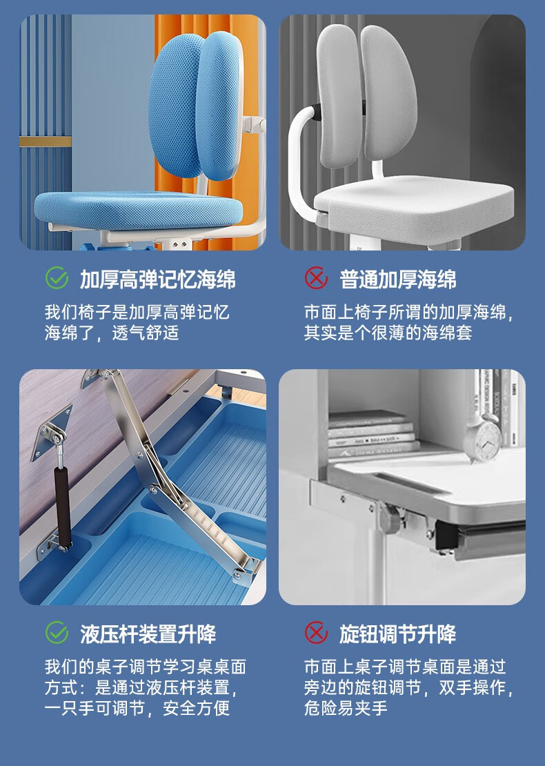 多彩鱼儿童学习书桌椅套装多功能可升降中小学生实木书桌写字家用课桌椅 1.2米实木楹木桌+乳胶追背椅蓝