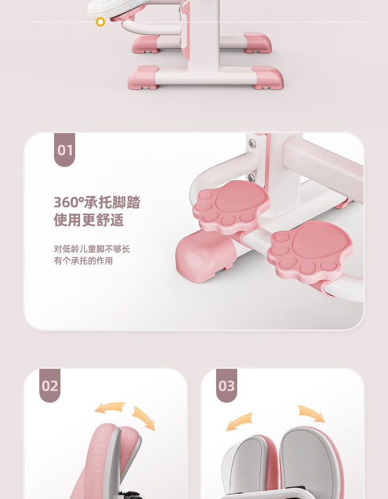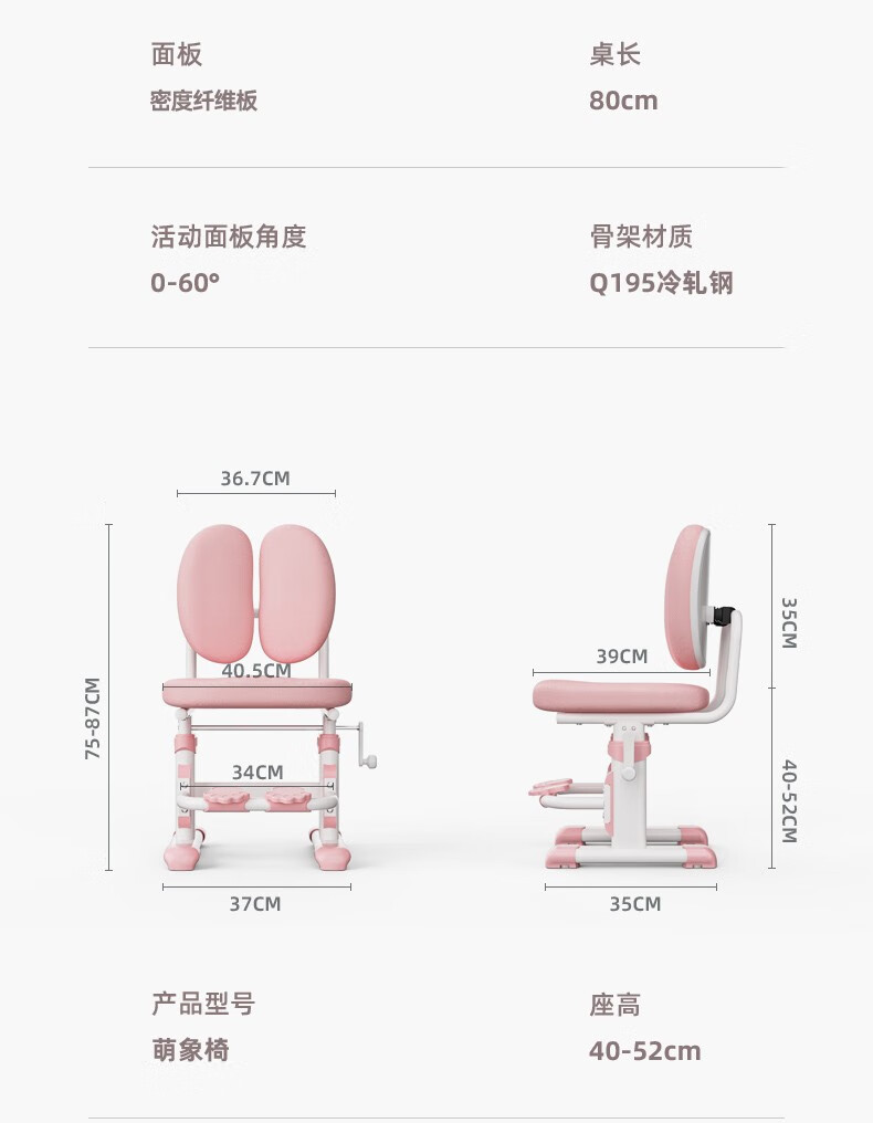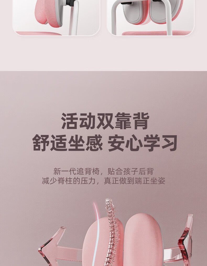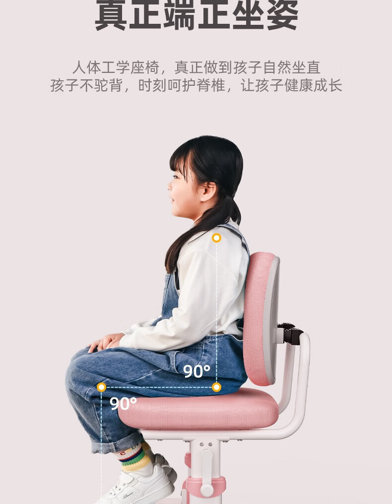 喵同学儿童学习椅子儿童座椅可升降调节中小学生专用写字椅追背椅靠背椅 自由升降+经典脚踏-加高款-灰