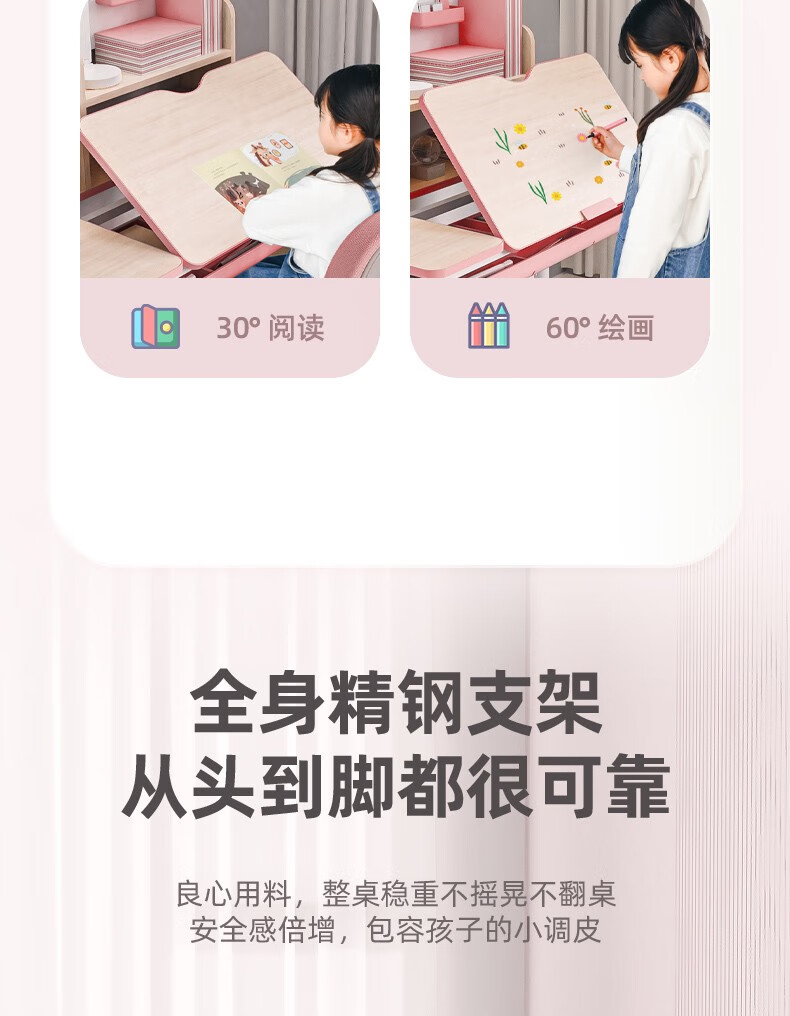 多彩鱼儿童学习桌书桌椅套装实木书桌写字桌中小学生可升降儿童书桌椅 M9阳光桌1.0米套装 · 布鲁灰