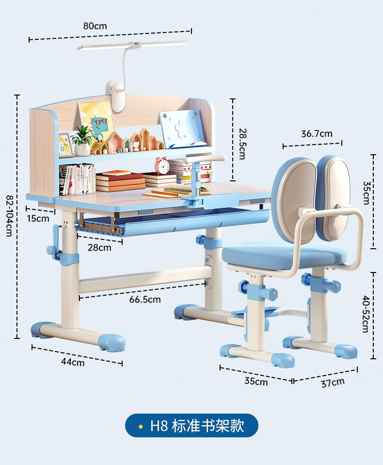 多彩鱼儿童学习书桌椅套装多功能中小学生可升降桌椅子写字桌家用课桌 80CM桌蓝丨阅读架款+螺丝升降椅