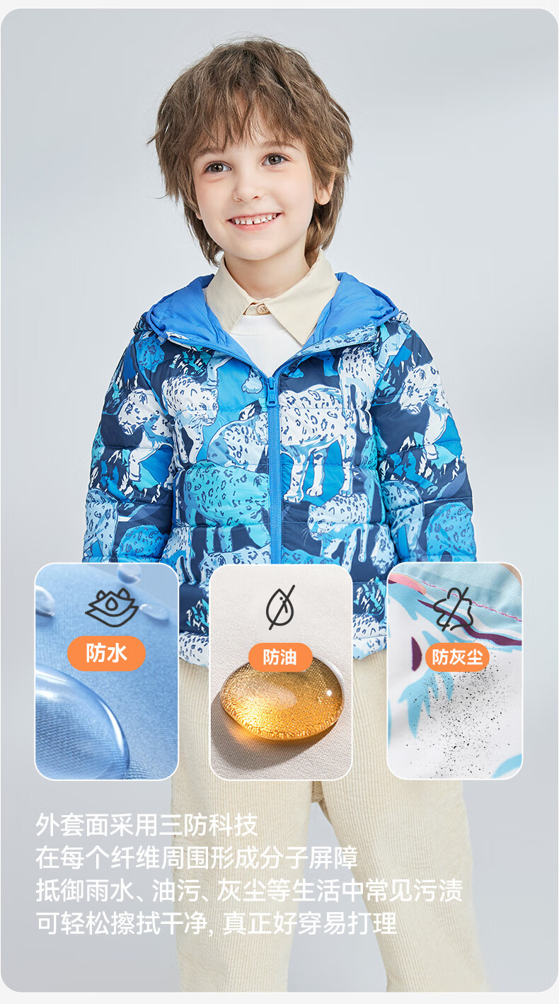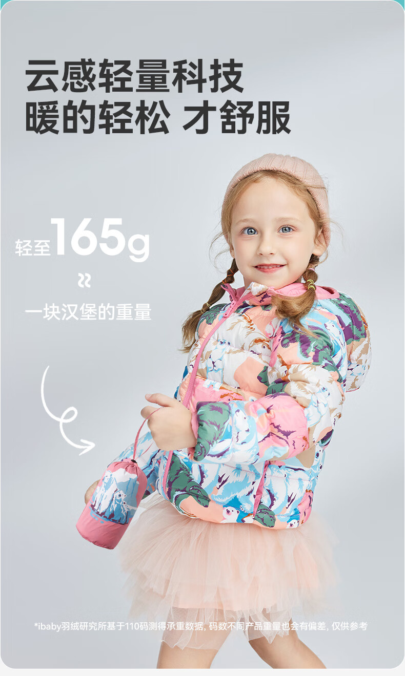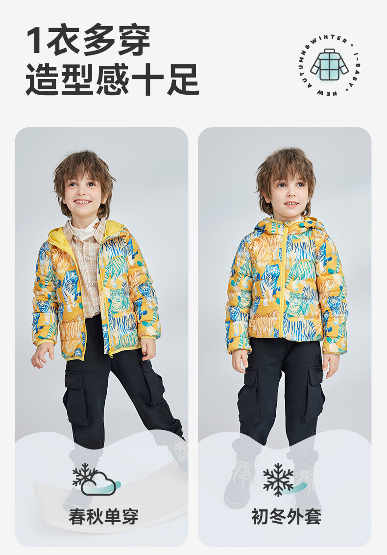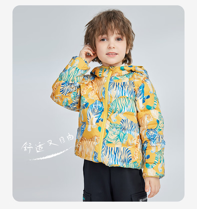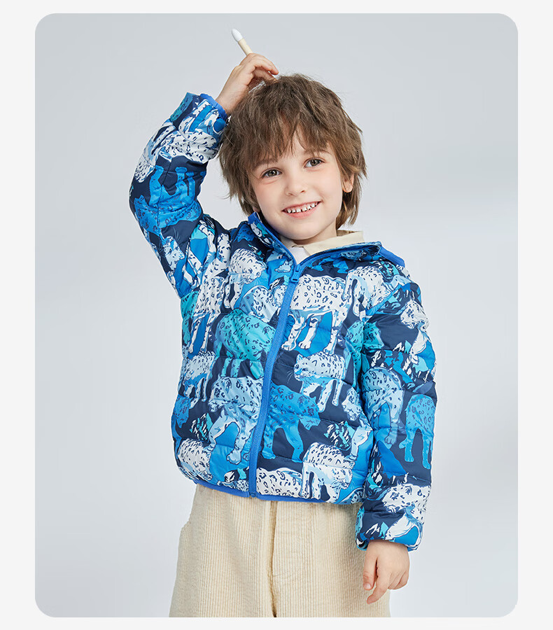 ibaby儿童轻薄羽绒服男女童薄款白鹅绒连帽外套 不亦乐虎 130