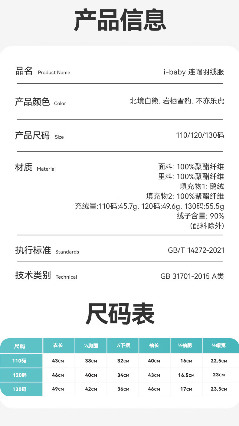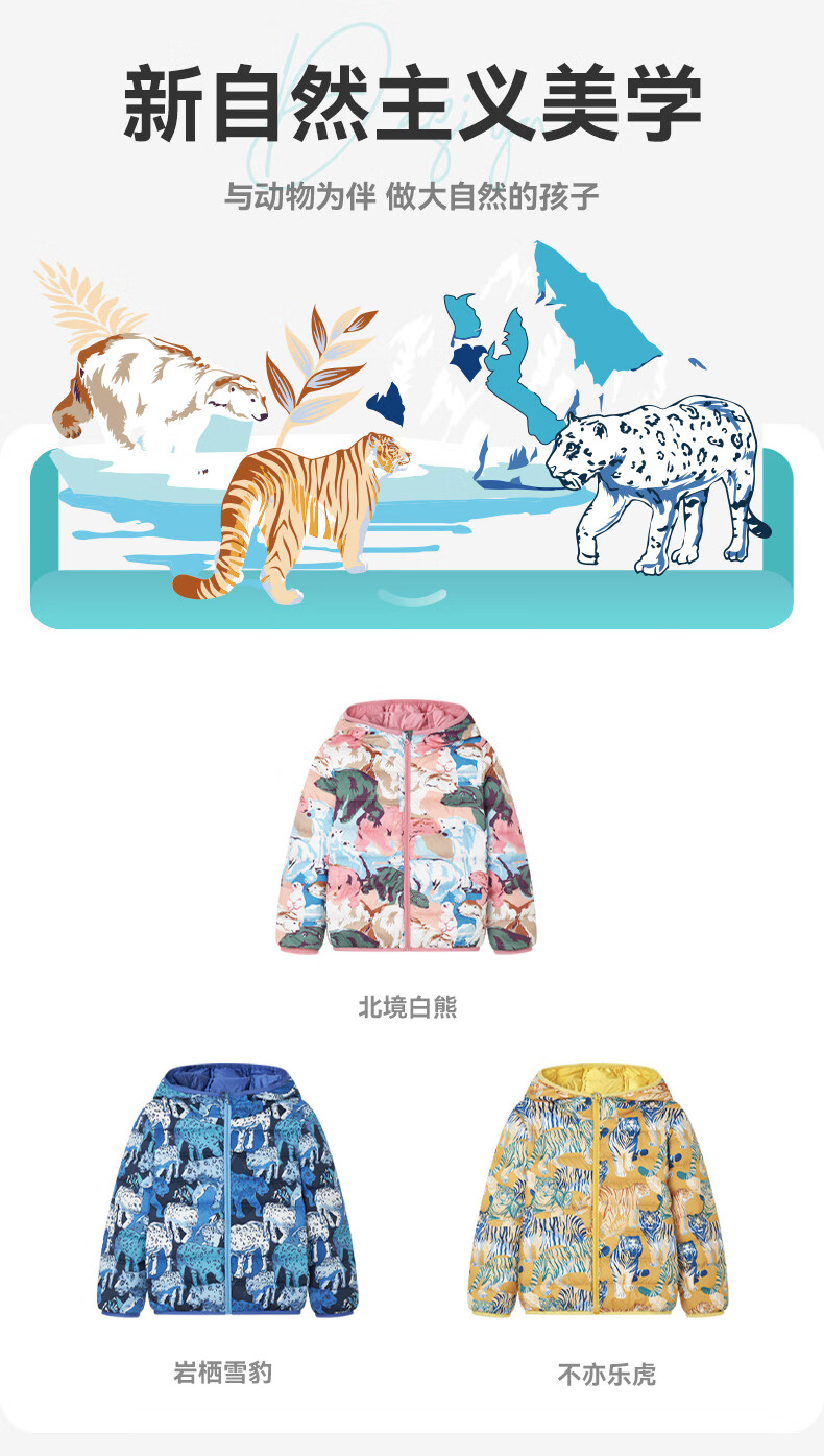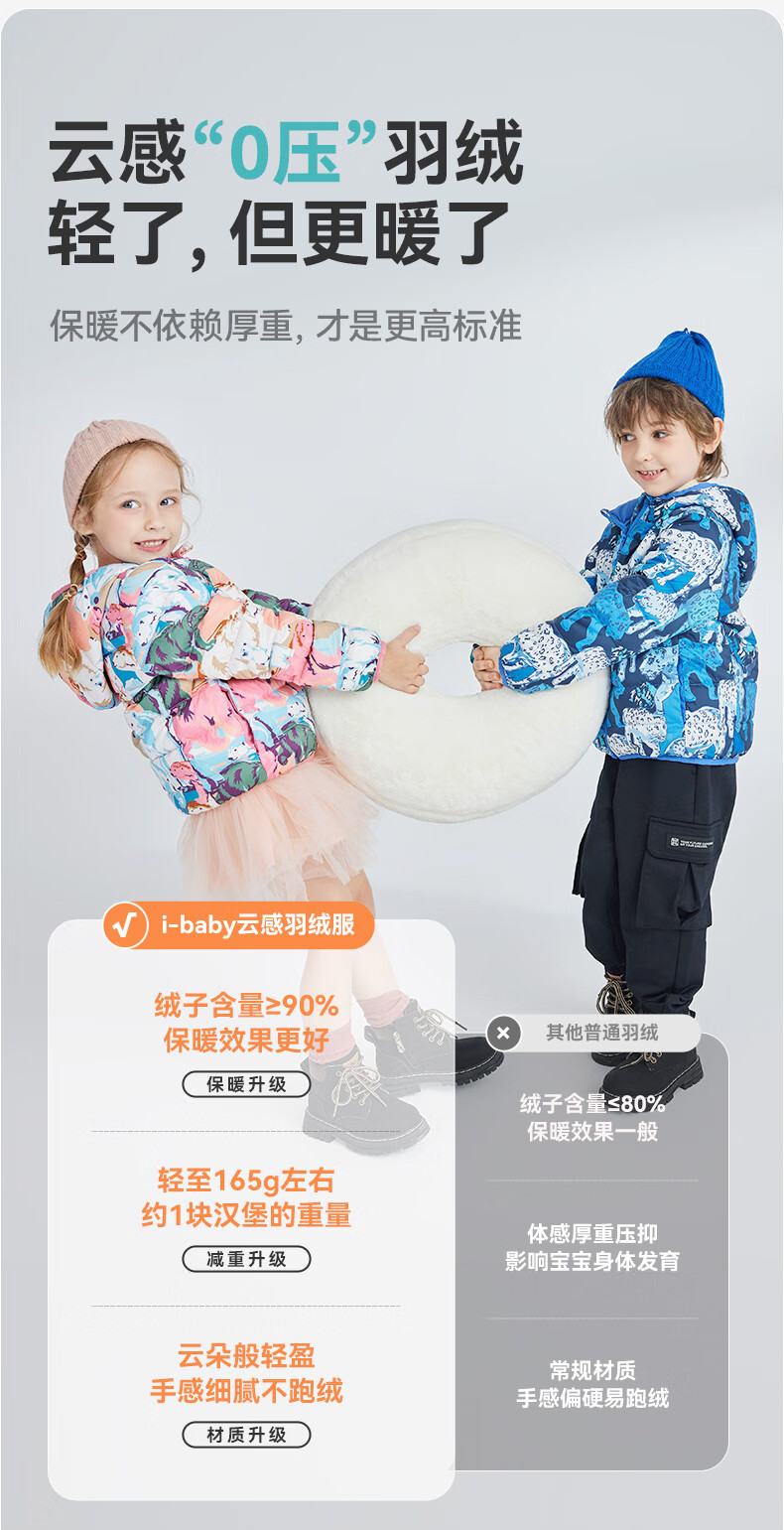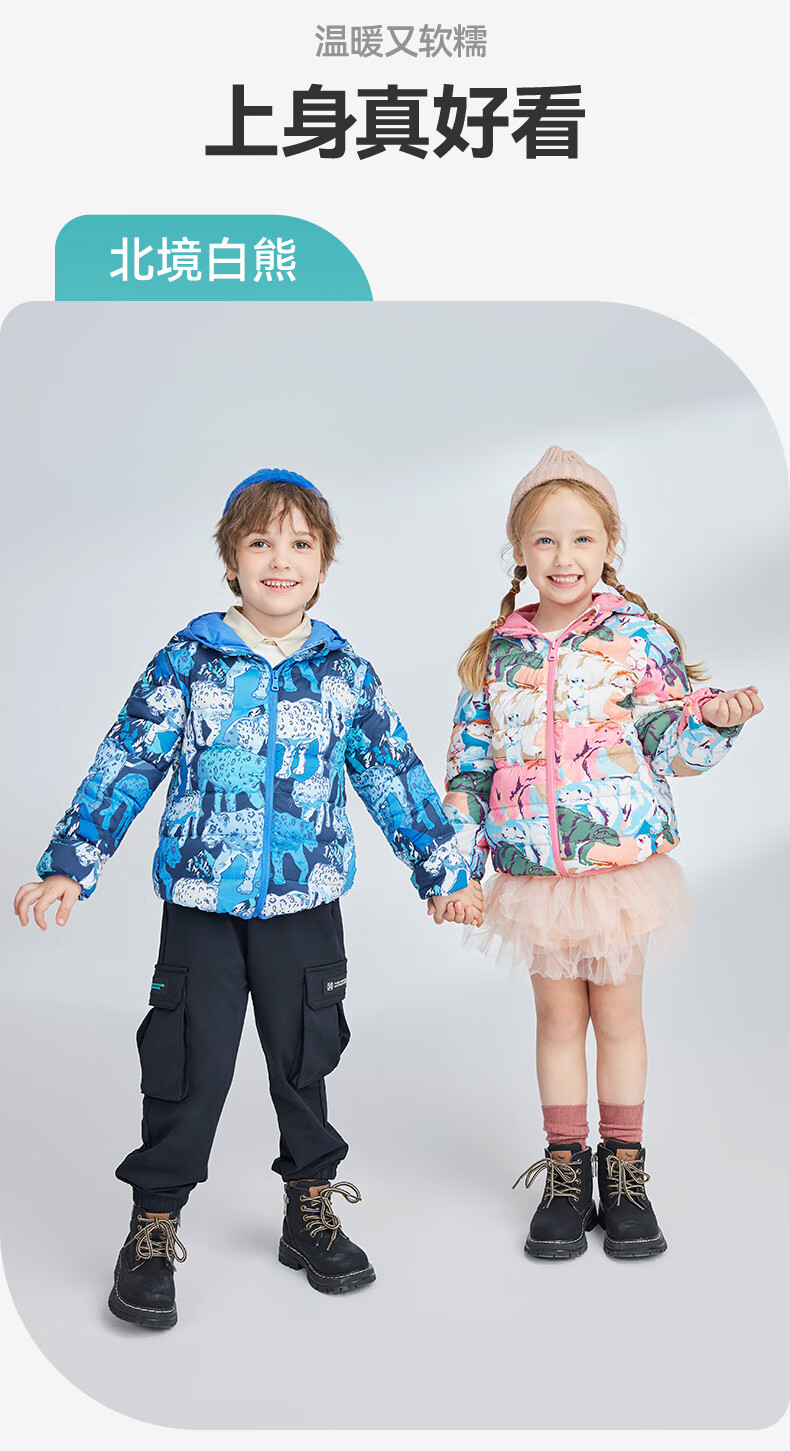 ibaby儿童轻薄羽绒服男女童薄款白鹅绒连帽外套 不亦乐虎 130