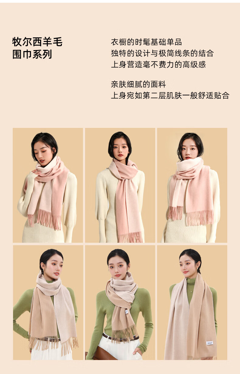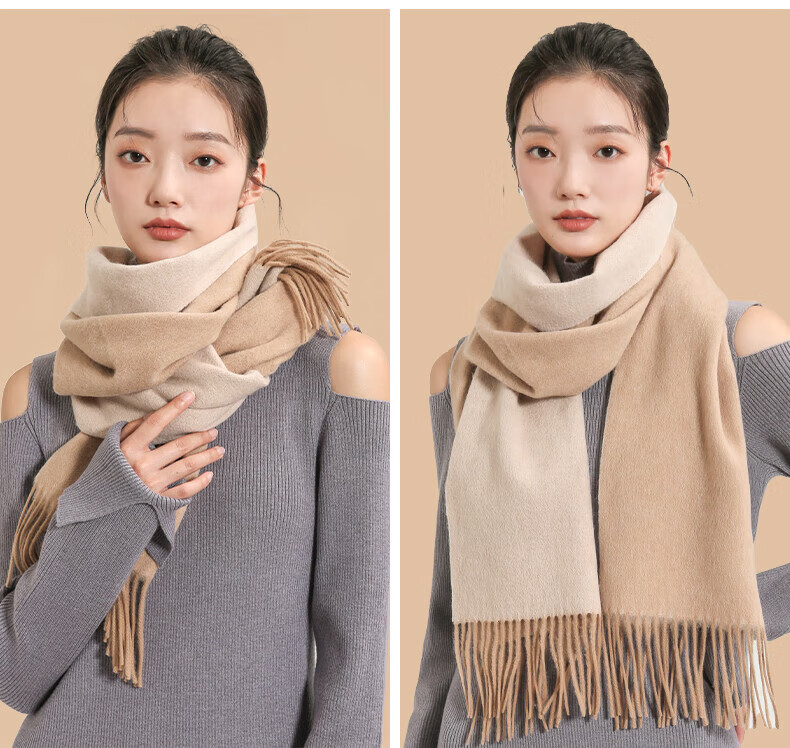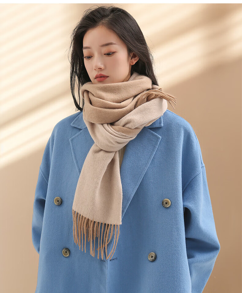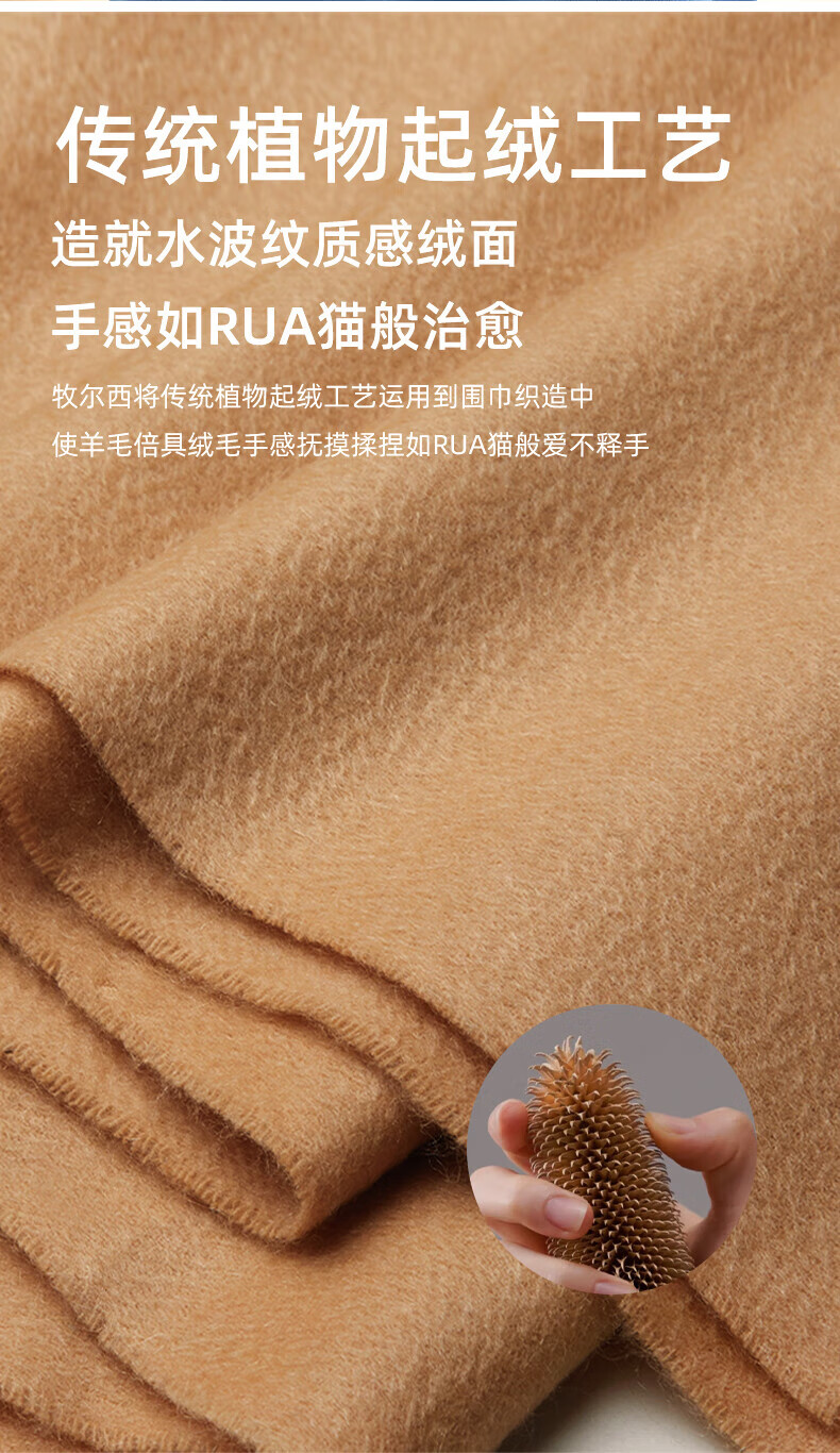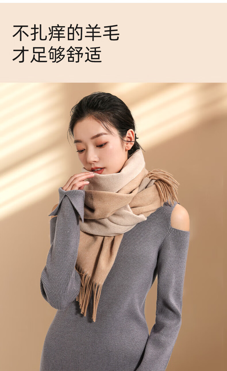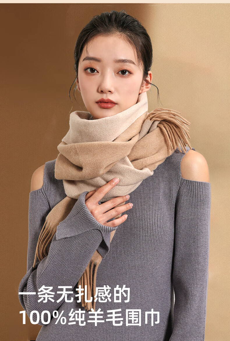 牧尔西 (MOERCIAN)羊毛围巾女生轻奢小披肩冬季保暖女士围脖保暖妈妈生日礼物送长辈 驼色/米驼