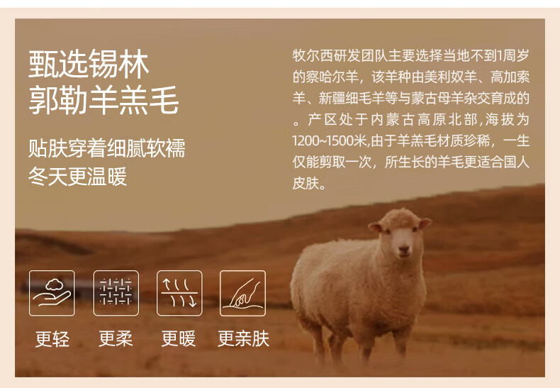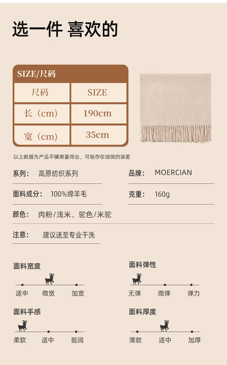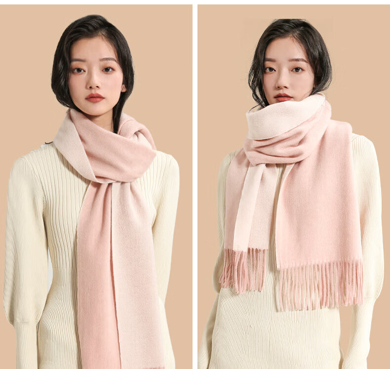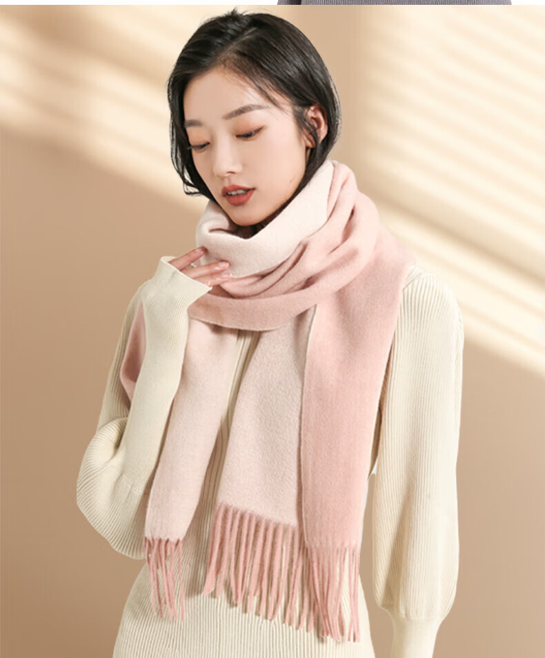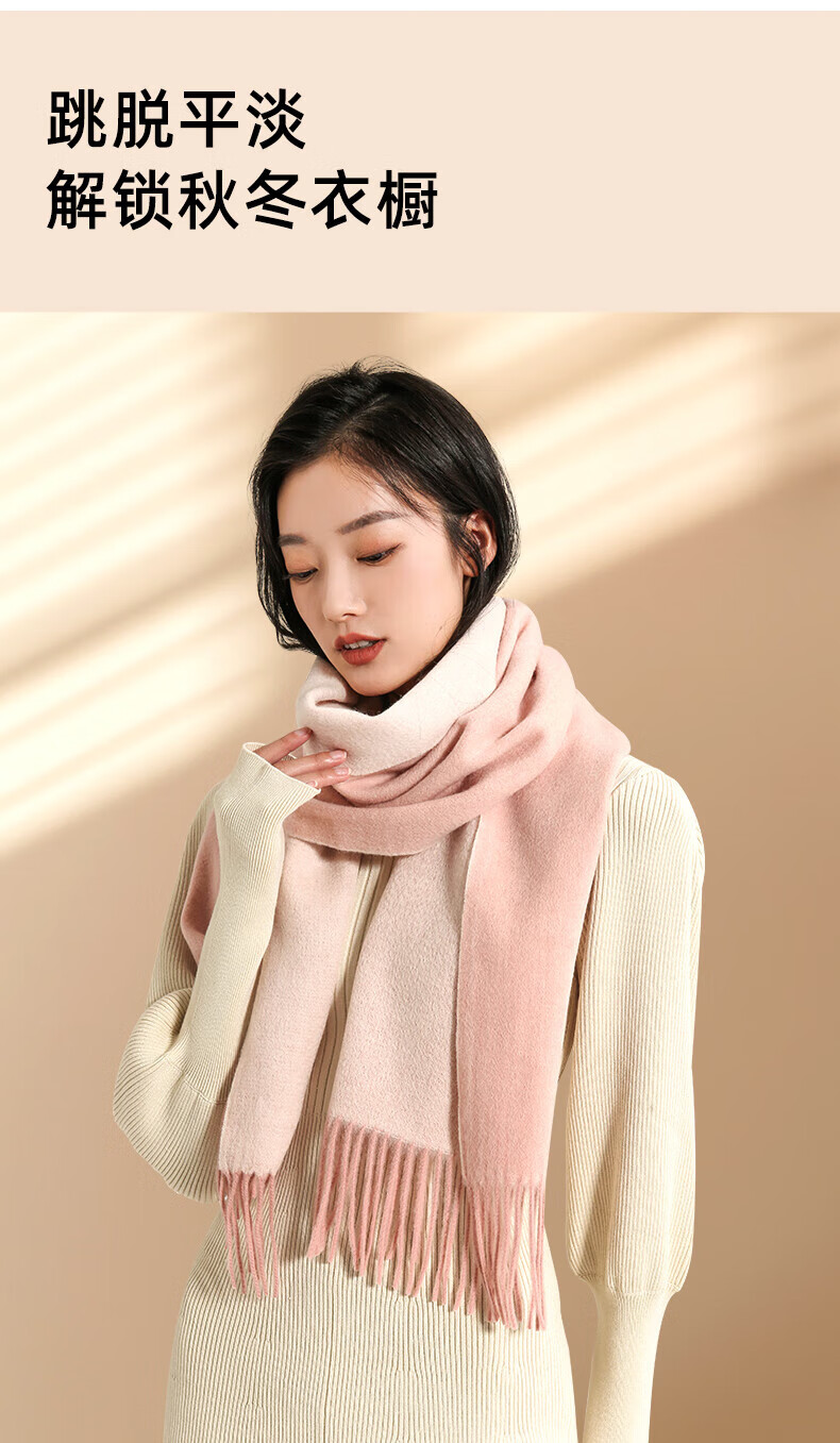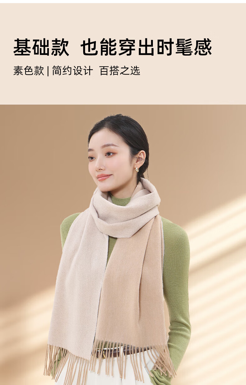 牧尔西 (MOERCIAN)羊毛围巾女生轻奢小披肩冬季保暖女士围脖保暖妈妈生日礼物送长辈 驼色/米驼